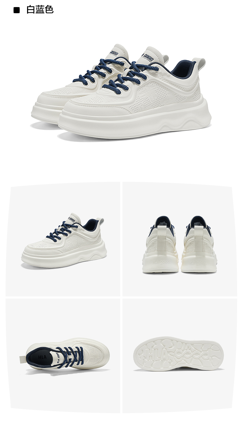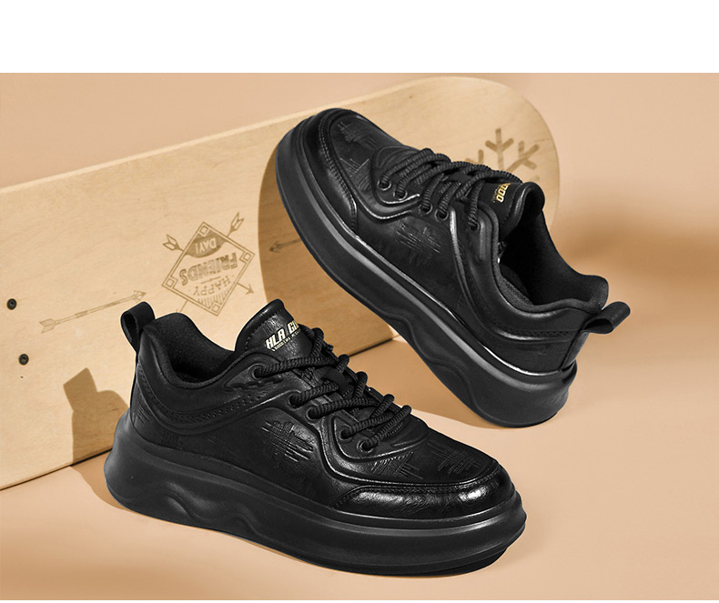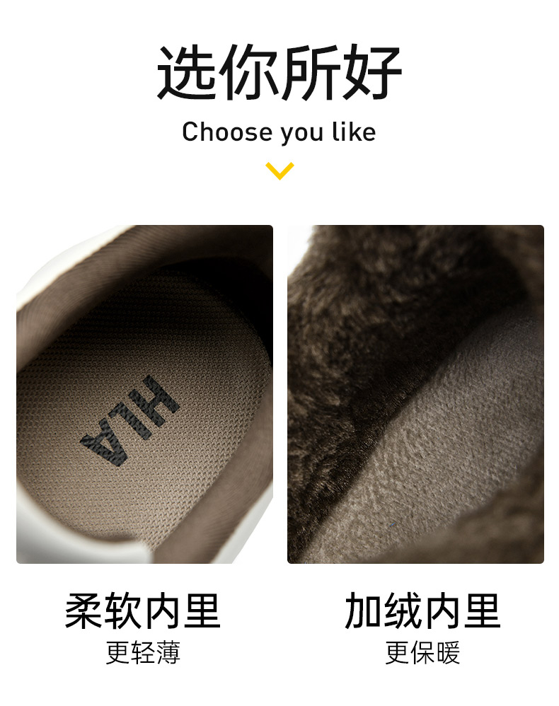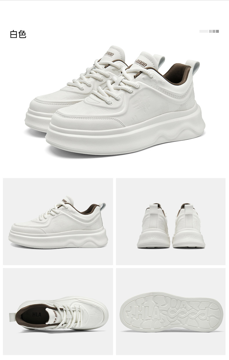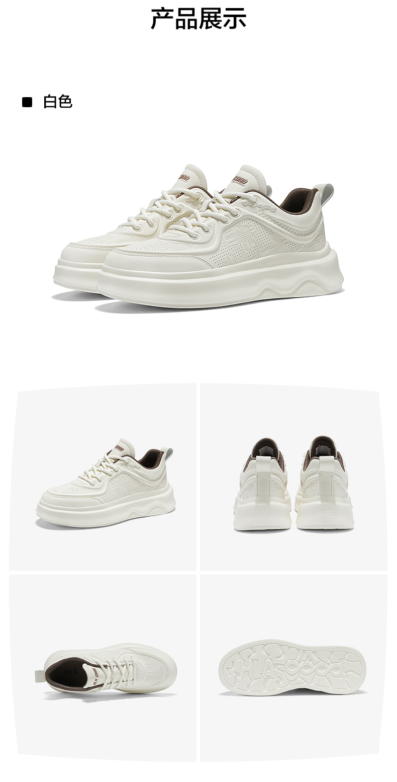 Hla/Heilan House Men's Shoes New Autumn and Winter Casual Lace-Up Comfortable Height-Increasing Sneakers with Fleece Men's White Shoes