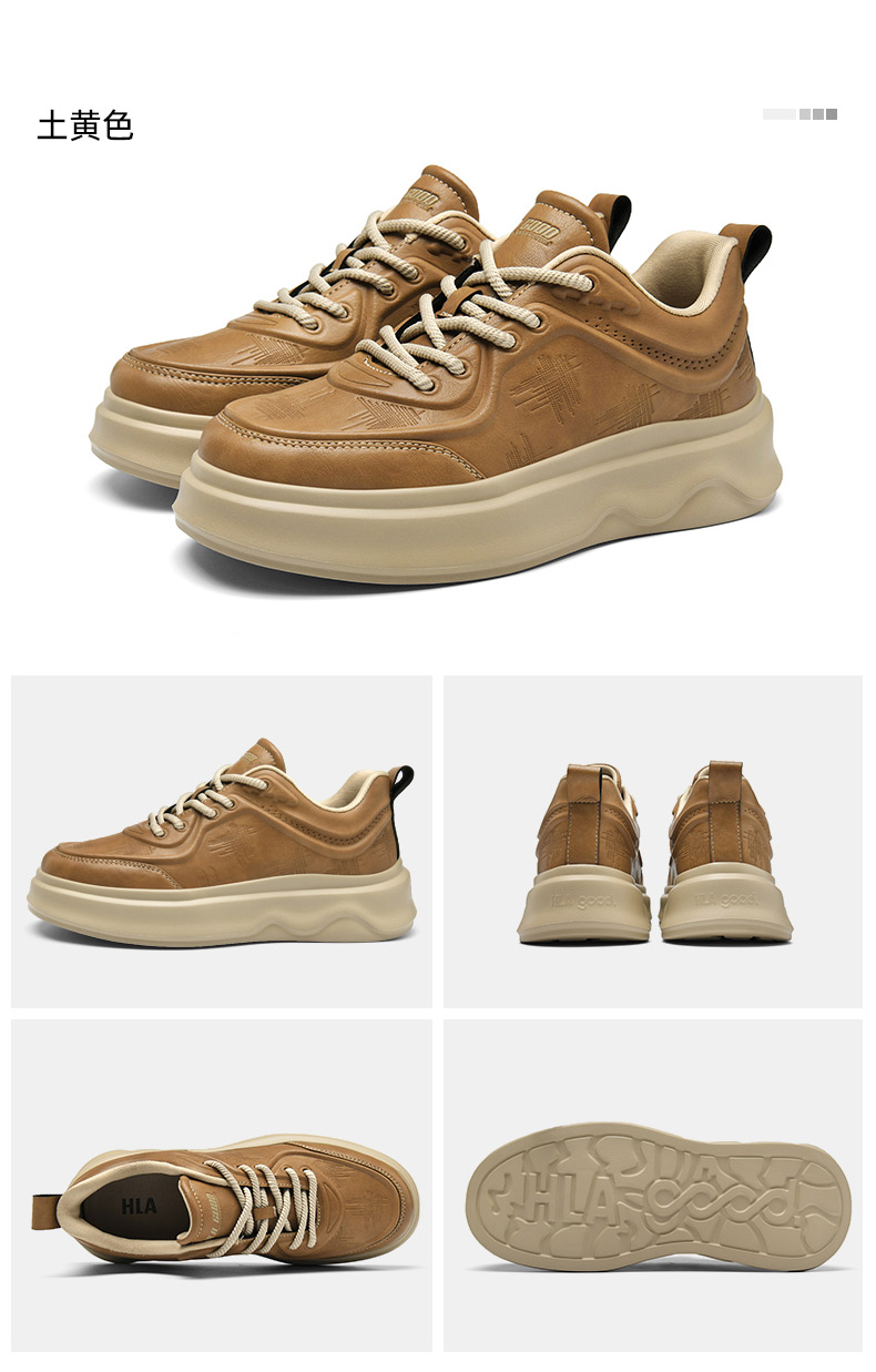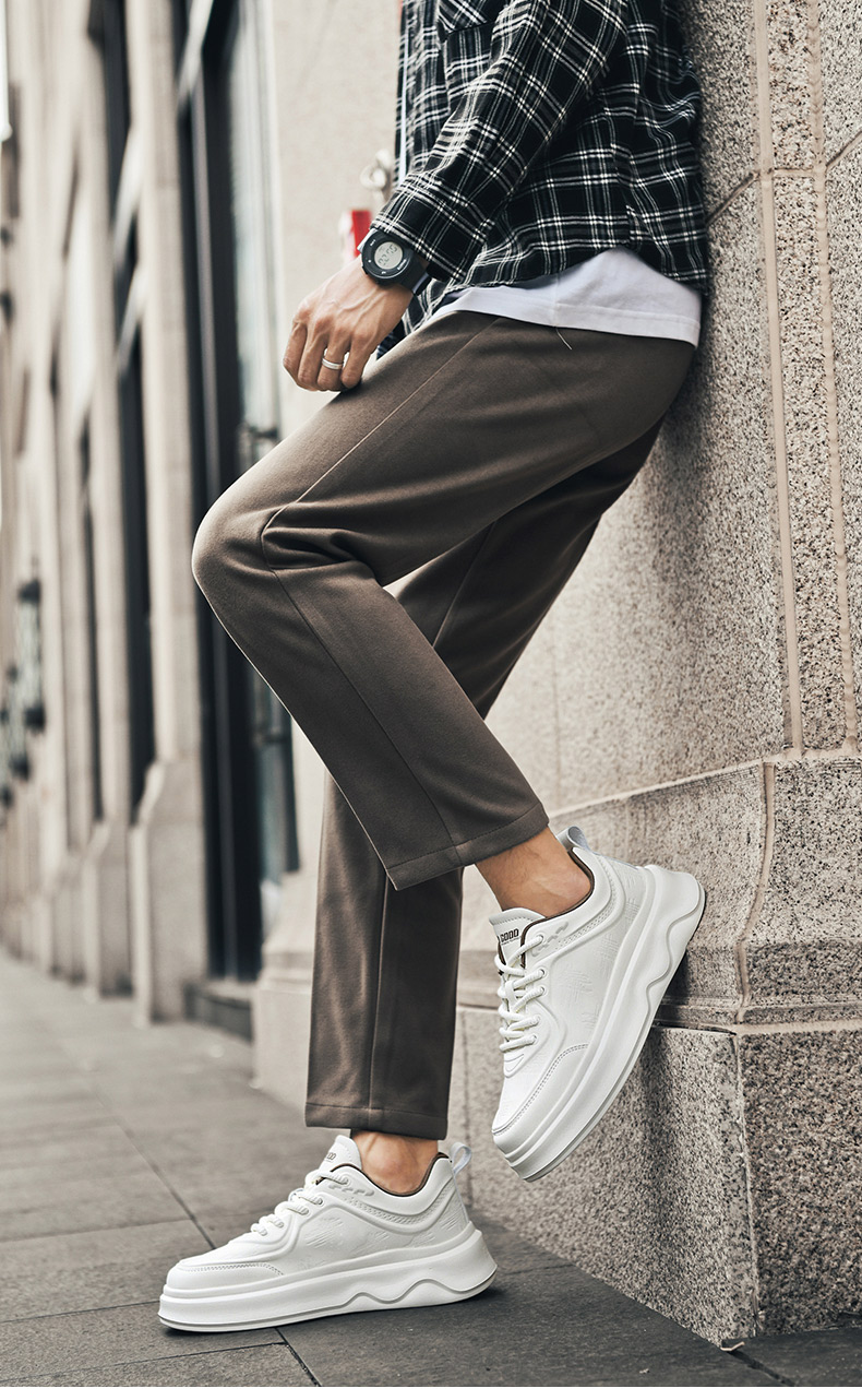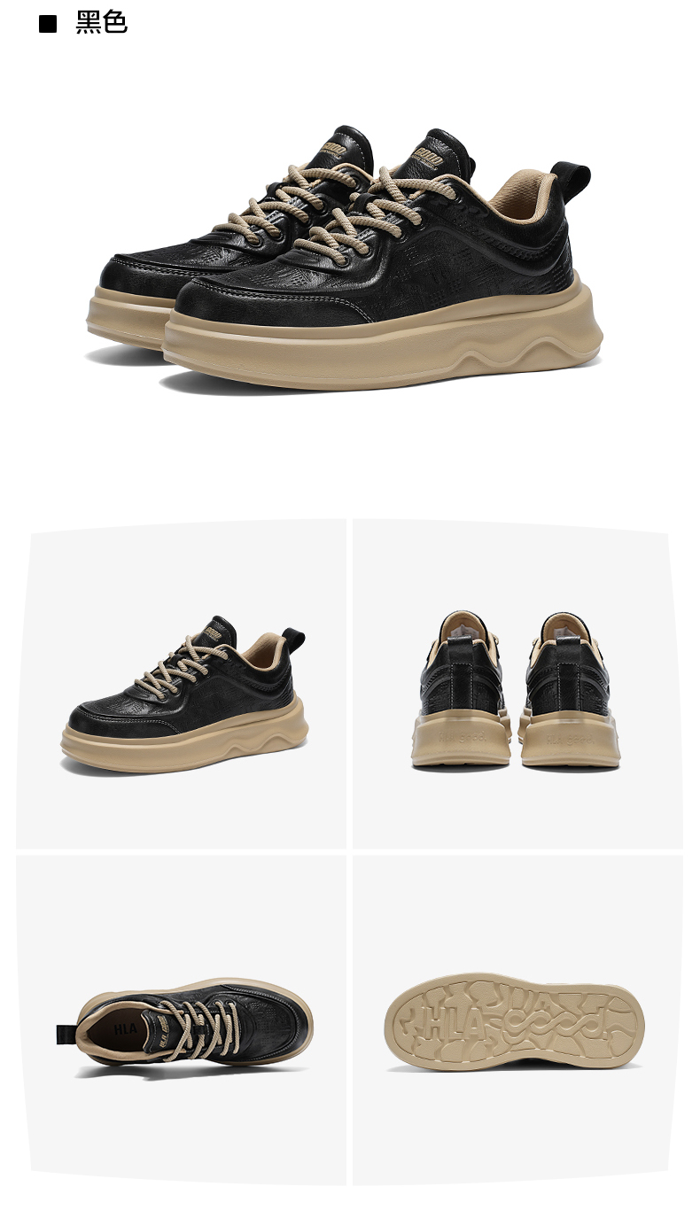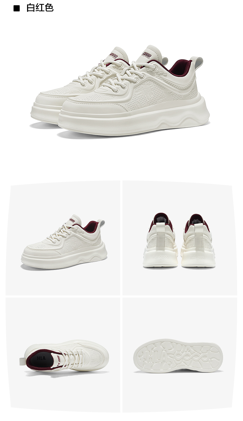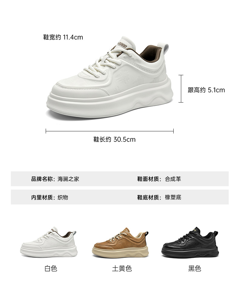 Hla/Heilan House Men's Shoes New Autumn and Winter Casual Lace-Up Comfortable Height-Increasing Sneakers with Fleece Men's White Shoes