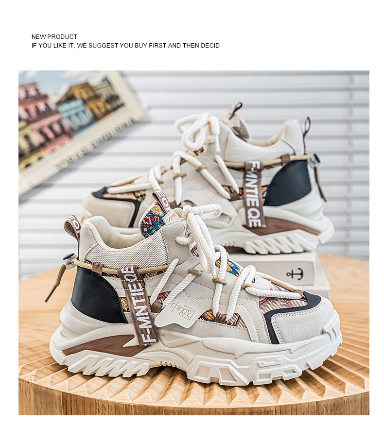 Putian High-Top Men's Shoes, Winter Niche Casual Korean Style Dad Shoes for Teenagers, Thick-Soled Height-Increasing Retro Sports Running Shoes