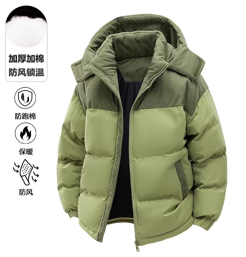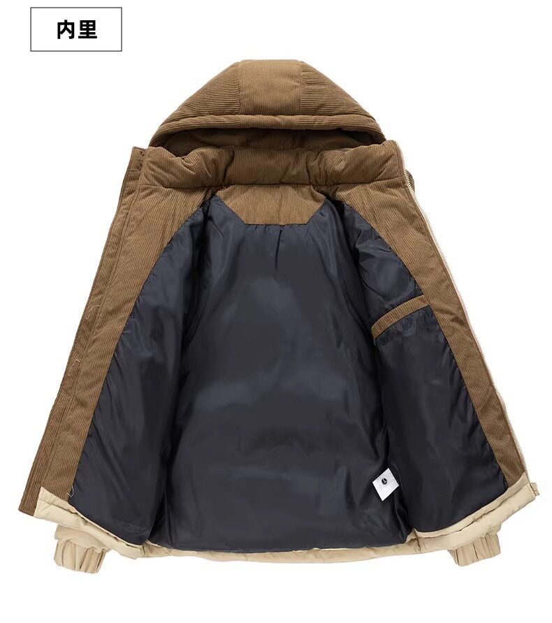 Woodpecker Detachable Hooded Padded Jacket for Men, Winter Thickened Cold-Resistant Warm Cotton Coat