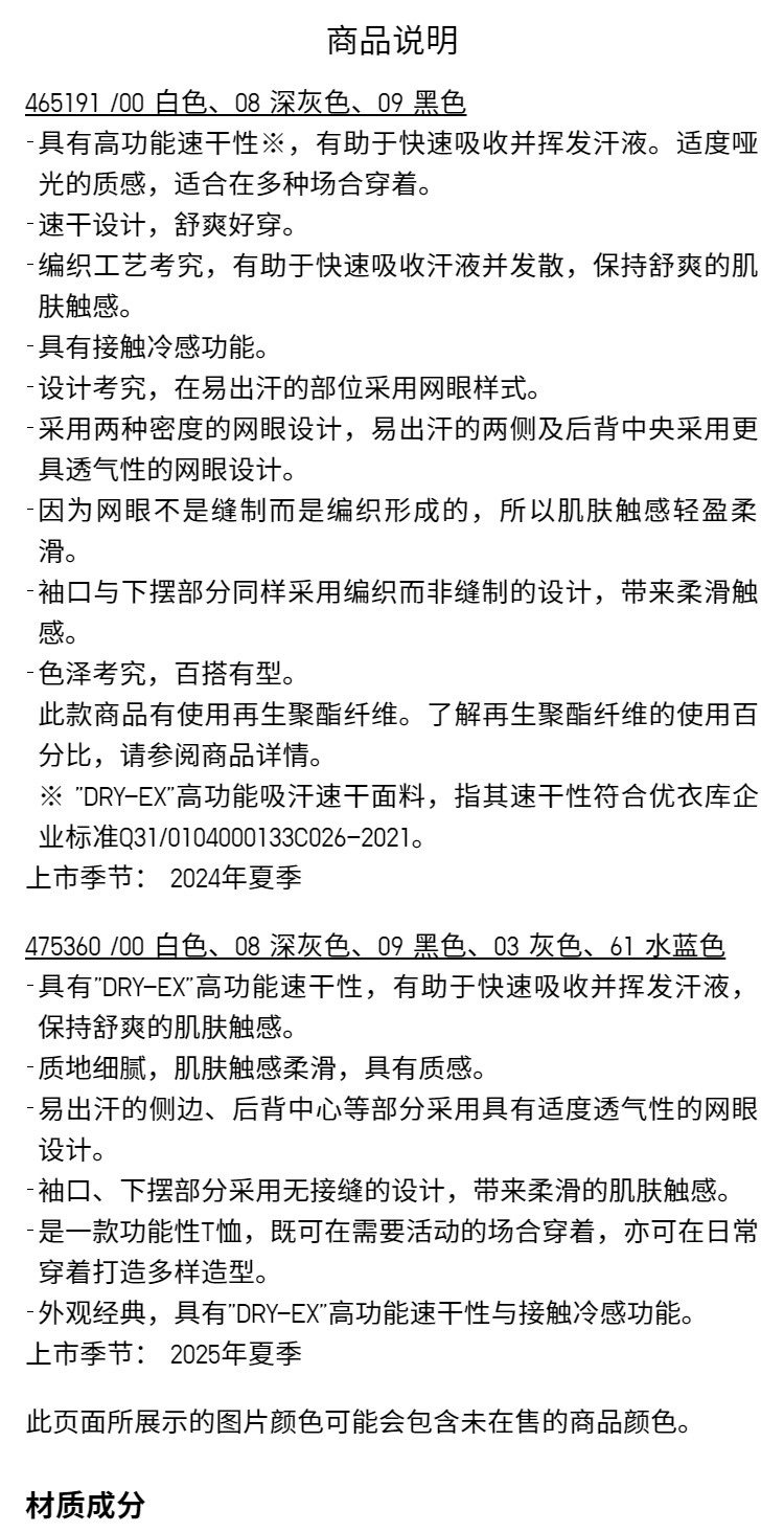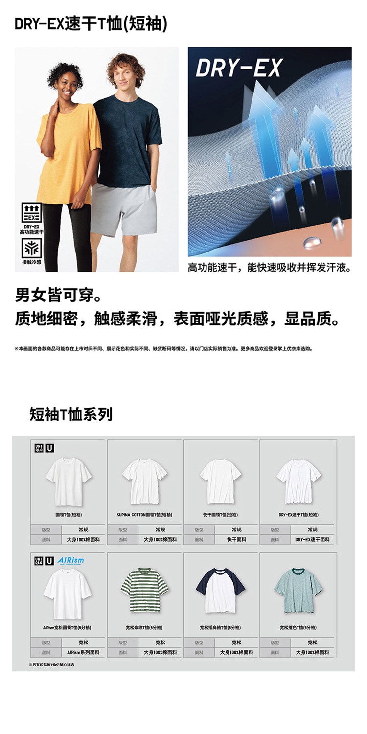 Priority Express Uniqlo Men's and Women's Dry-Ex Quick-Dry T-Shirt Short Sleeve Sweat-Absorbing Quick-Dry 475360 465191