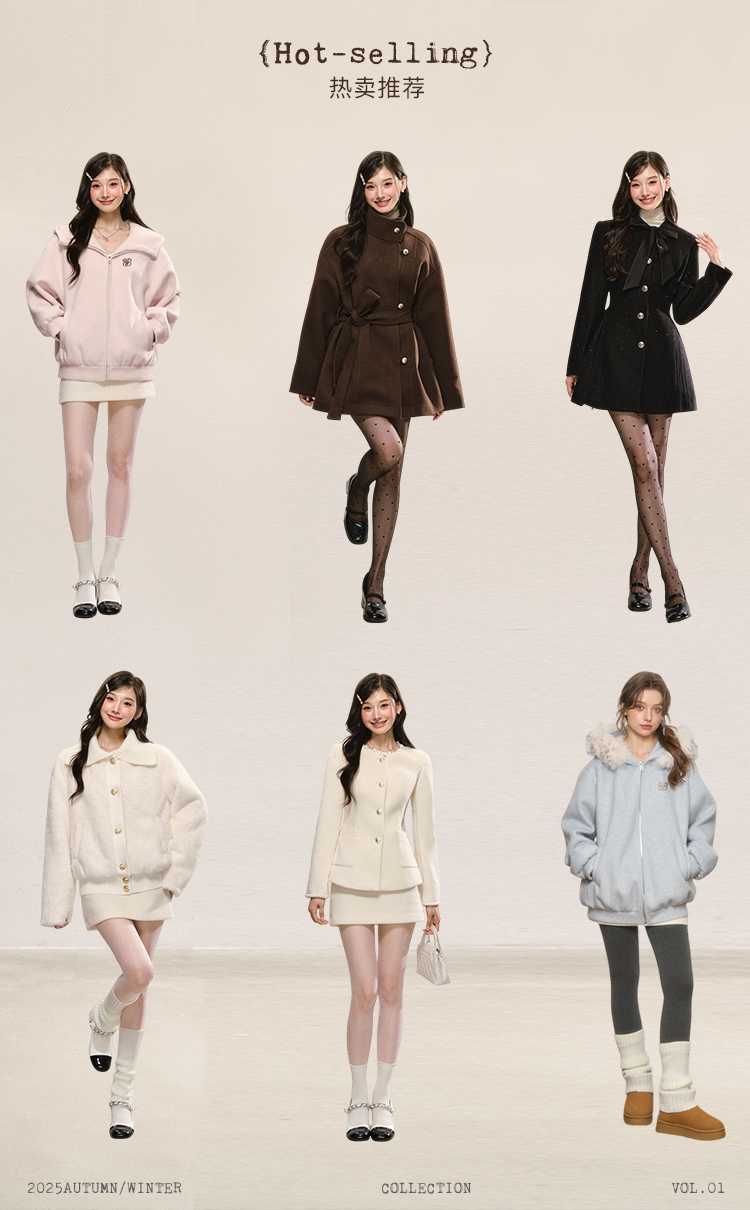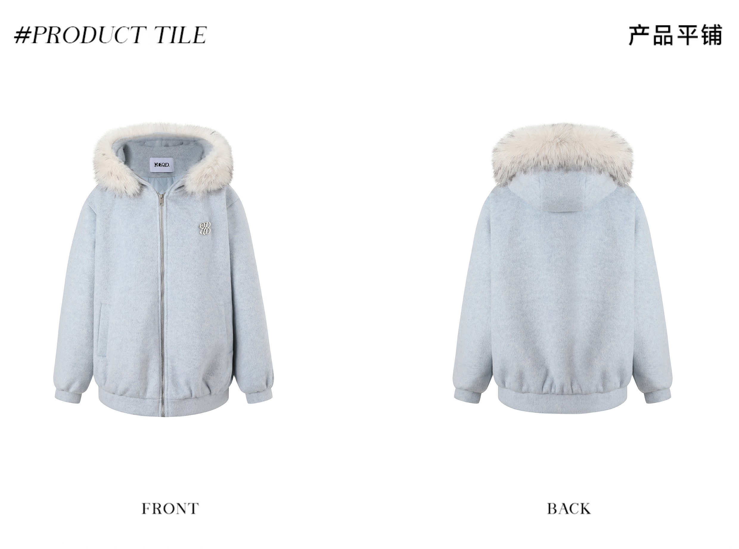 Qdqd Original Hooded Fur Collar Woolen Coat with Cotton Padding, Thickened and Warm for Autumn and Winter, Zip-Up Sweatshirt Jacket