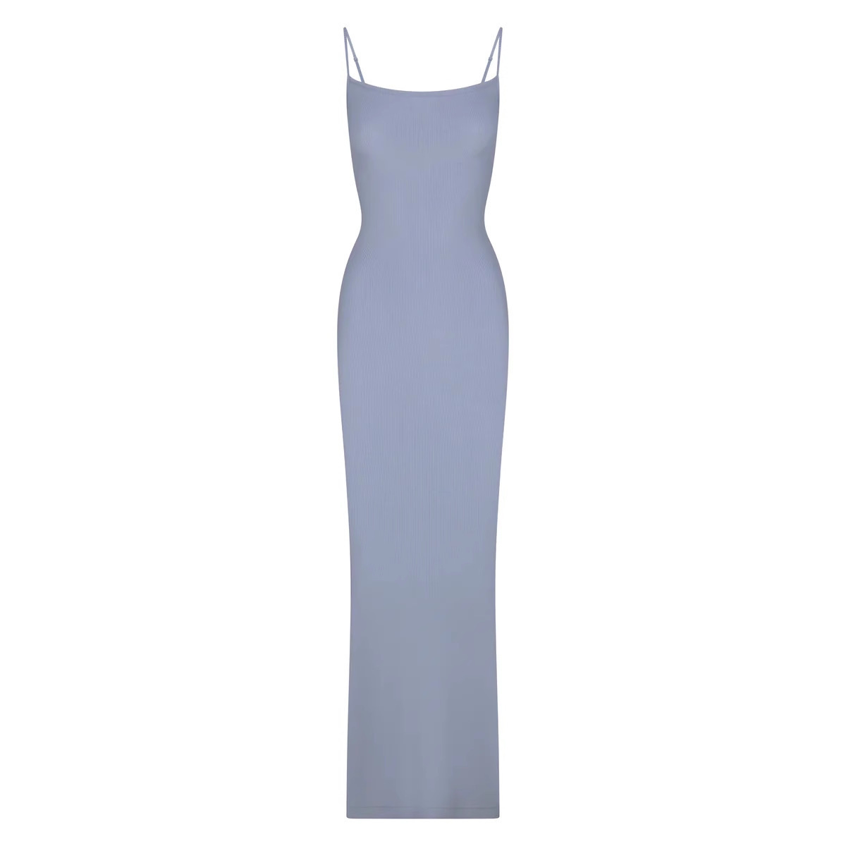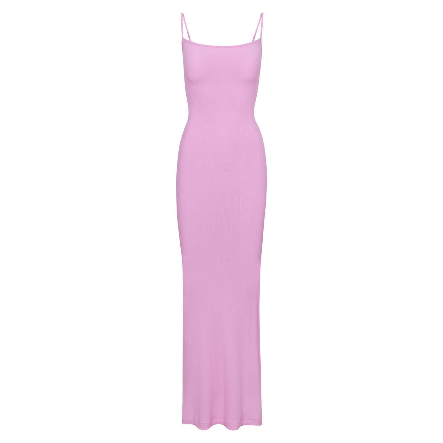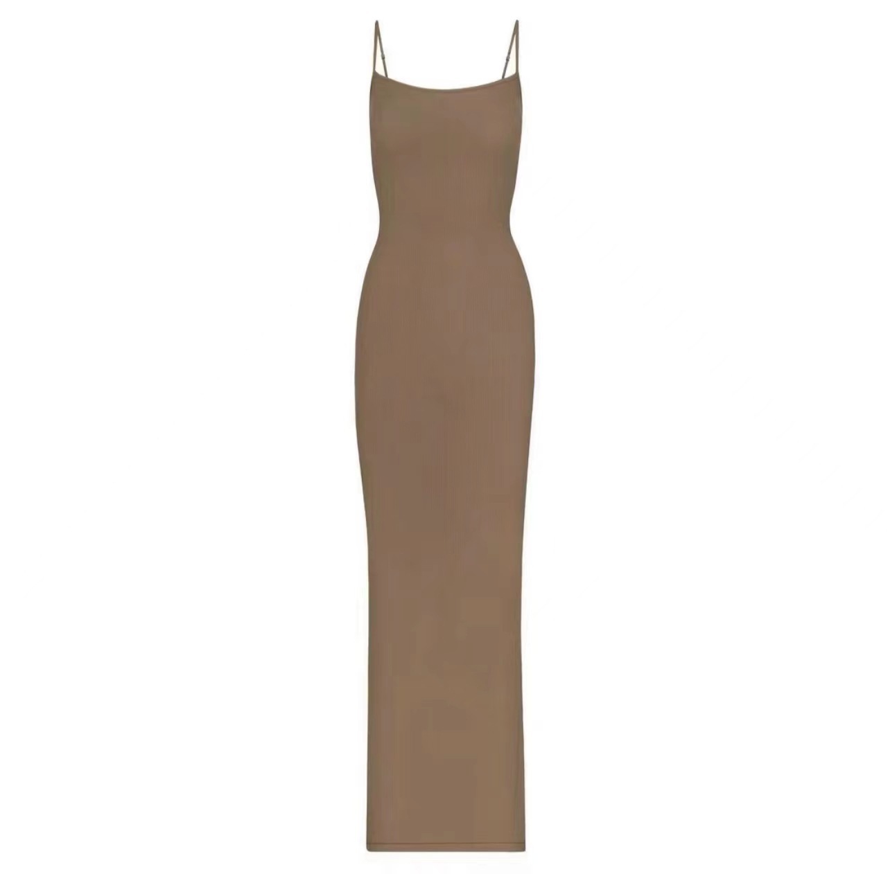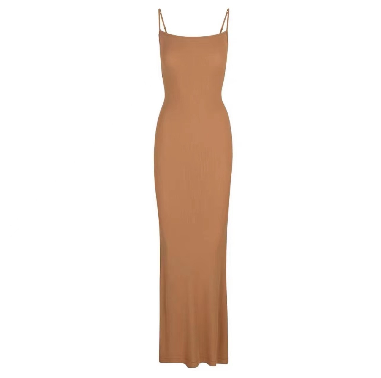 Skims Kardashian Yimengling Style Hot Girl Ribbed Spaghetti Strap Dress Women's Backless Slimming Bodycon Long Dress