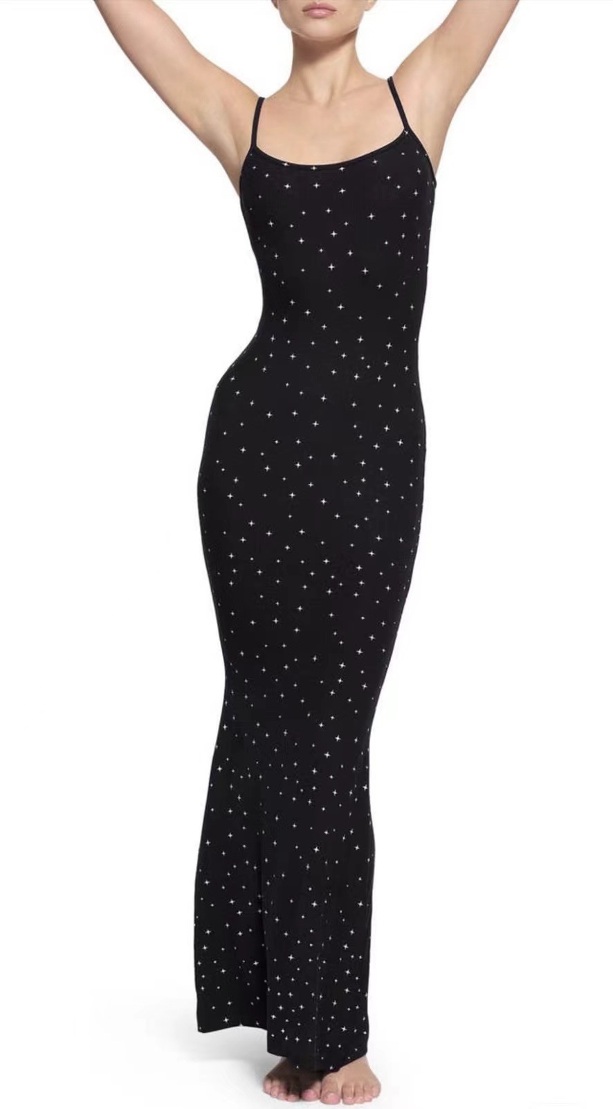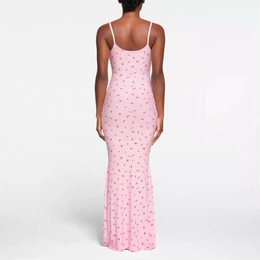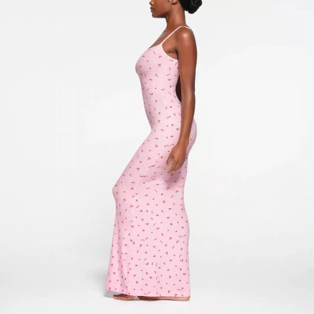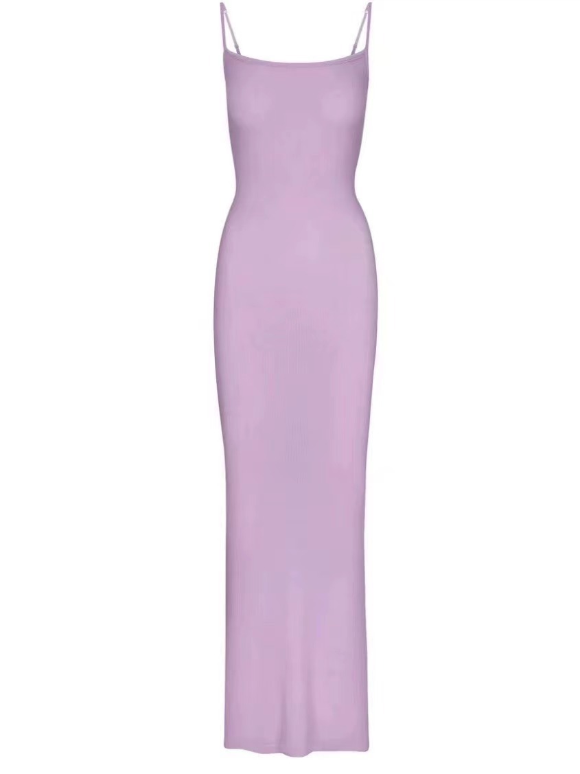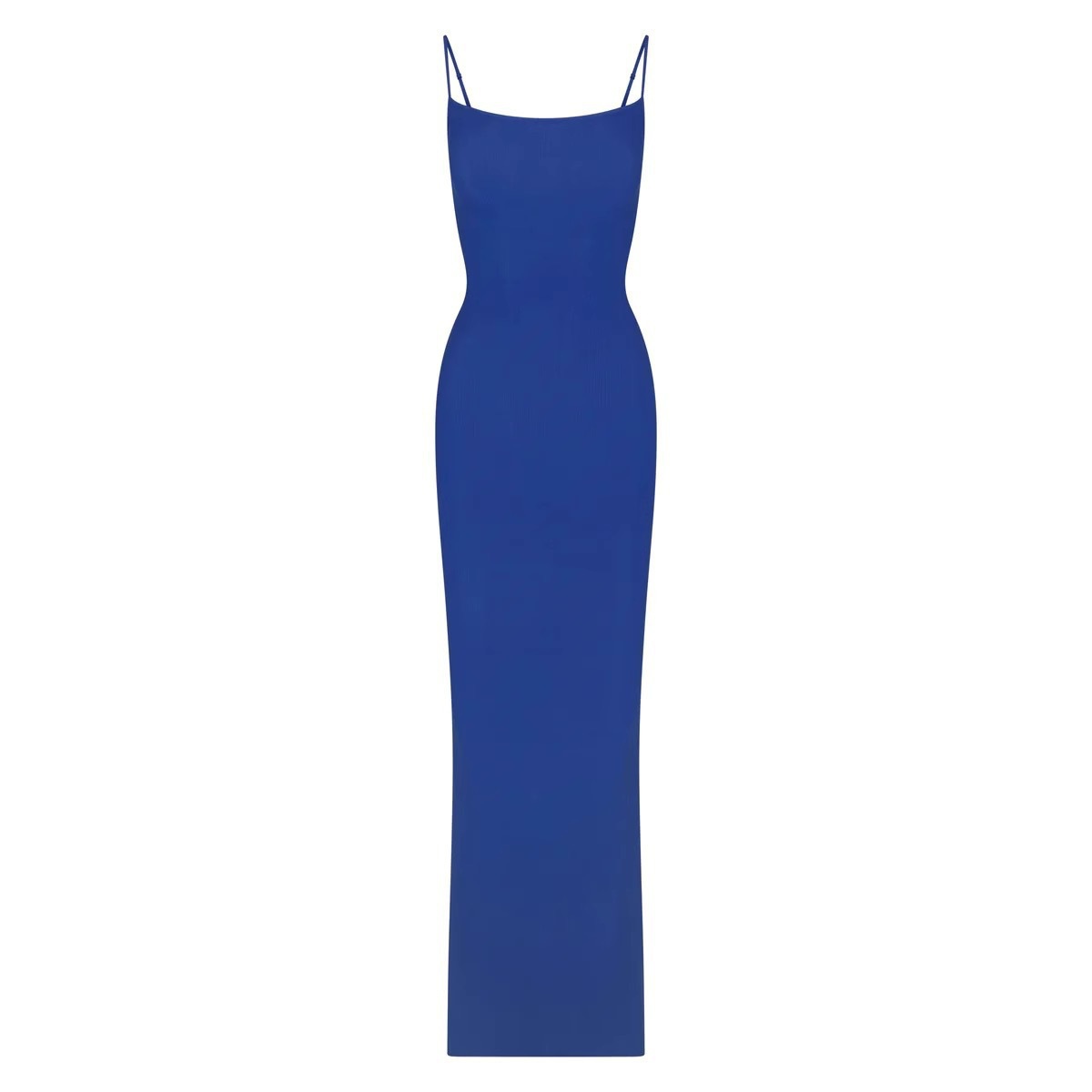 Skims Kardashian Yimengling Style Hot Girl Ribbed Spaghetti Strap Dress Women's Backless Slimming Bodycon Long Dress