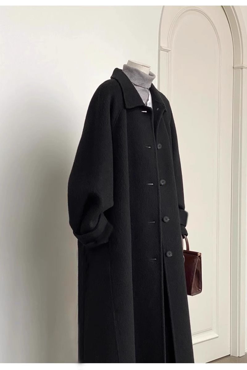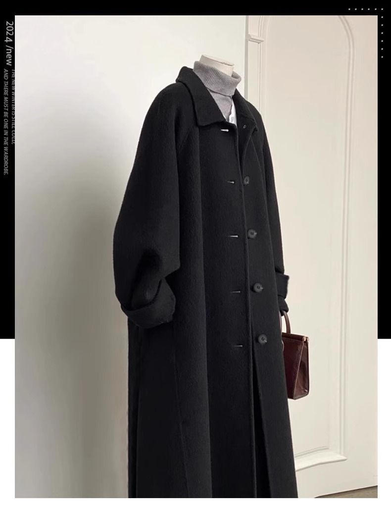 Black down Jacket with Wool Lining, Women's 2025 Winter New Style, Petite Mid-Length Thick Woolen Coat