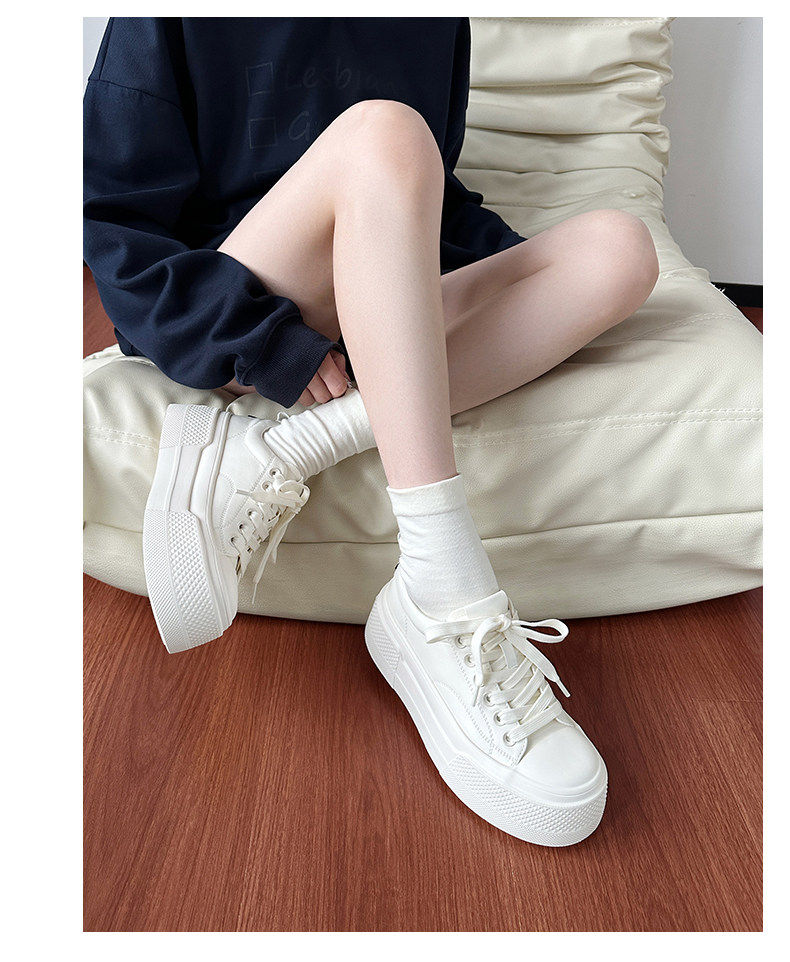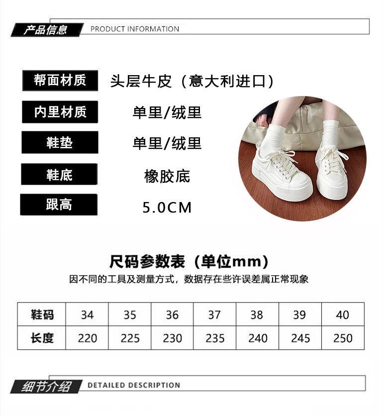 Sanli Small-Sized Thick-Soled Height-Increasing Genuine Leather White Sneakers for Women, 2026 Spring and Autumn New Lightweight Sports Sneakers, Korean Style Trendy