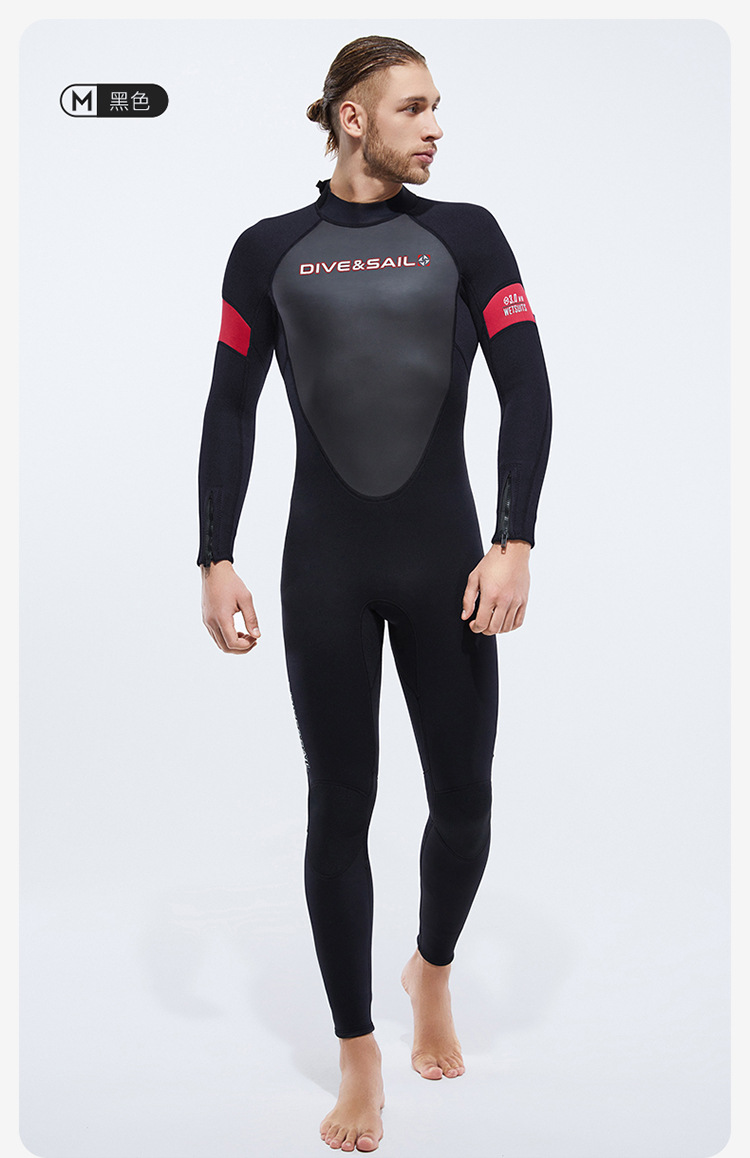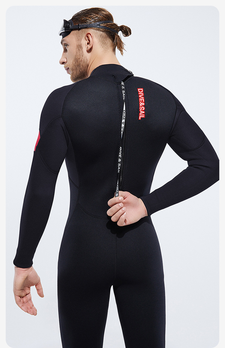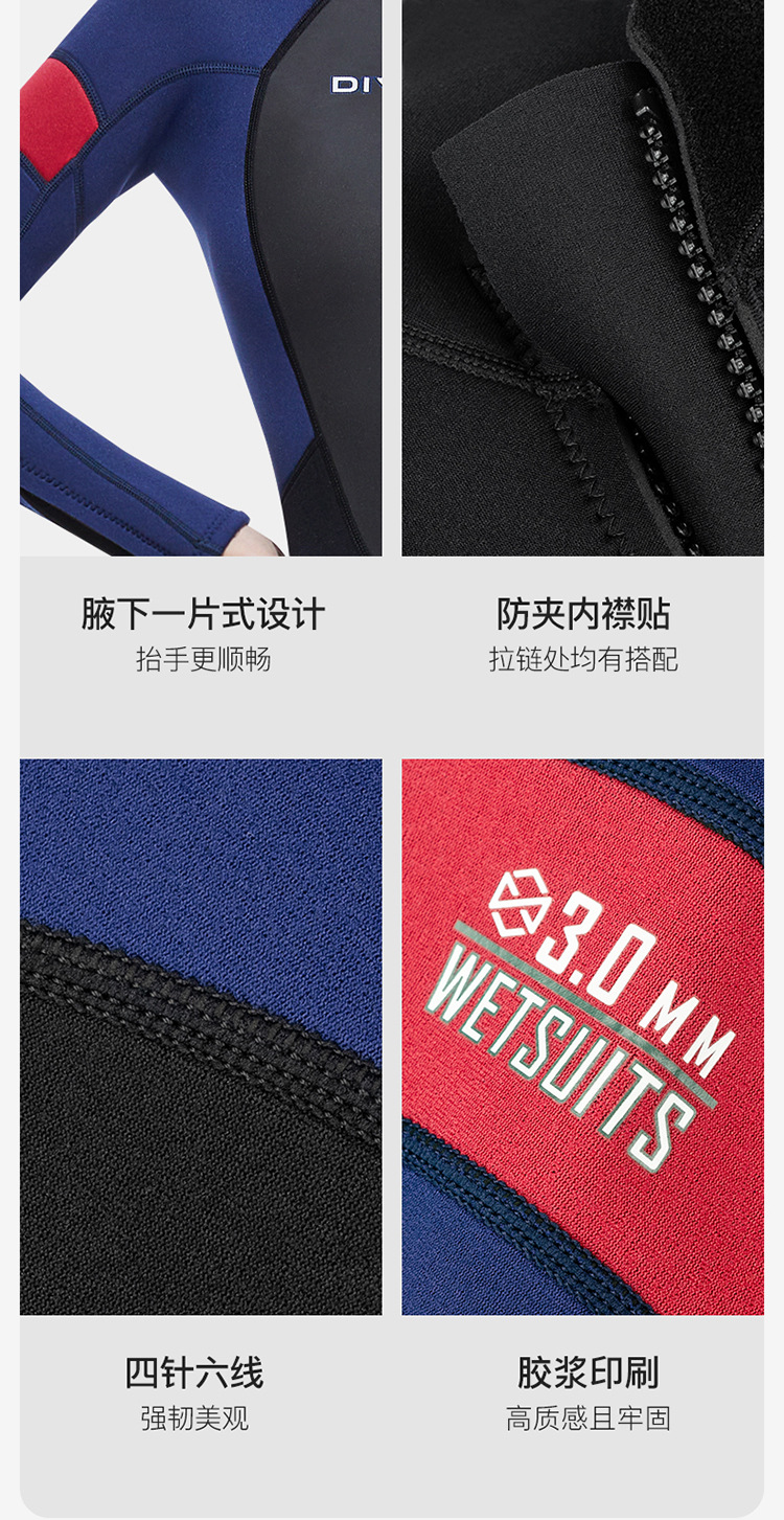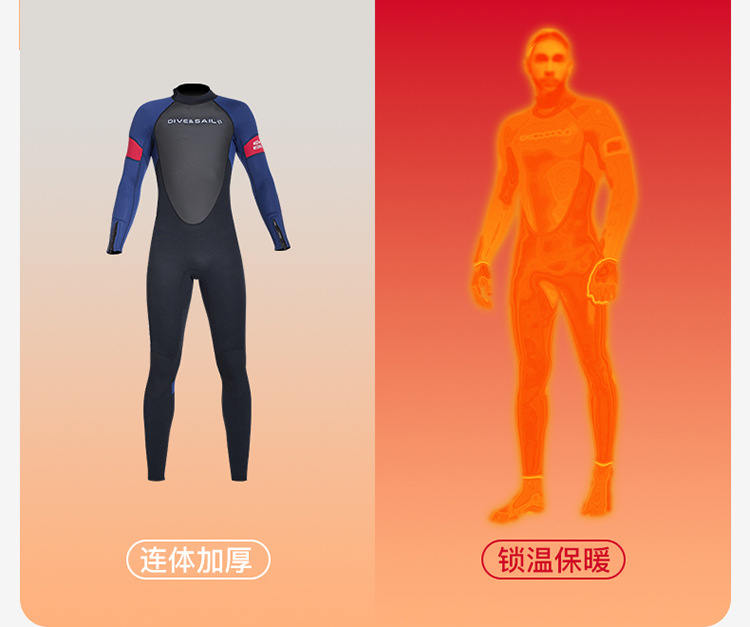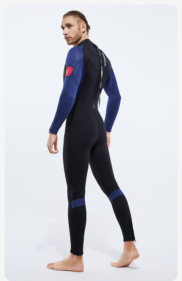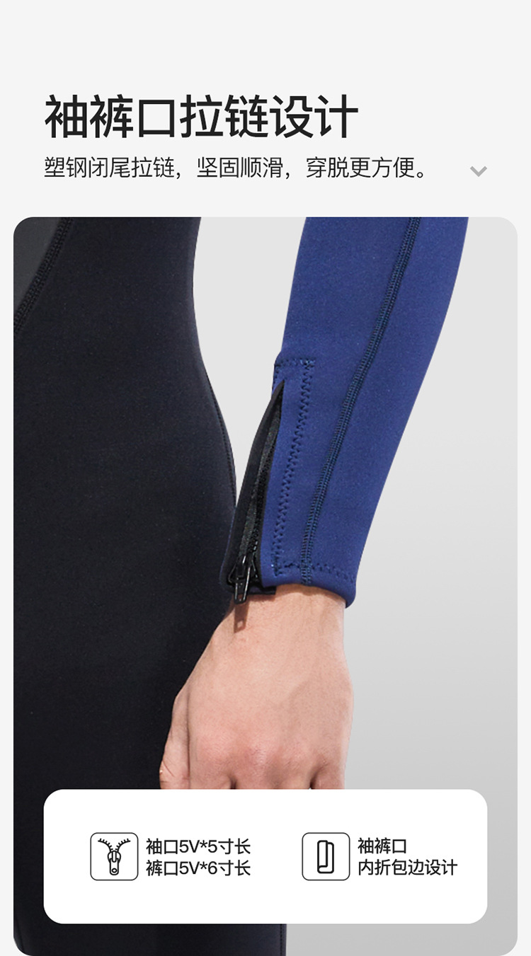 Cold-Proof Swimsuit 3/5mm Diving Suit Men's One-Piece Warm Fleece-Lined Zipper Cuffs Motorboat Women's Surfing Wetsuit