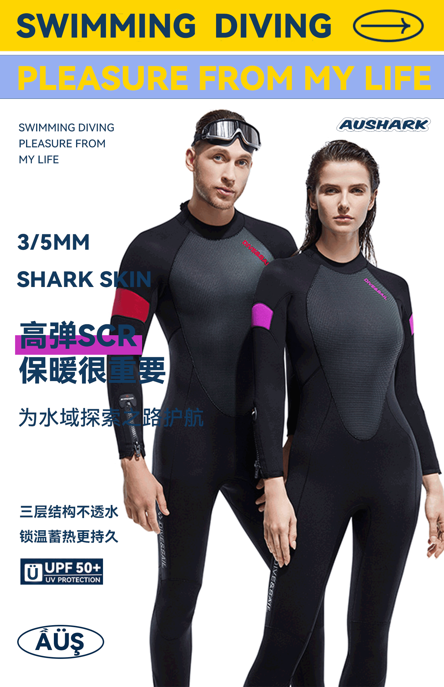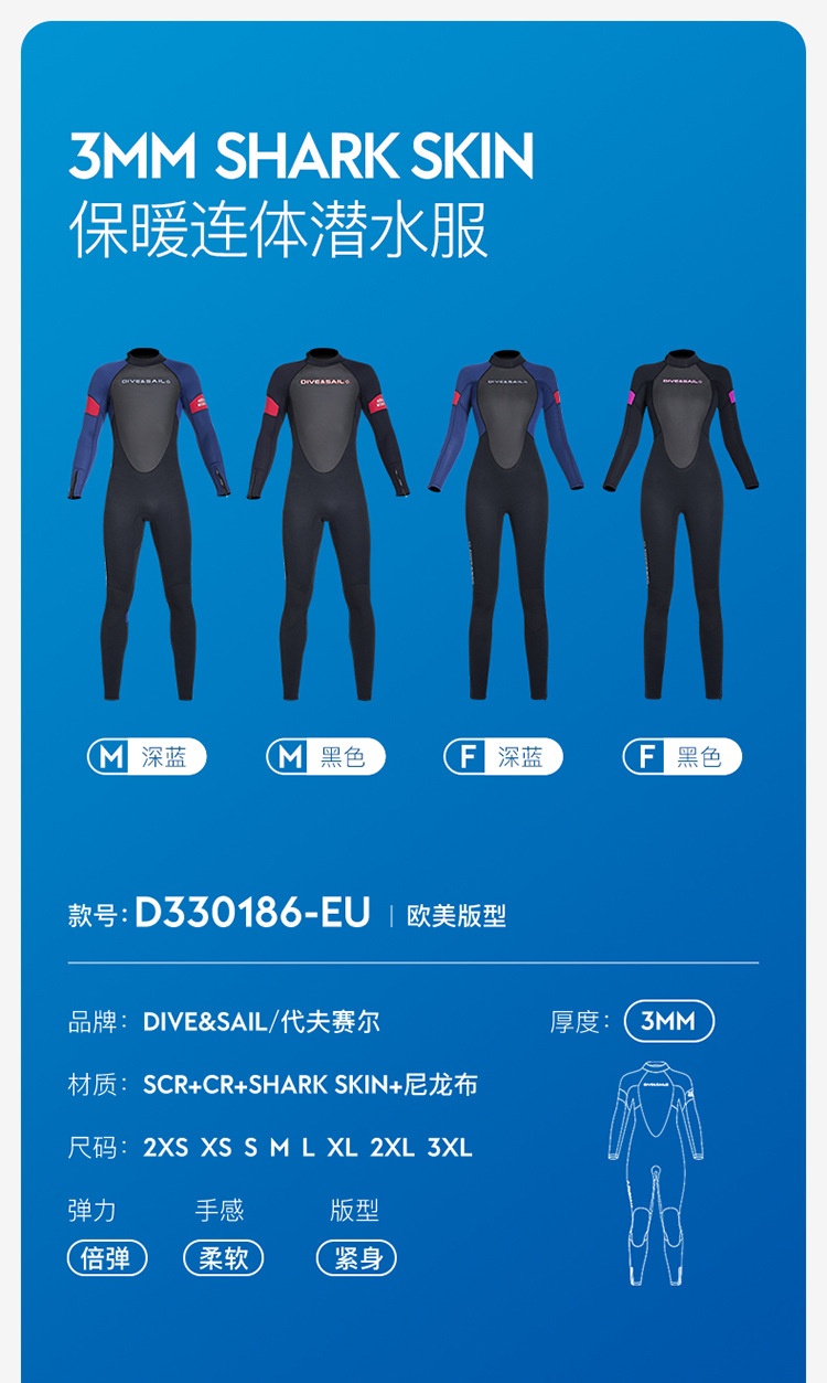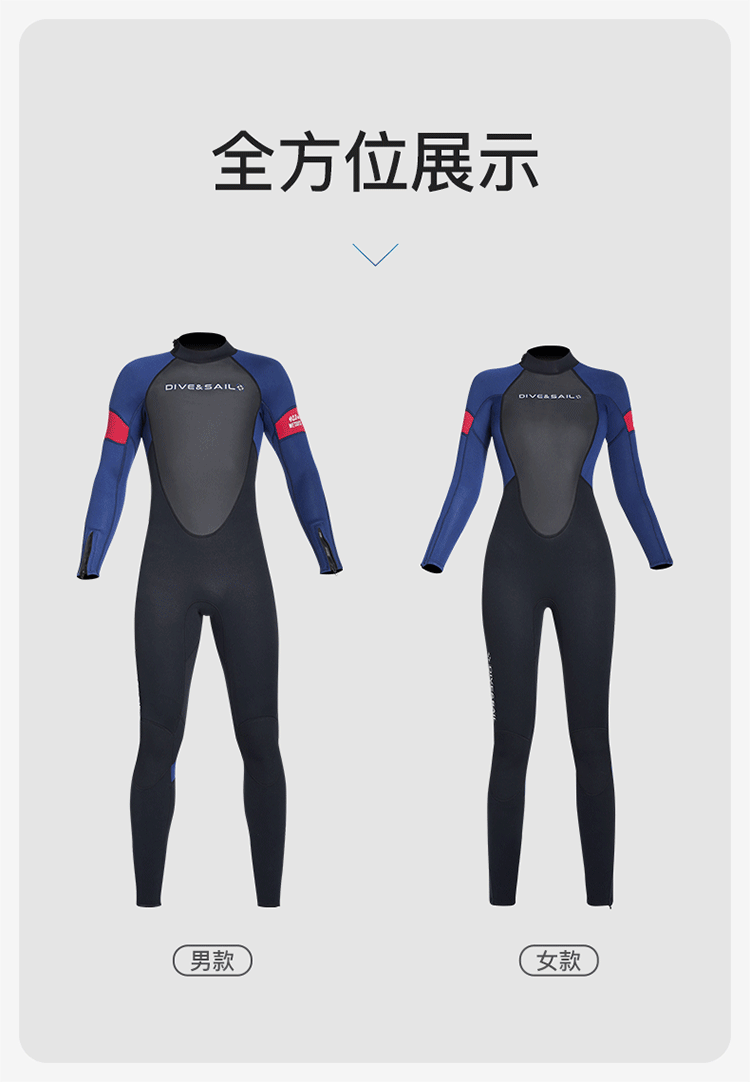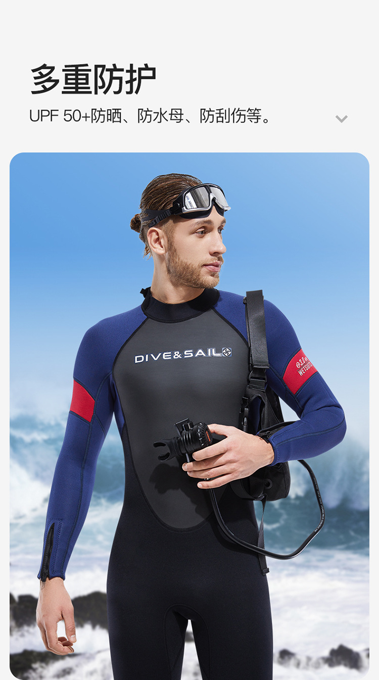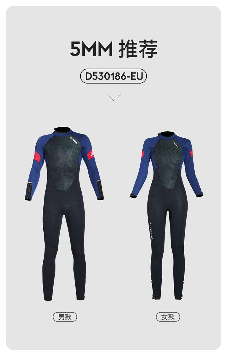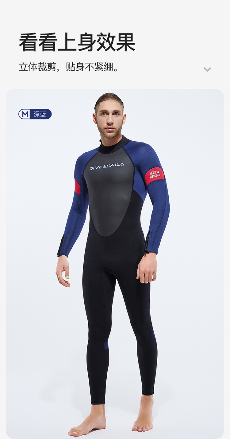 Cold-Proof Swimsuit 3/5mm Diving Suit Men's One-Piece Warm Fleece-Lined Zipper Cuffs Motorboat Women's Surfing Wetsuit