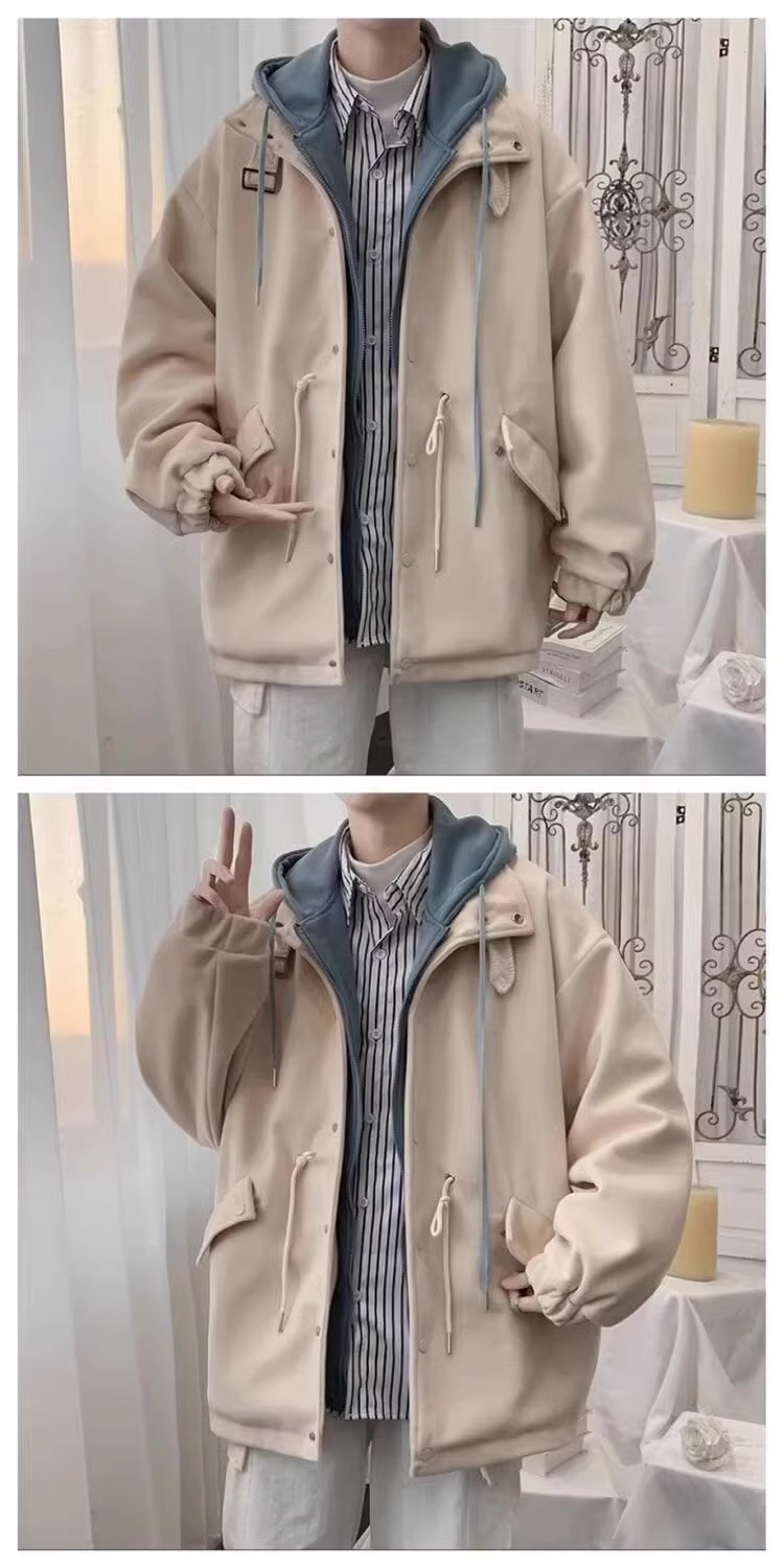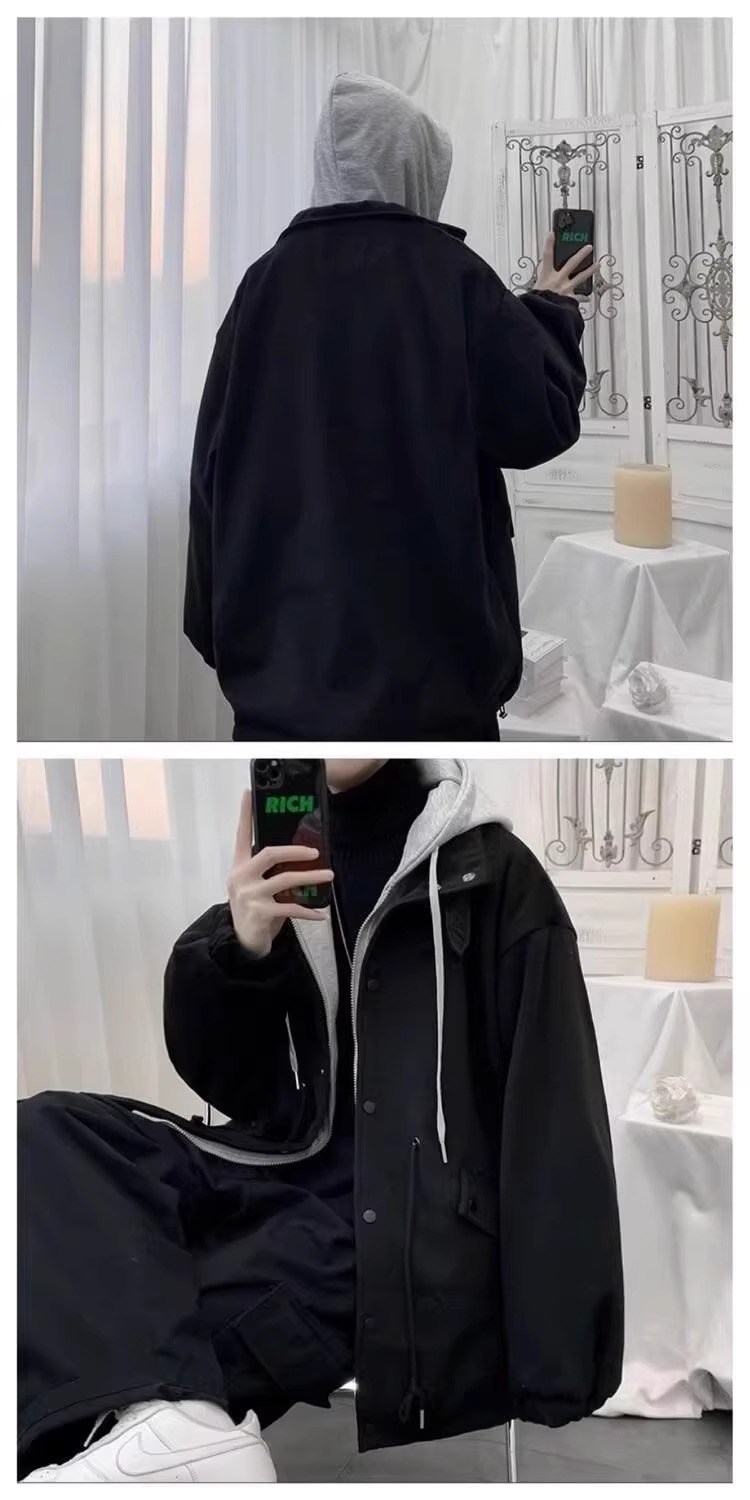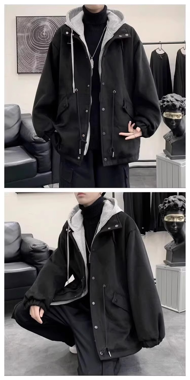 Trendy Brand Faux Two-Piece Woolen Jacket Men's Suit for Spring and Autumn, High Street Cleanfit American Style Loose Cool Cotton Jacket