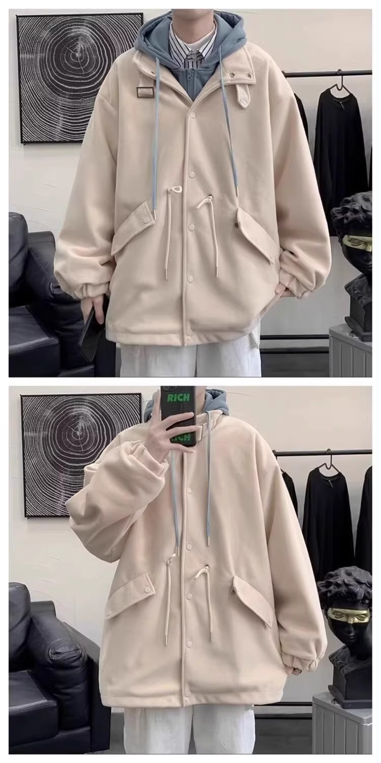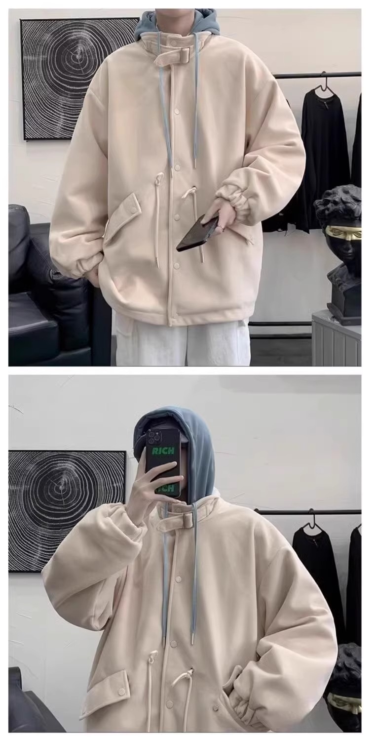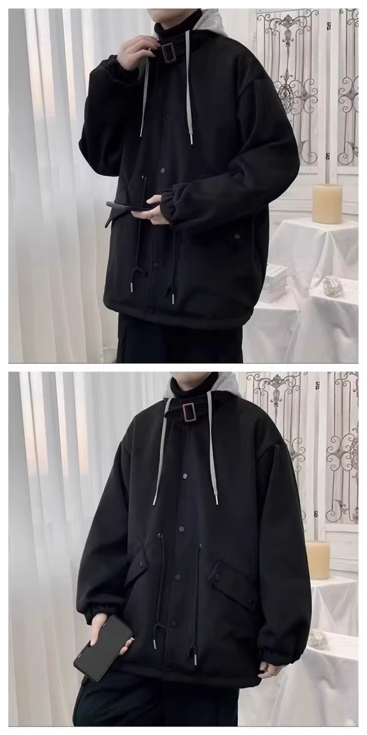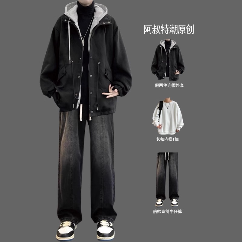 Trendy Brand Faux Two-Piece Woolen Jacket Men's Suit for Spring and Autumn, High Street Cleanfit American Style Loose Cool Cotton Jacket
