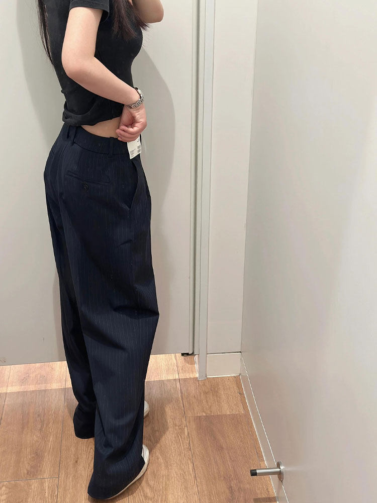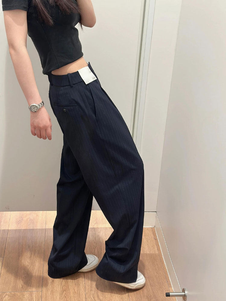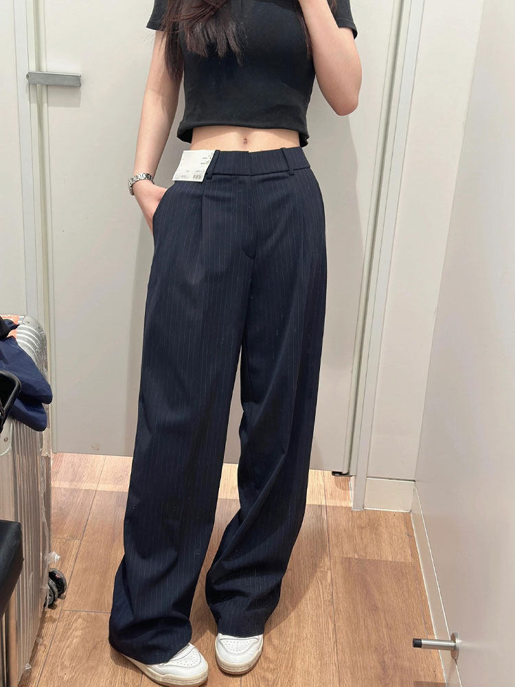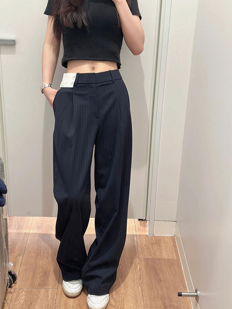 Absolutely Amazing! Commuting Style Striped Pants for Women, Casual Versatile Suit Pants, Korean Fashion, Crisp Wide-Leg Straight Pants