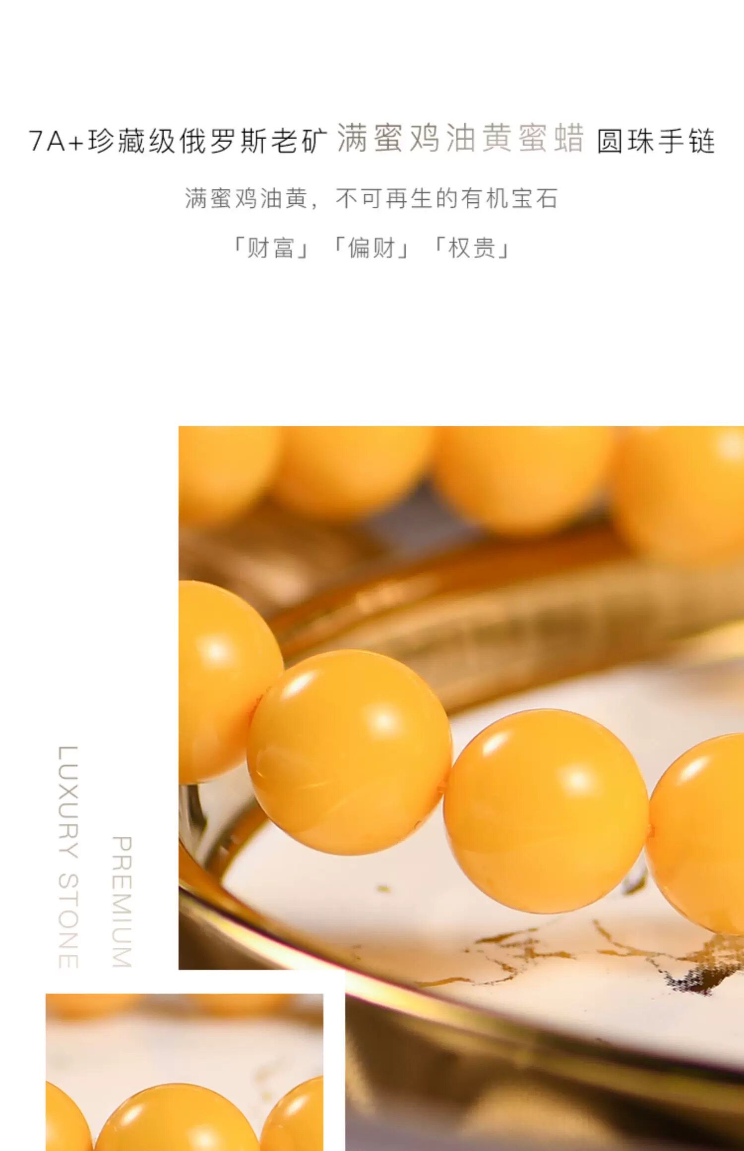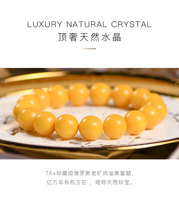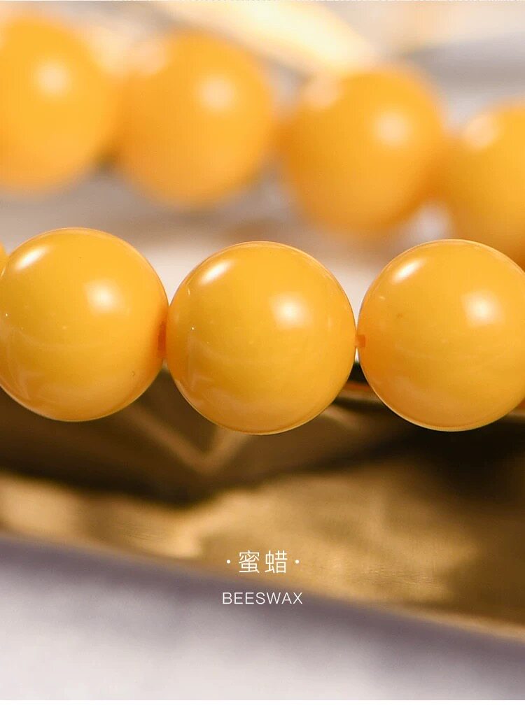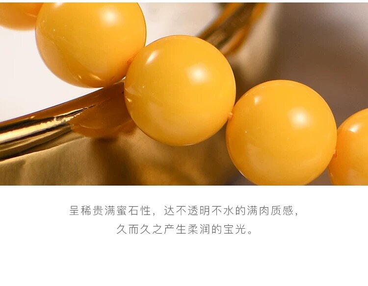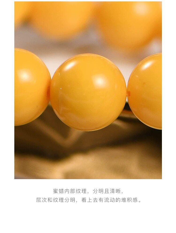 Natural Collectible-Grade Russian White Flower Chicken Oil Yellow Beeswax Bracelet Amber Bracelet for Women and Men, Gift for Girlfriend