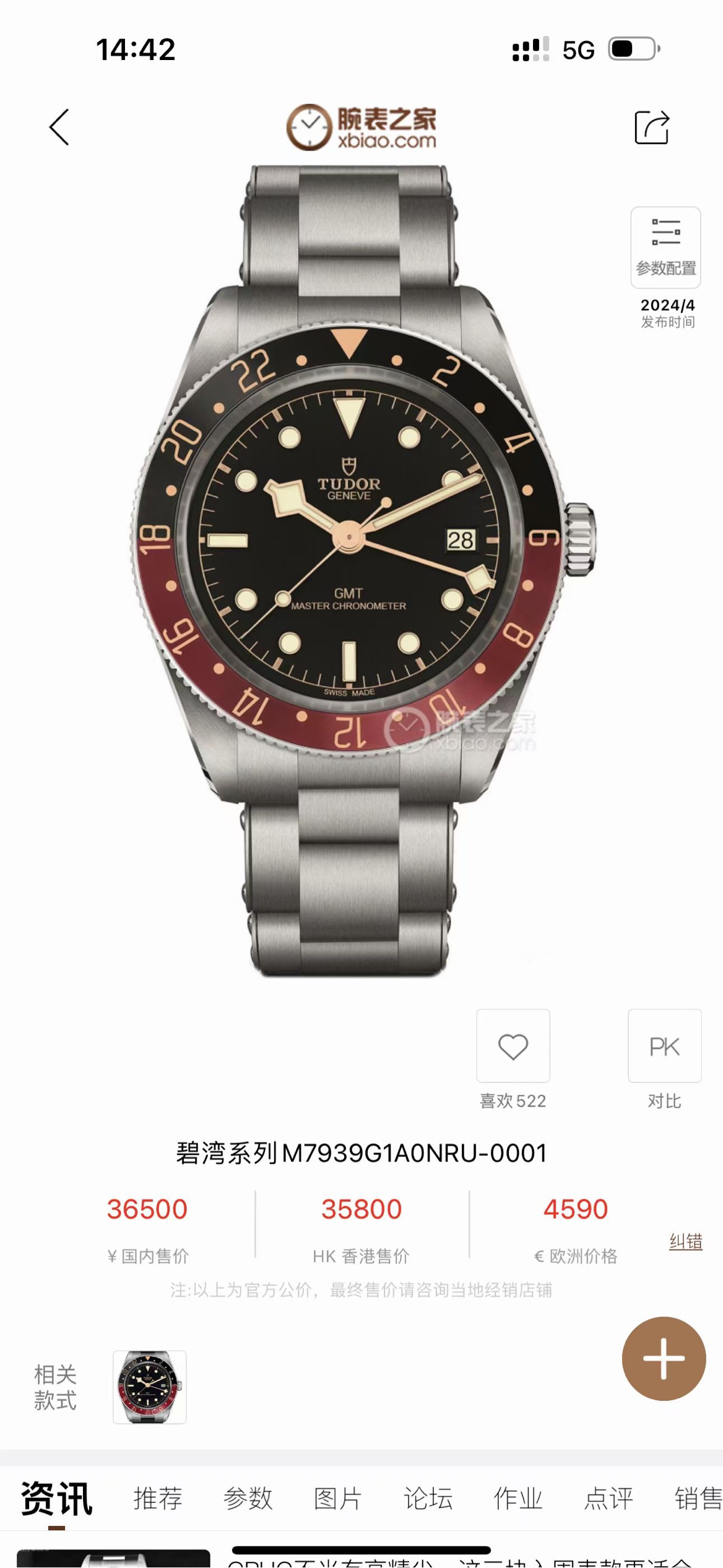 Brand New Genuine Tudor 1958 Black Bay M7939G1A0Nru-0001 Watch with a Diameter of 39mm, Coke Bezel, Gmt
