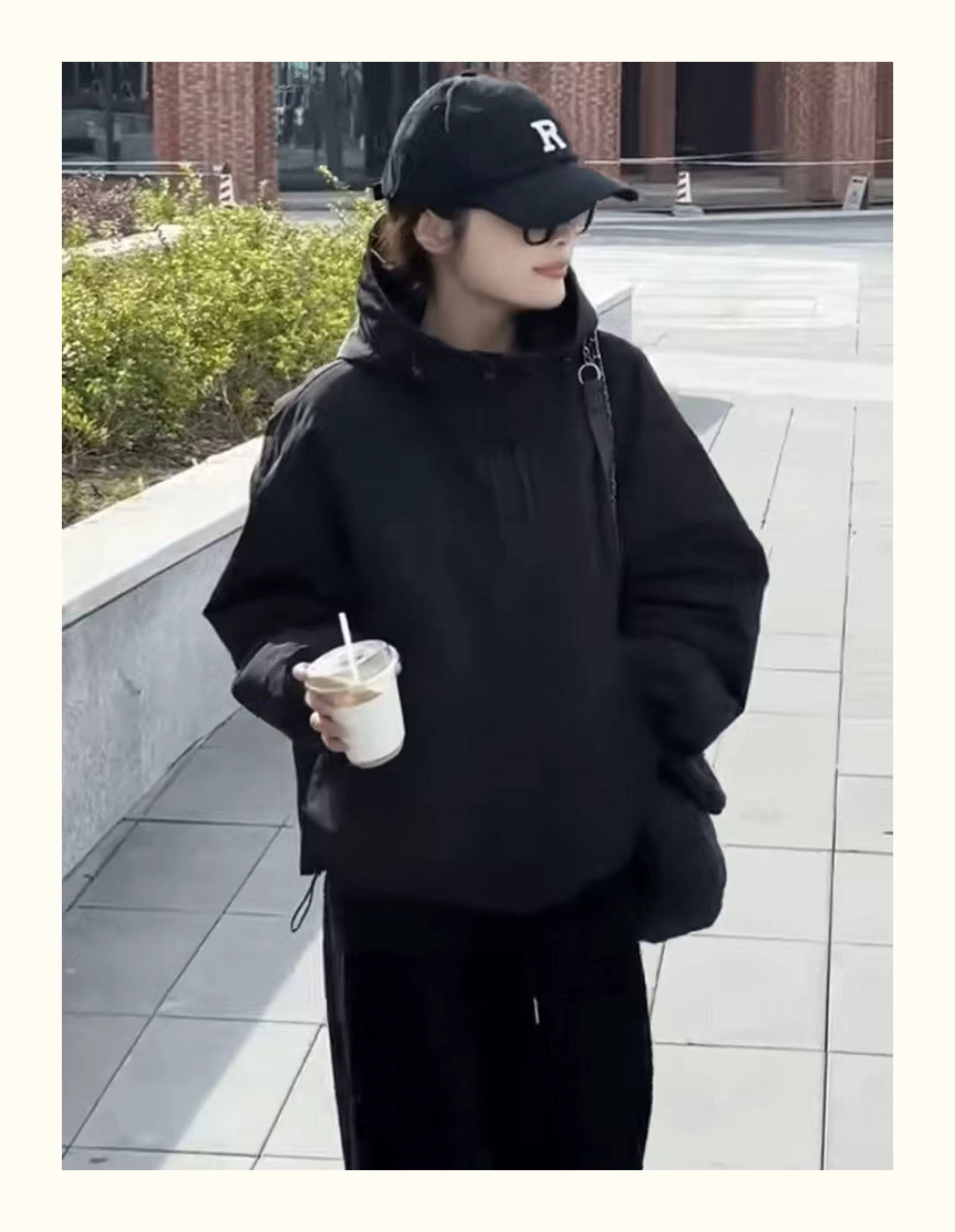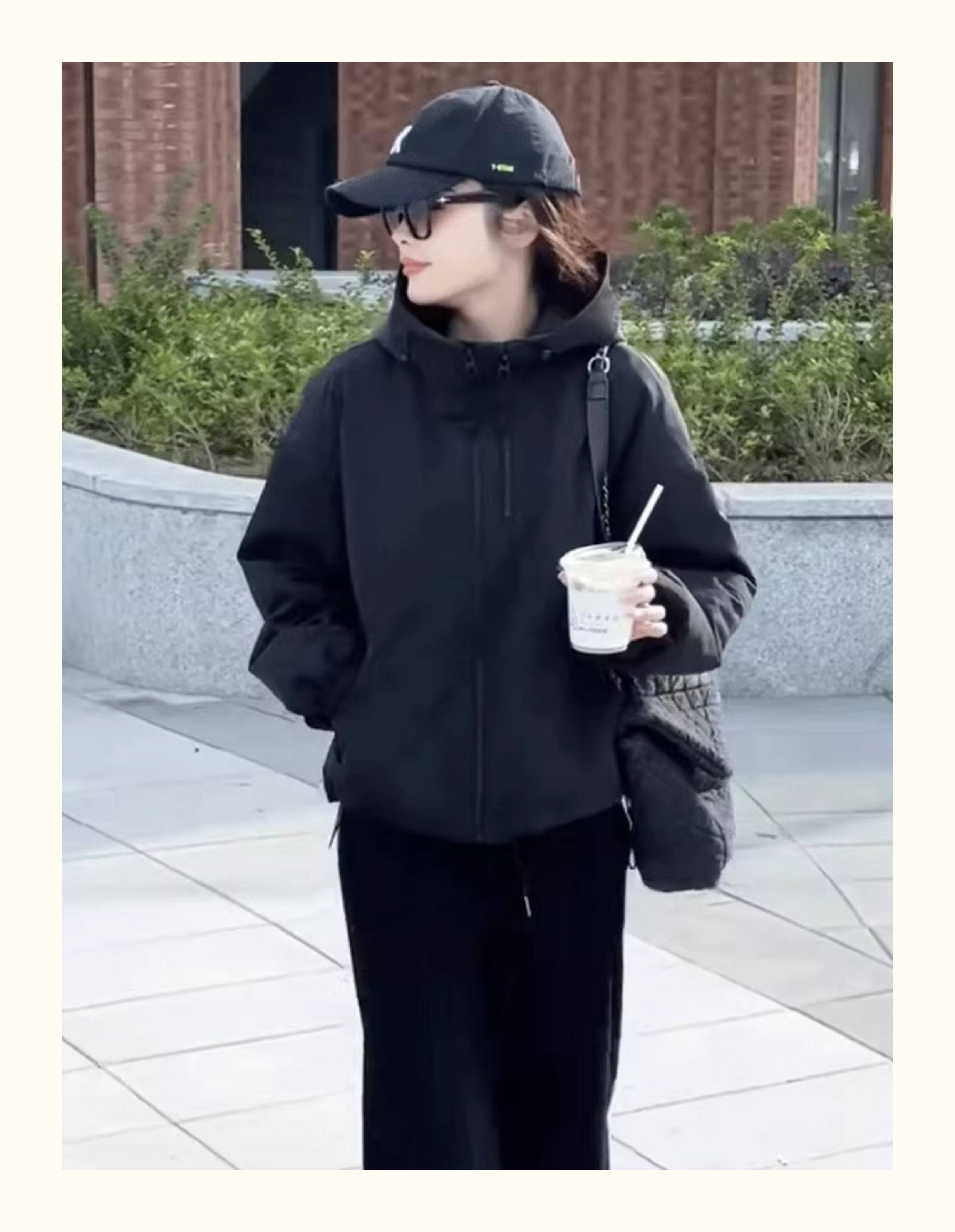 Double Zipper Hooded Padded Thick Short Jacket for Women, New Autumn and Winter Style, Petite Loose Fit, Slimming Windbreaker Top