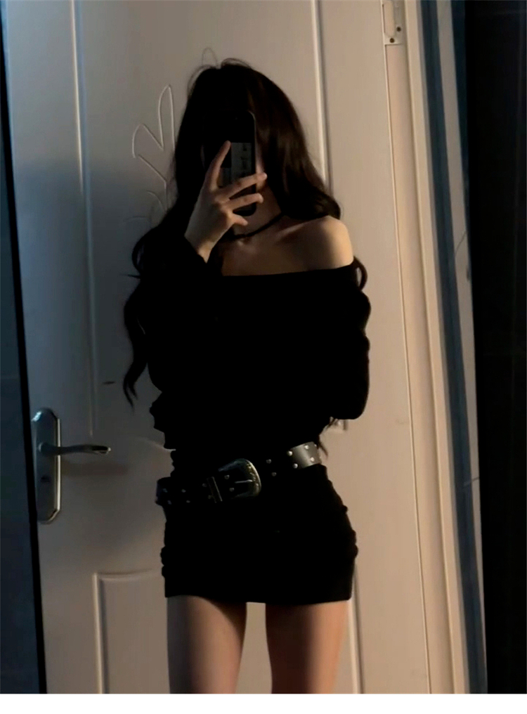 One-Shoulder Black Elegant Dress for Women, Autumn and Winter 2025 New Style, Sexy Hot Girl and Mature Lady Style, Bodycon Mini Skirt