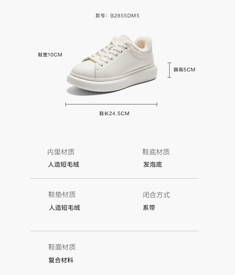 Belle Women's Shoes Thick-Soled White Shoes with Fleece Lining Winter New Height-Increasing Shoes Cotton Shoes Sports Casual Sneakers D5Q1Dam5