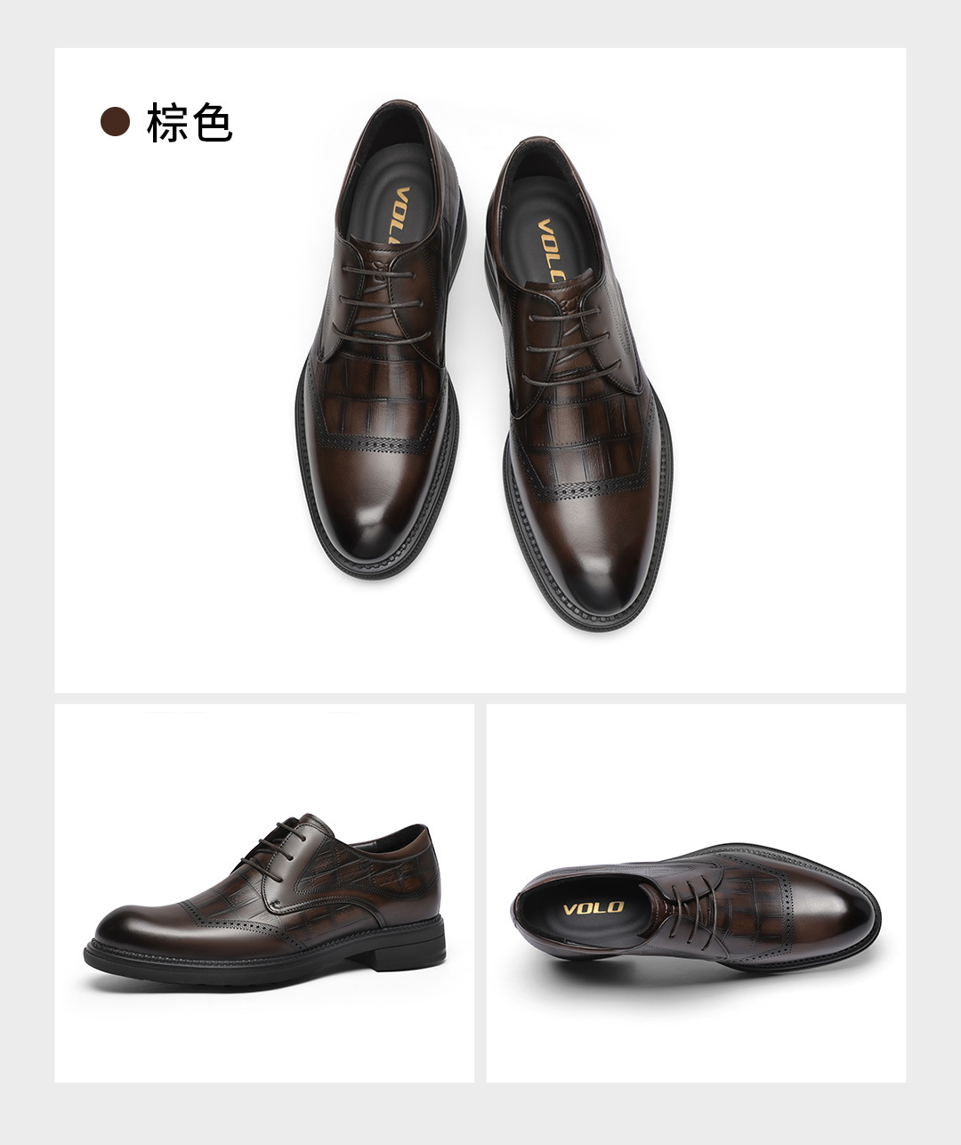 Volo/Rhinoceros Leather Shoes for Men, Wedding Formal Leather Shoes, Genuine Leather Height-Increasing Men's Business Derby Shoes with Soft Soles