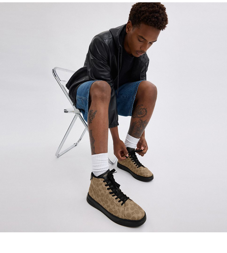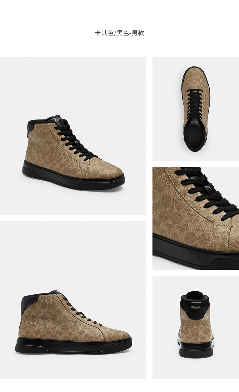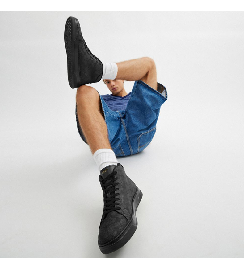 COACH/COACH Men's and Women's HIGH LINE Old Flower HIGH-Top Sneakers Casual Shoes Plaid Work Clothing