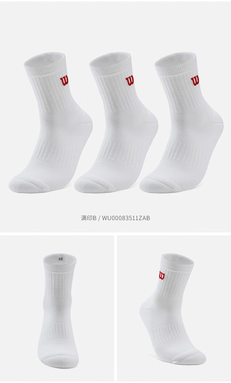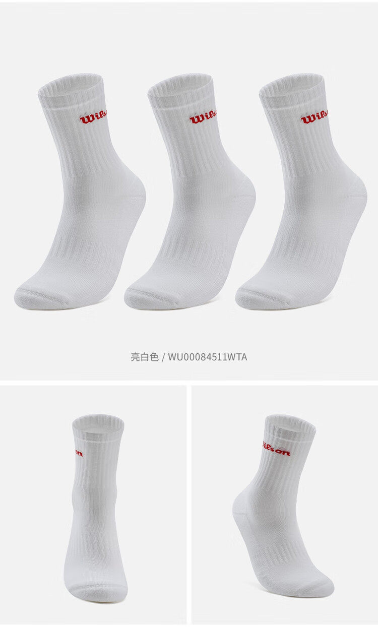 Wilson 26 New Model Tennis Socks, Solid Color, Elite Women's Mid-Calf High-Waist Thickened Training Socks, American-Style Towel Bottom, Pack of 3 Pairs