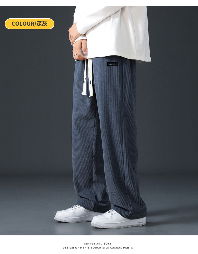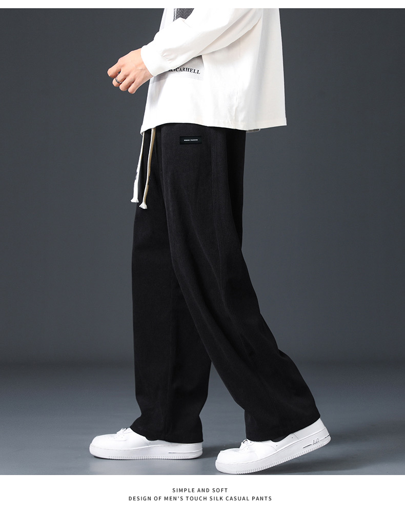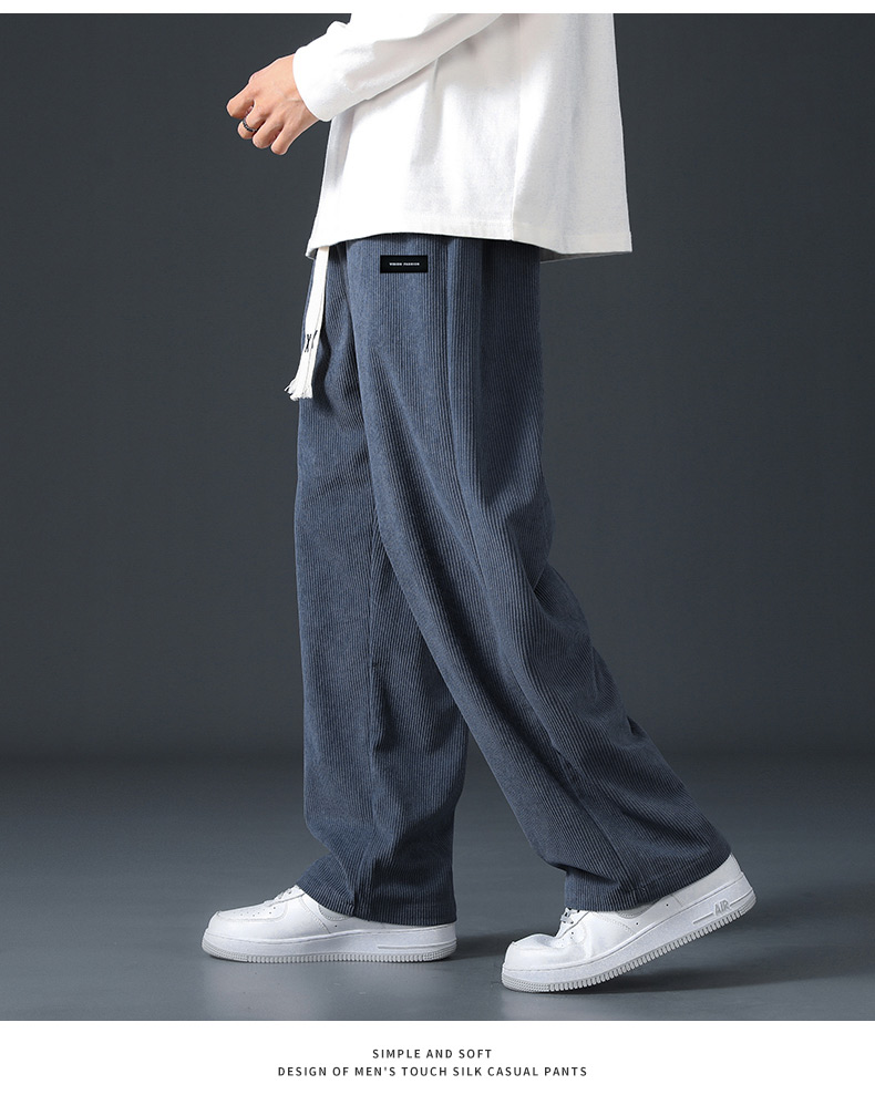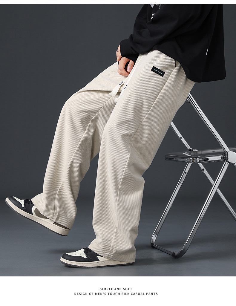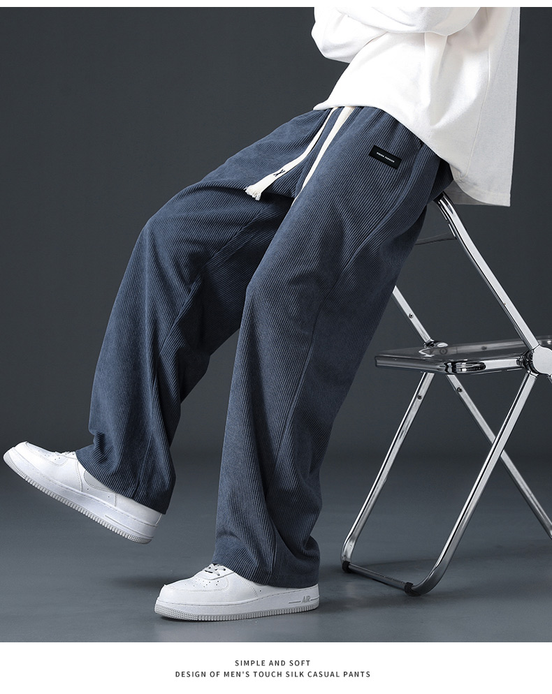 Corduroy Fleece-Lined Pants for Men 2025 New Loose Straight-Leg Wide-Leg Sports Sweatpants Casual Long Pants for Autumn and Winter