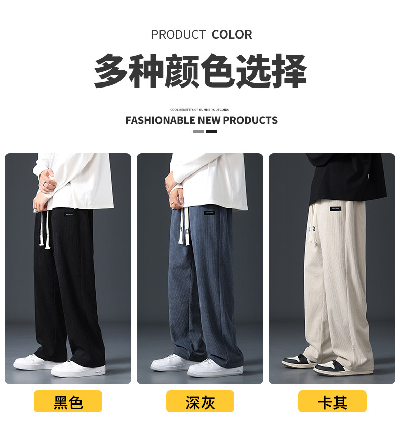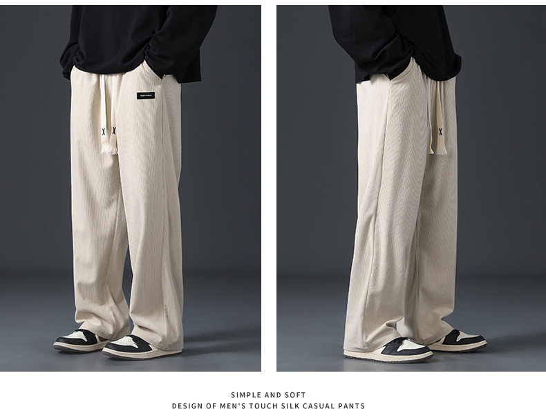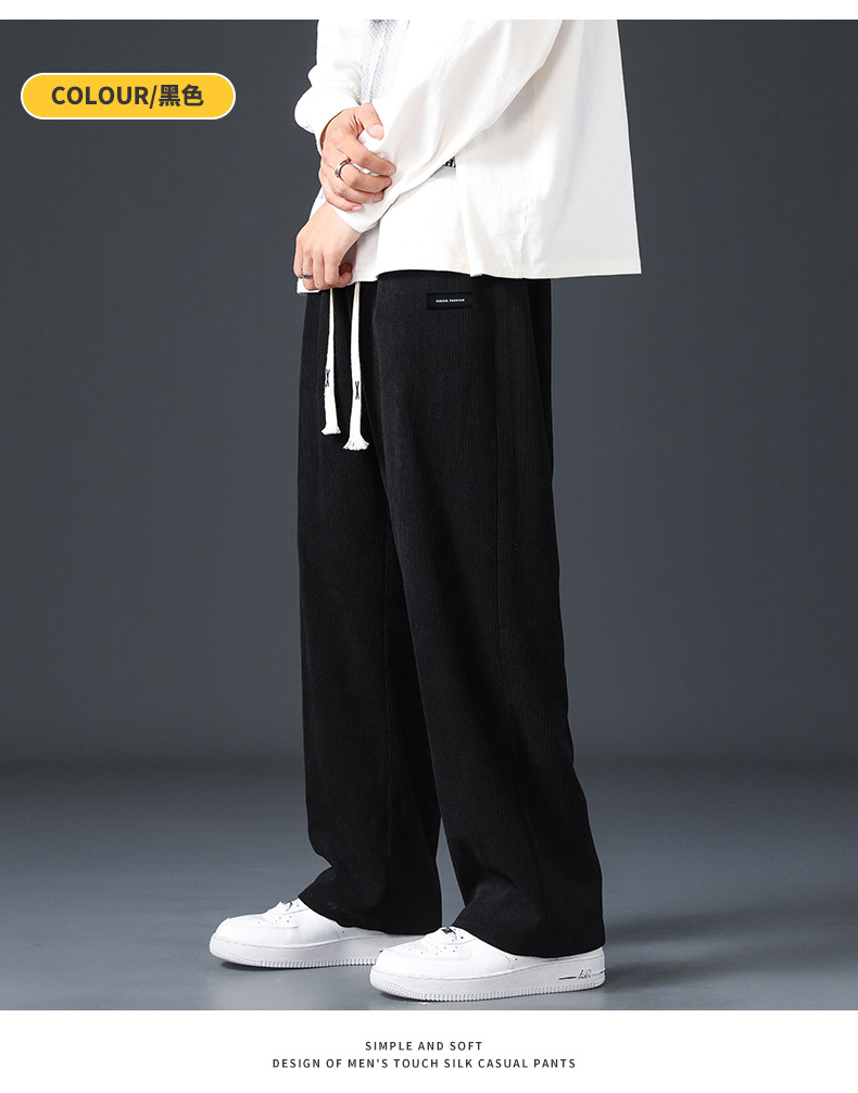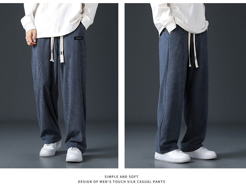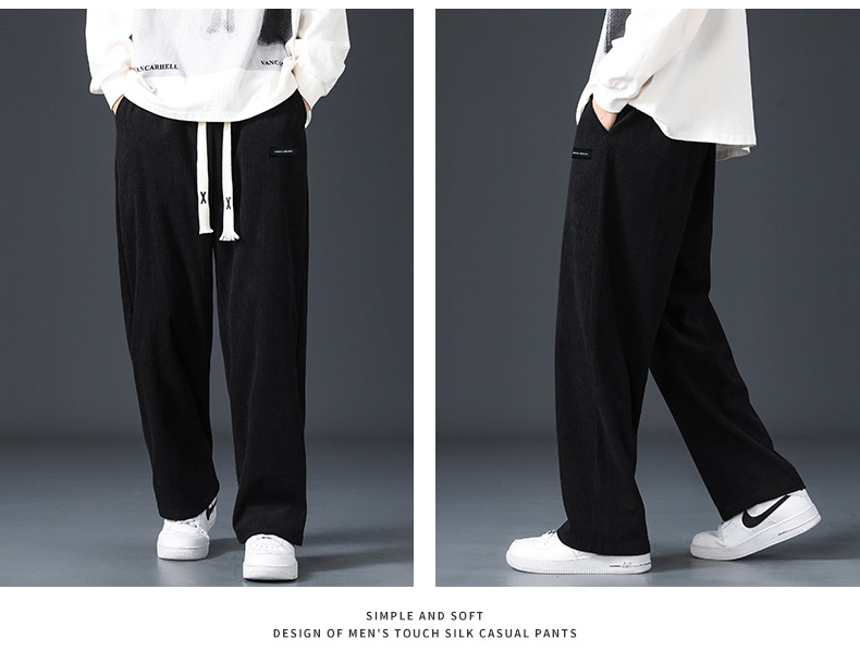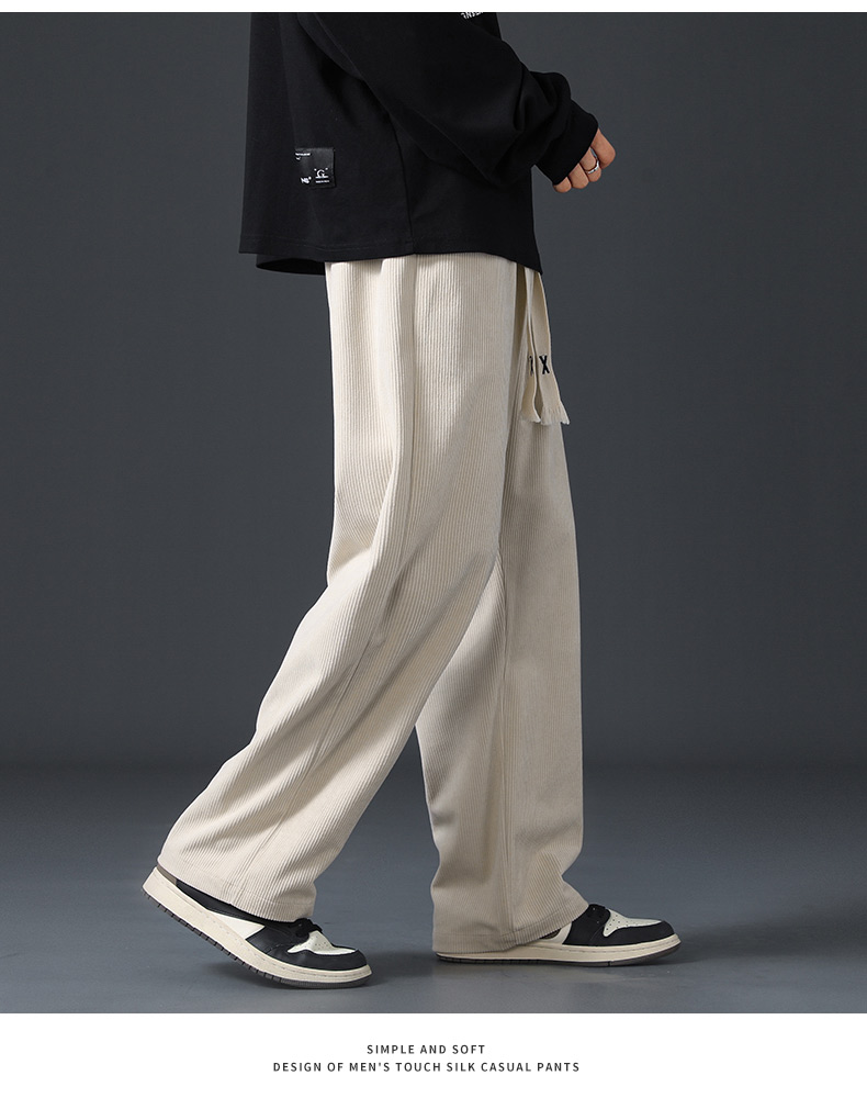 Corduroy Fleece-Lined Pants for Men 2025 New Loose Straight-Leg Wide-Leg Sports Sweatpants Casual Long Pants for Autumn and Winter