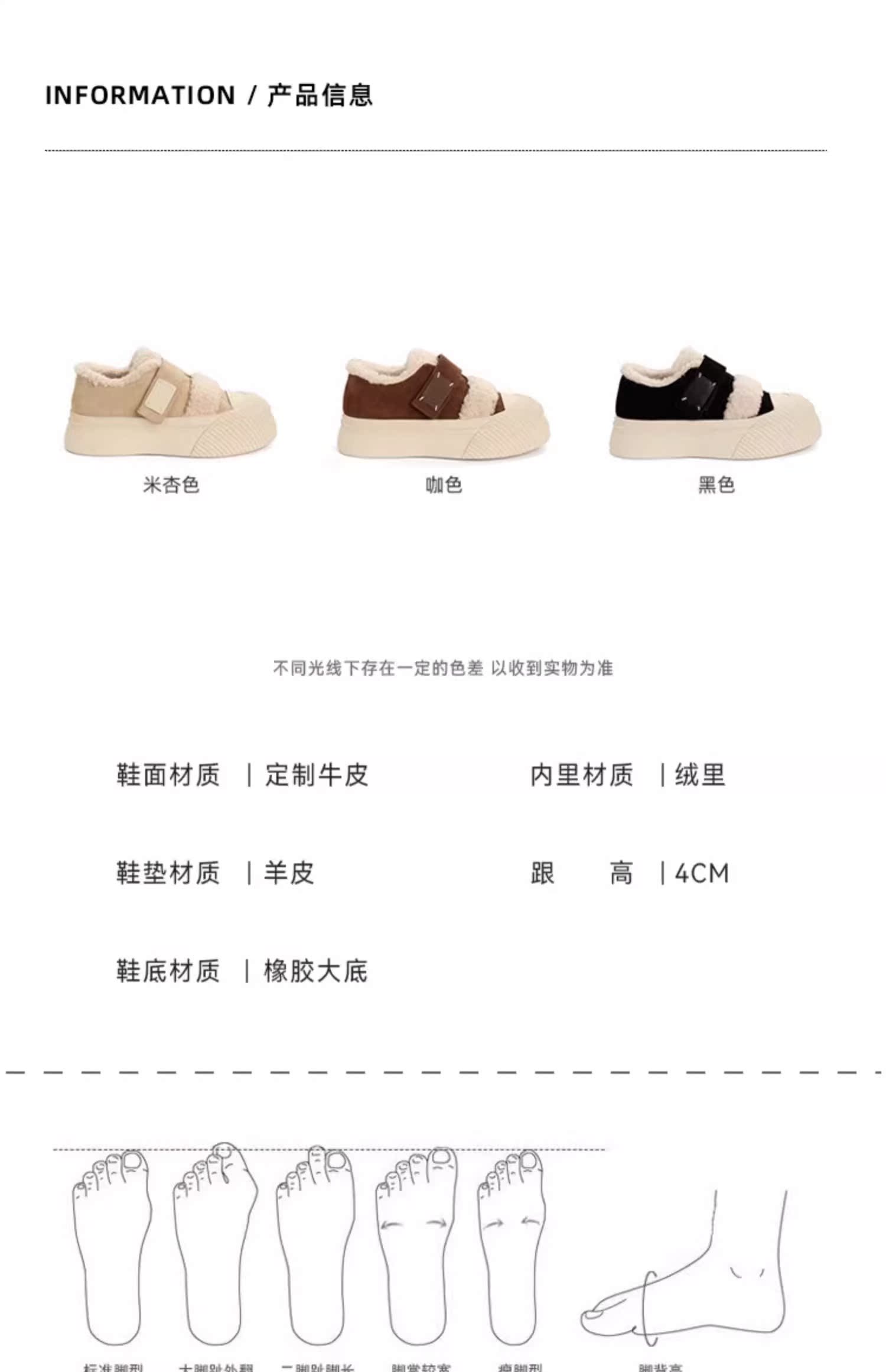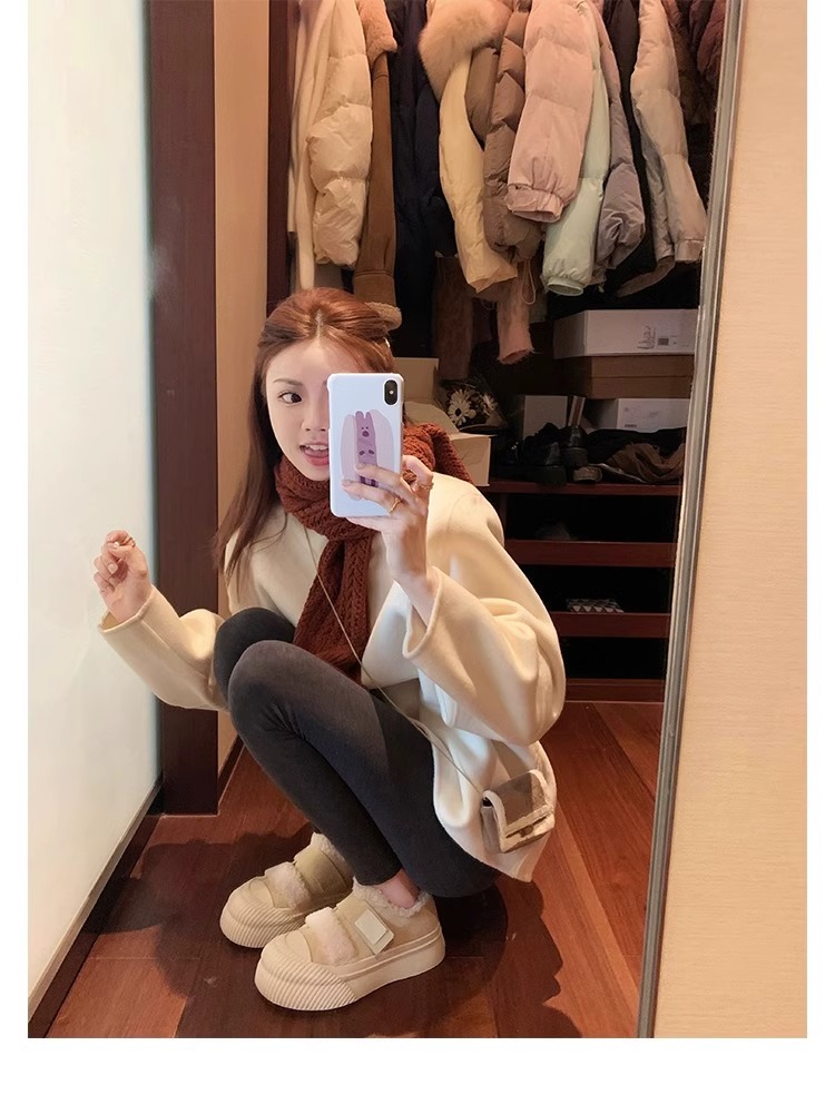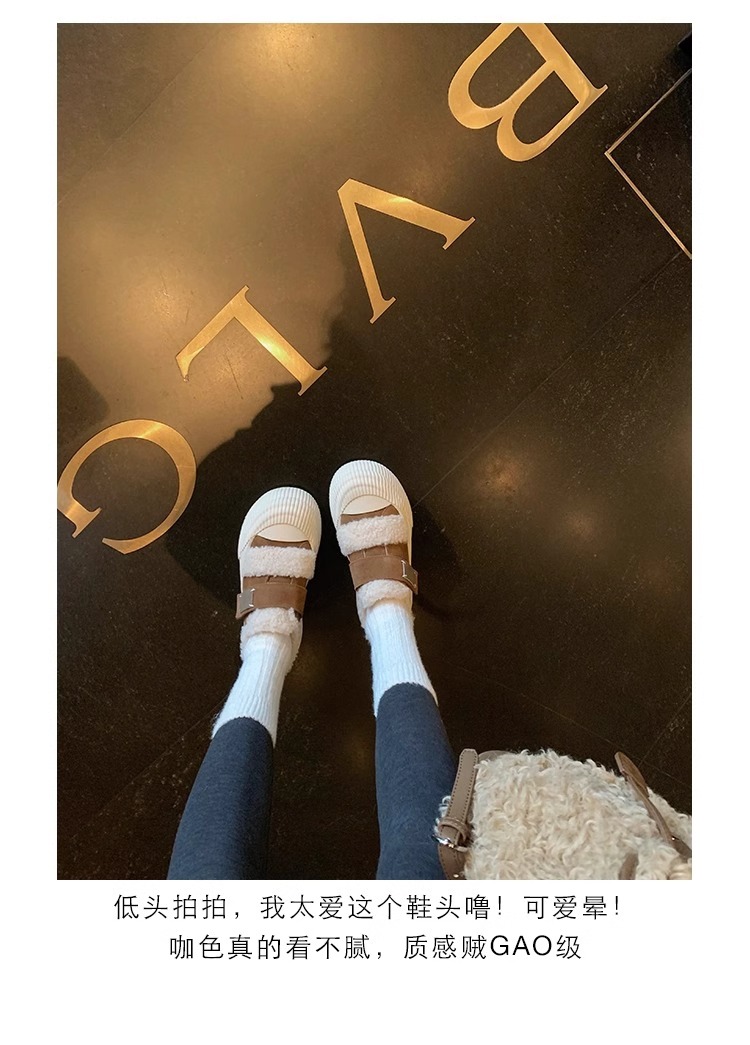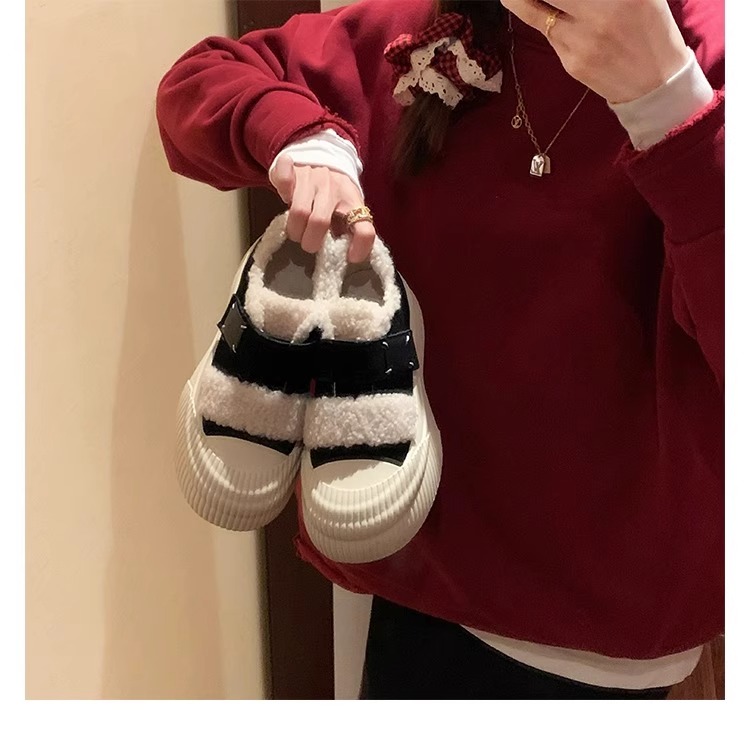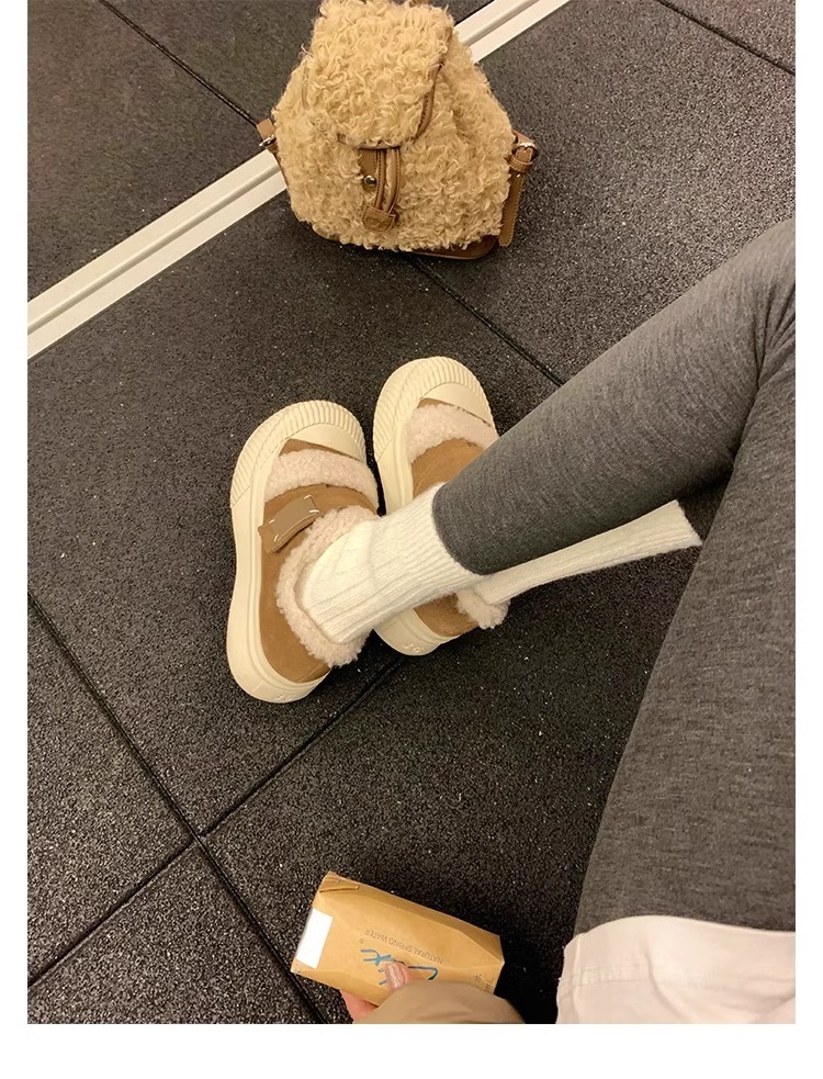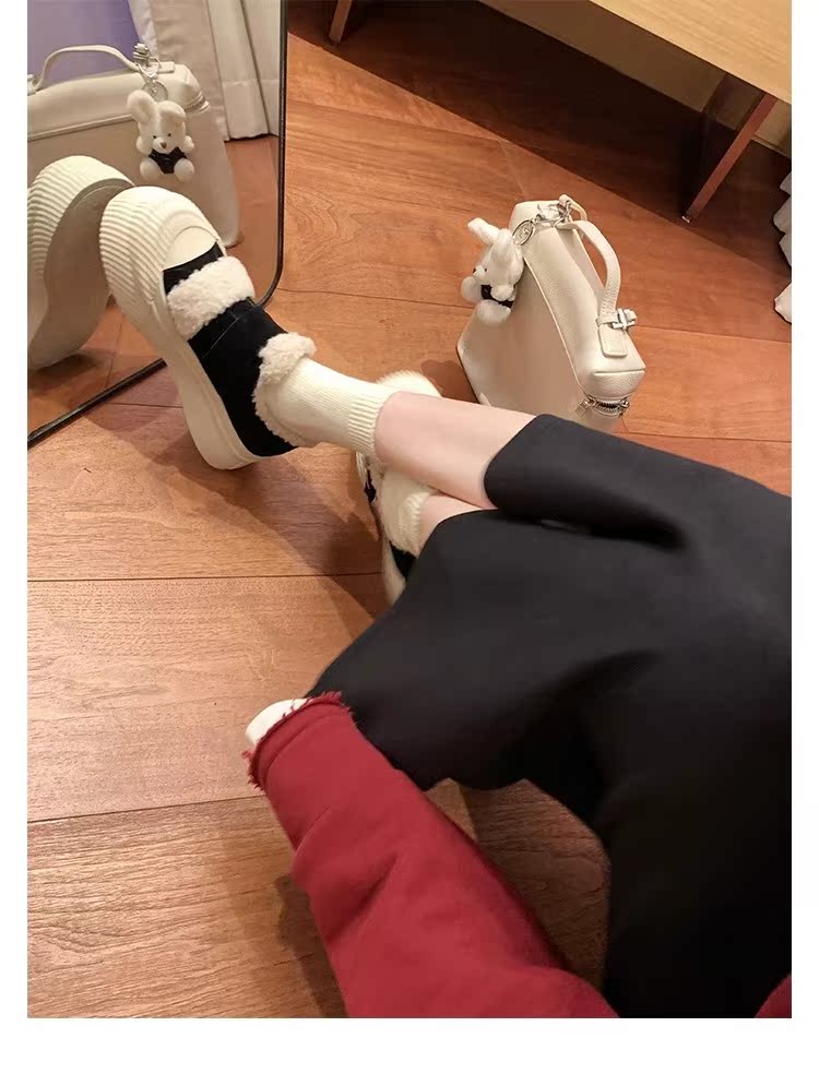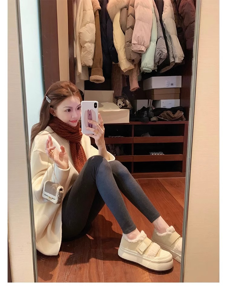 Hong Kong Korean Style Genuine Leather Thick-Soled Furry Shoes for Women 2025 Winter New Versatile Fleece-Lined Warm Casual Sneakers with Velcro