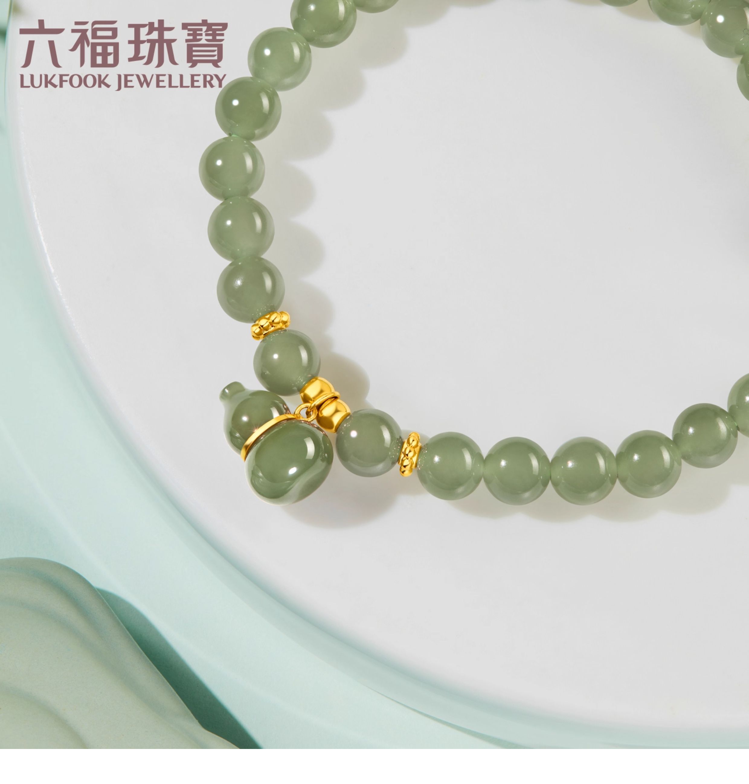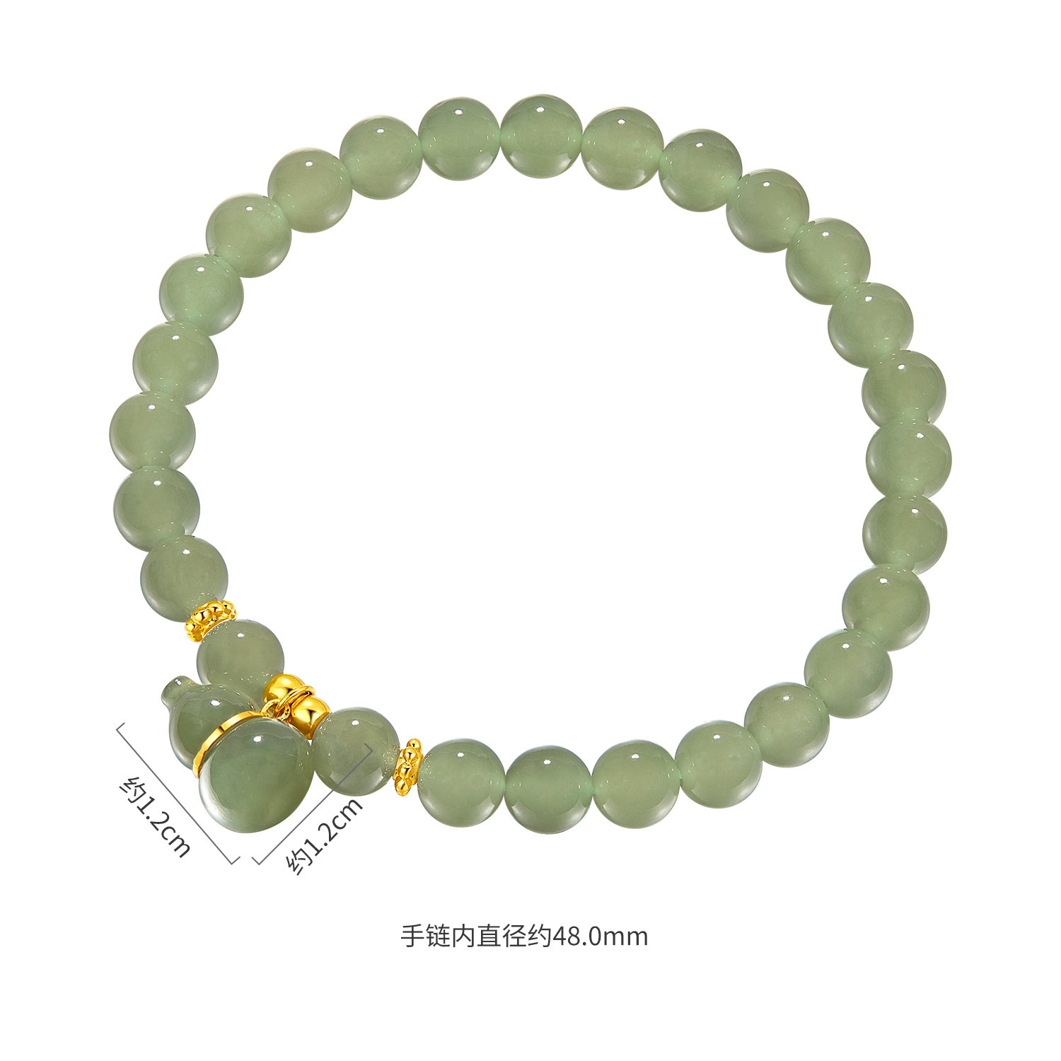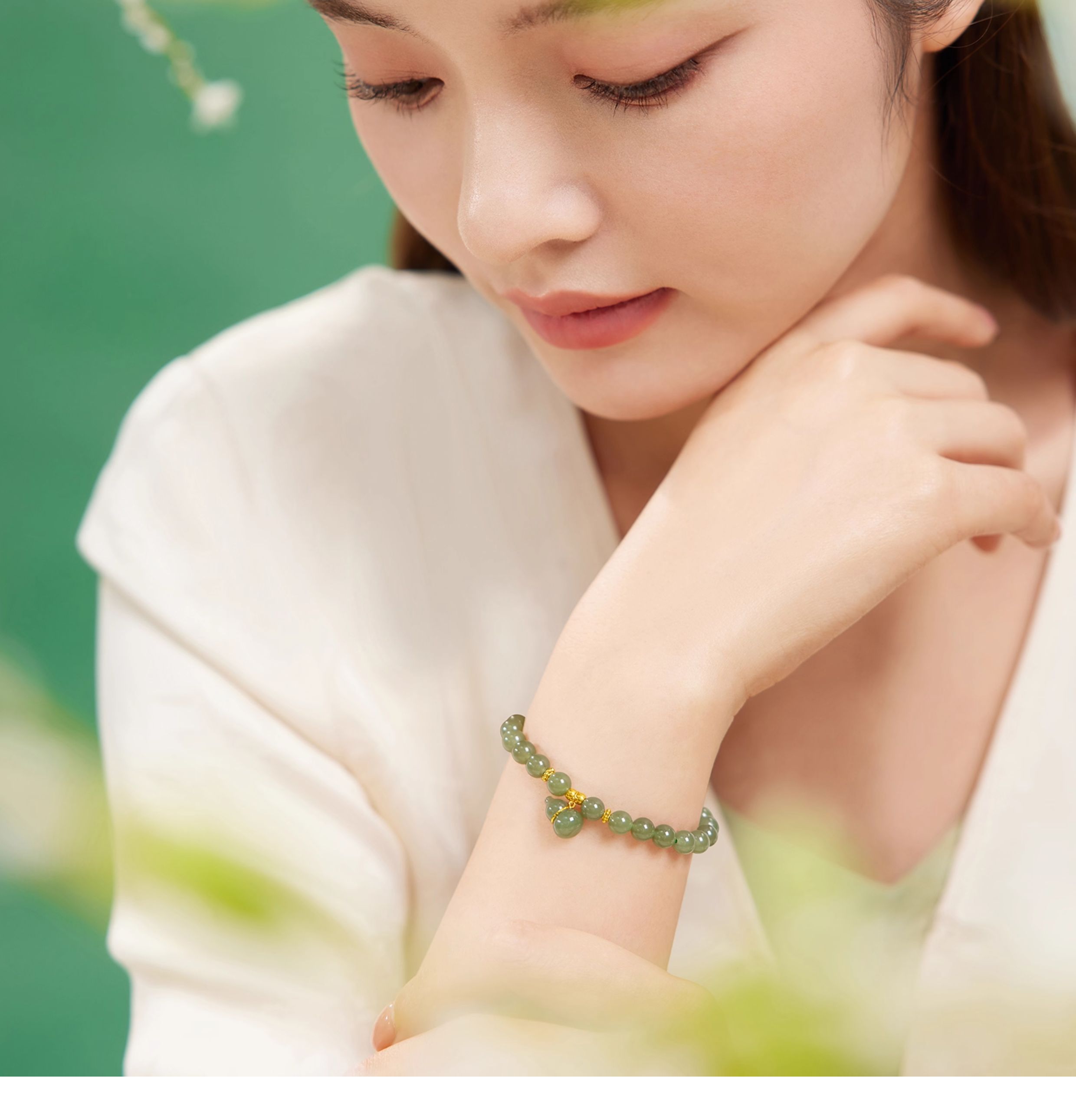 Liufu Jewelry Jade See Fulu Gourd Gold Bracelet Women's 3D Hard Gold Bead Hetian Jade Bracelet A03A0014DS