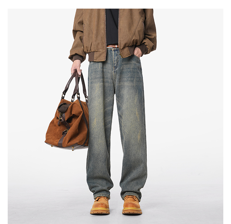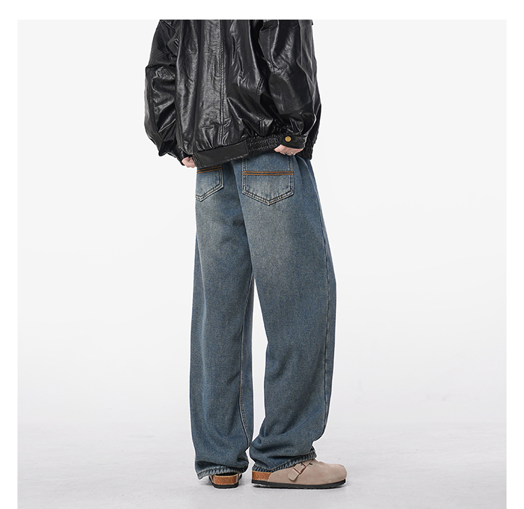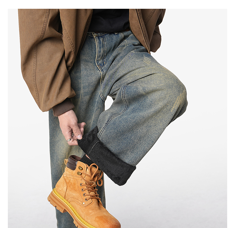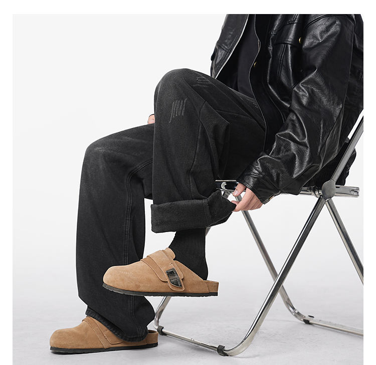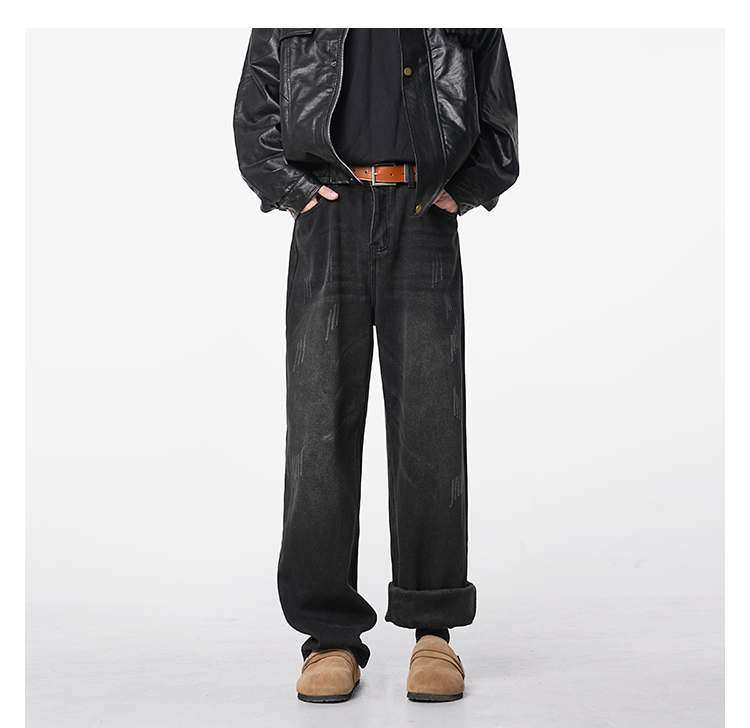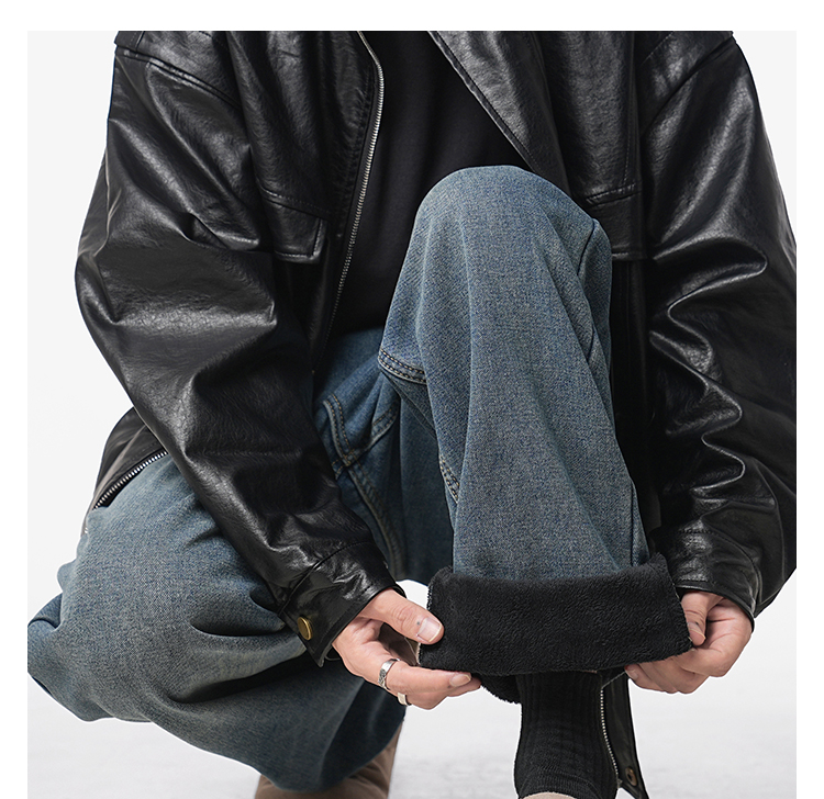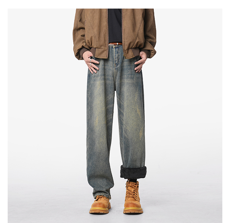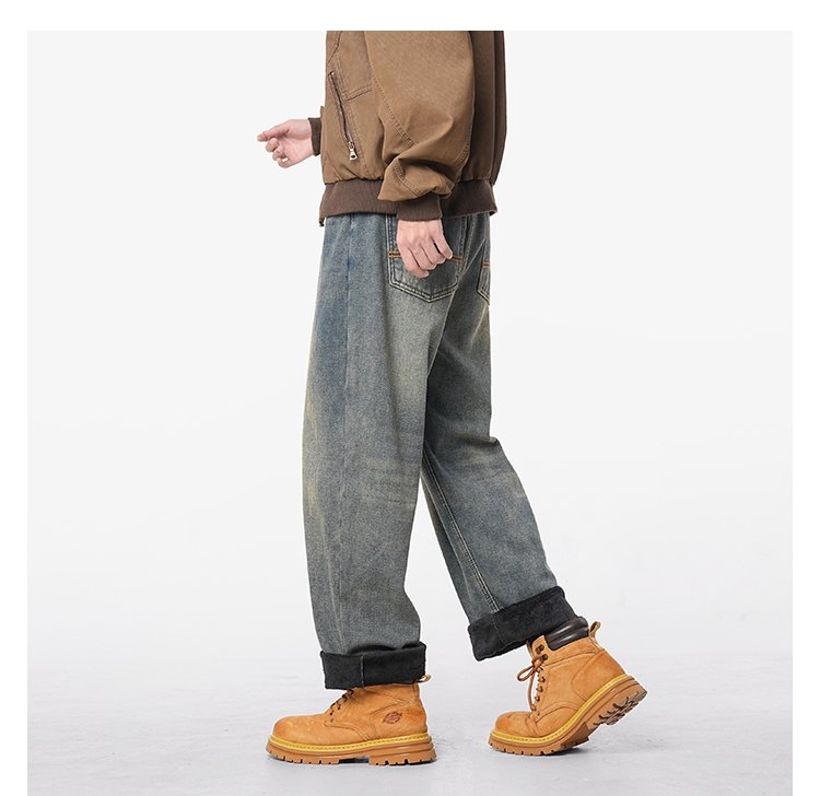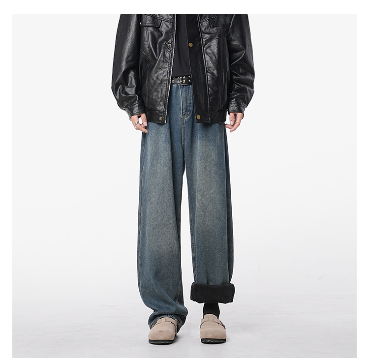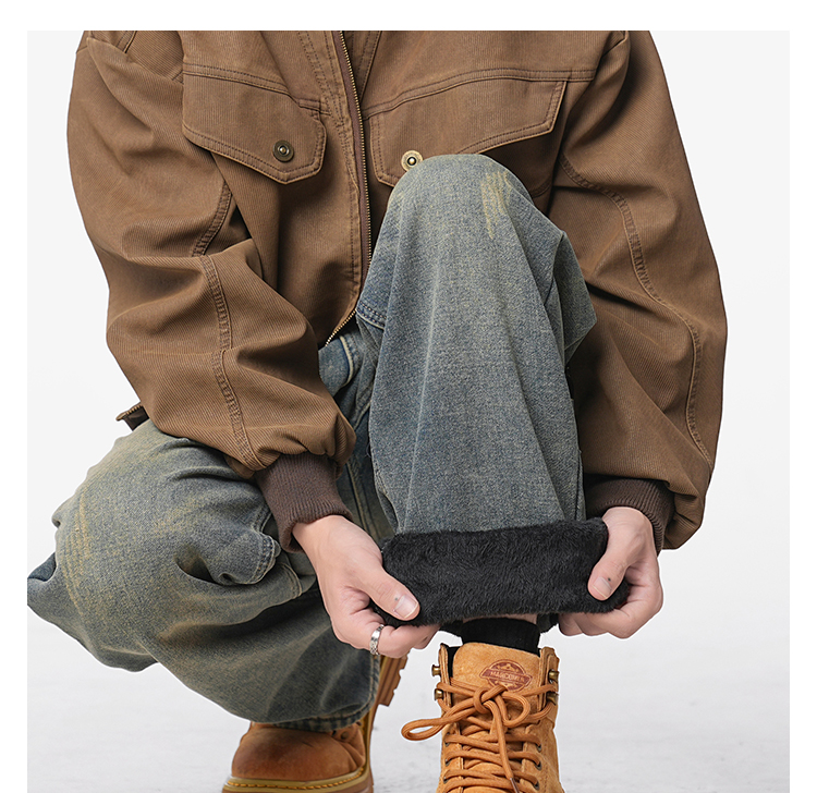 [Ao Ruipeng Endorsement] Geniolamode American Retro Fleece-Lined Jeans for Men, New Autumn Straight-Leg Pants