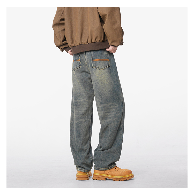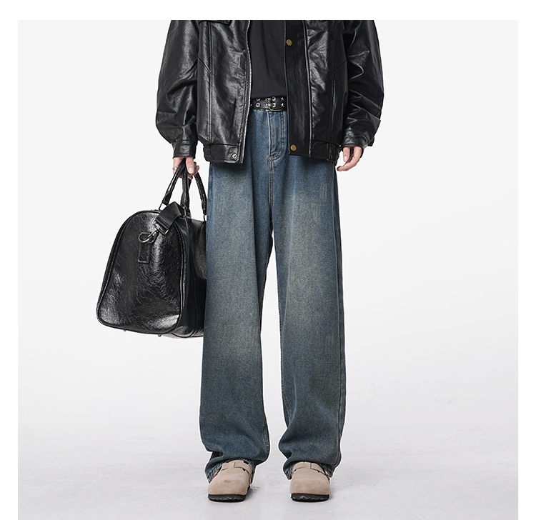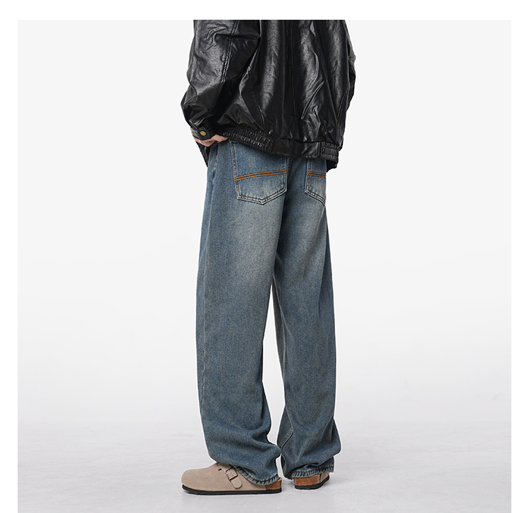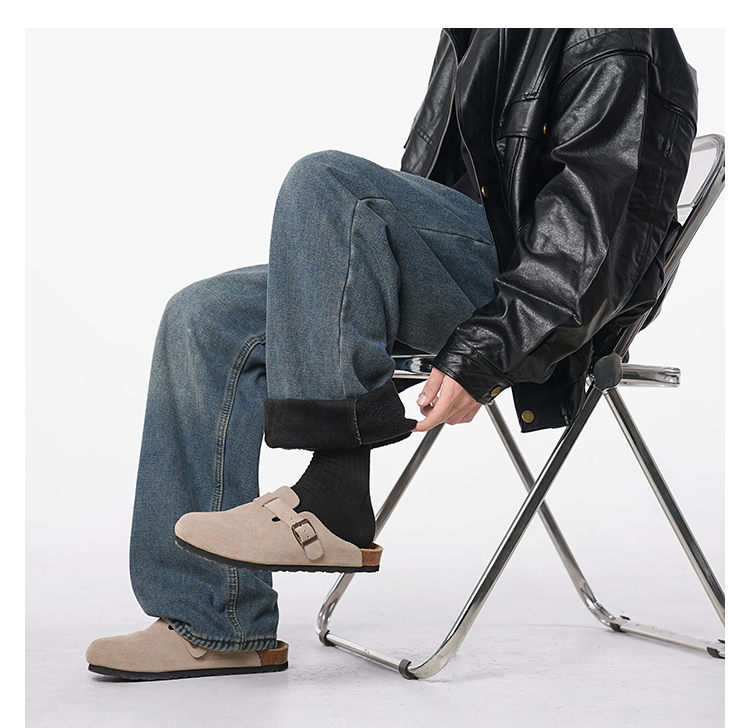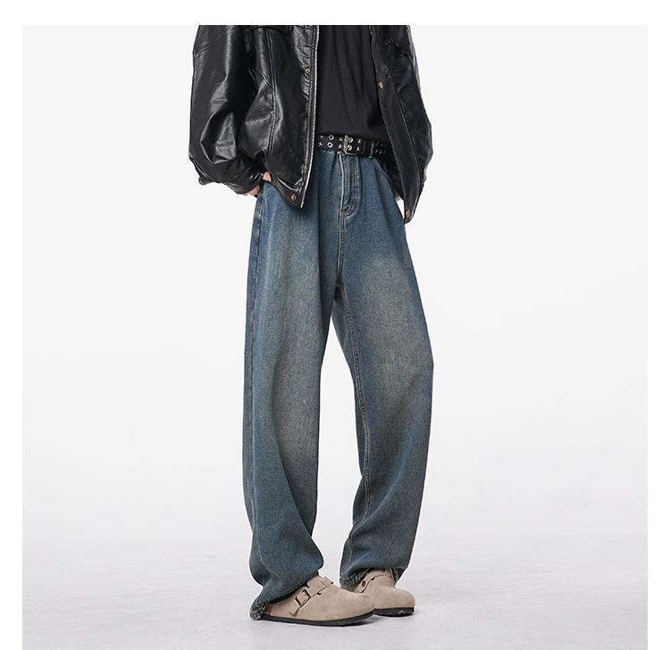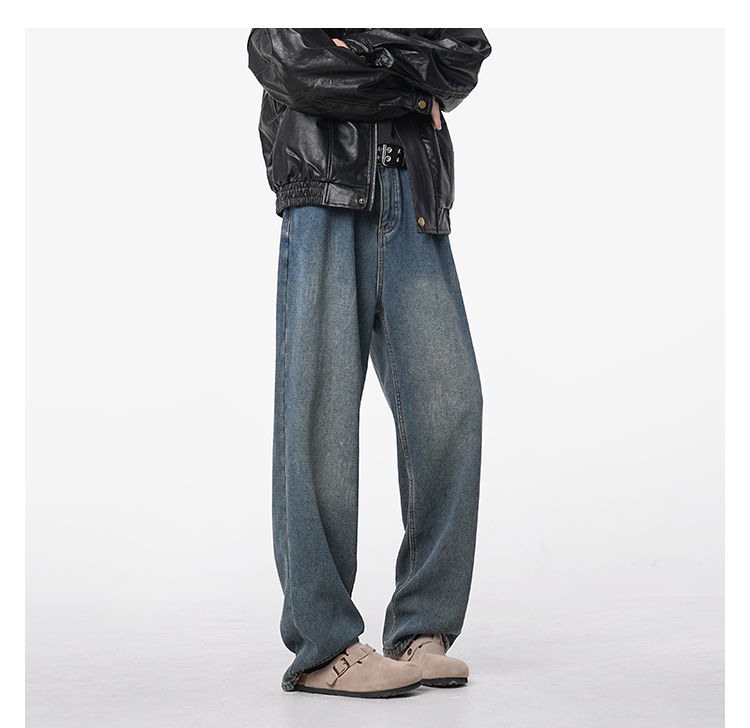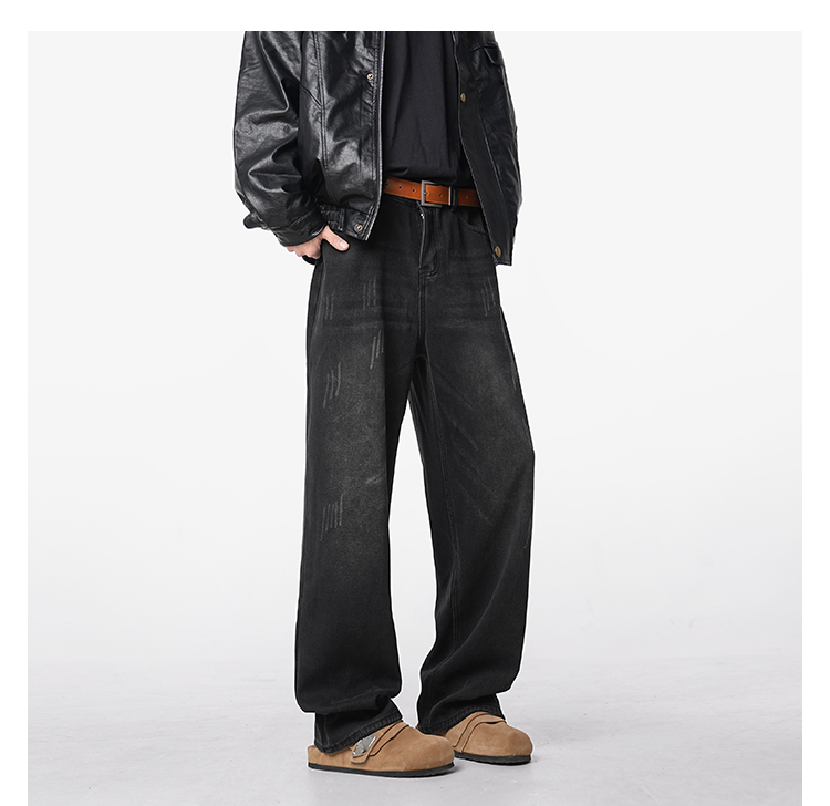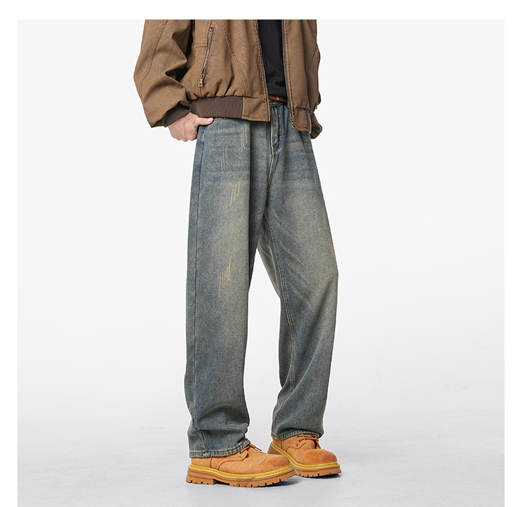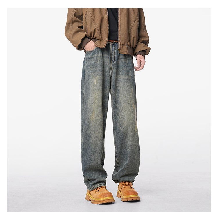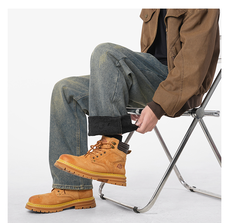 [Ao Ruipeng Endorsement] Geniolamode American Retro Fleece-Lined Jeans for Men, New Autumn Straight-Leg Pants