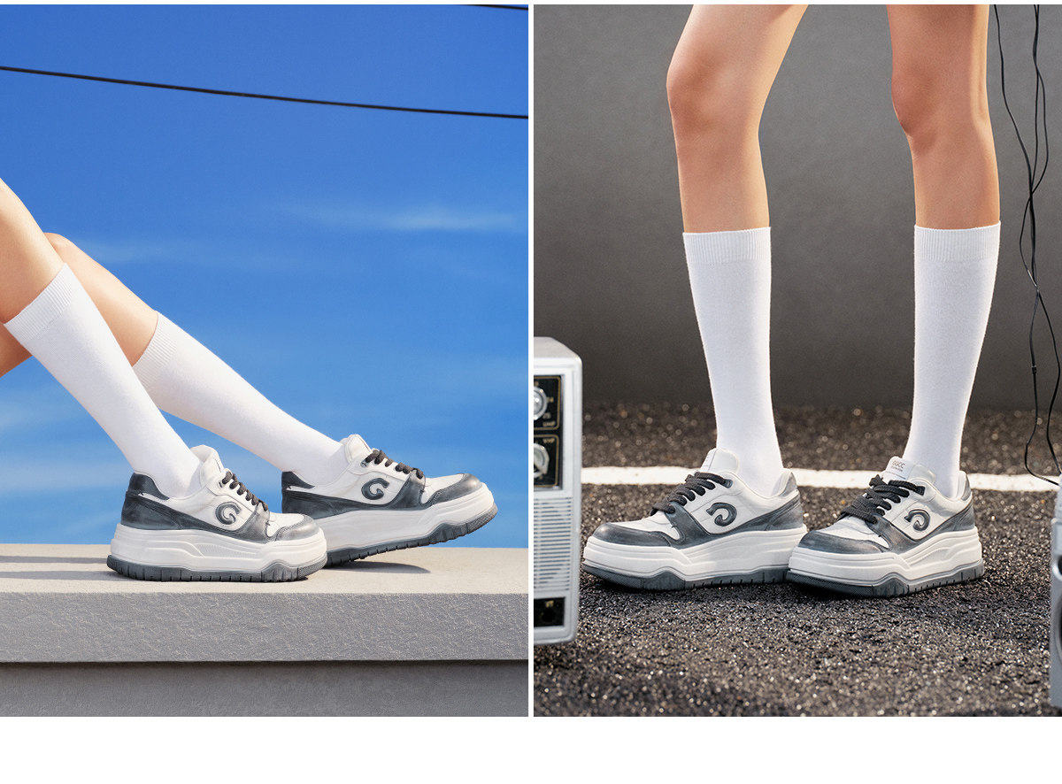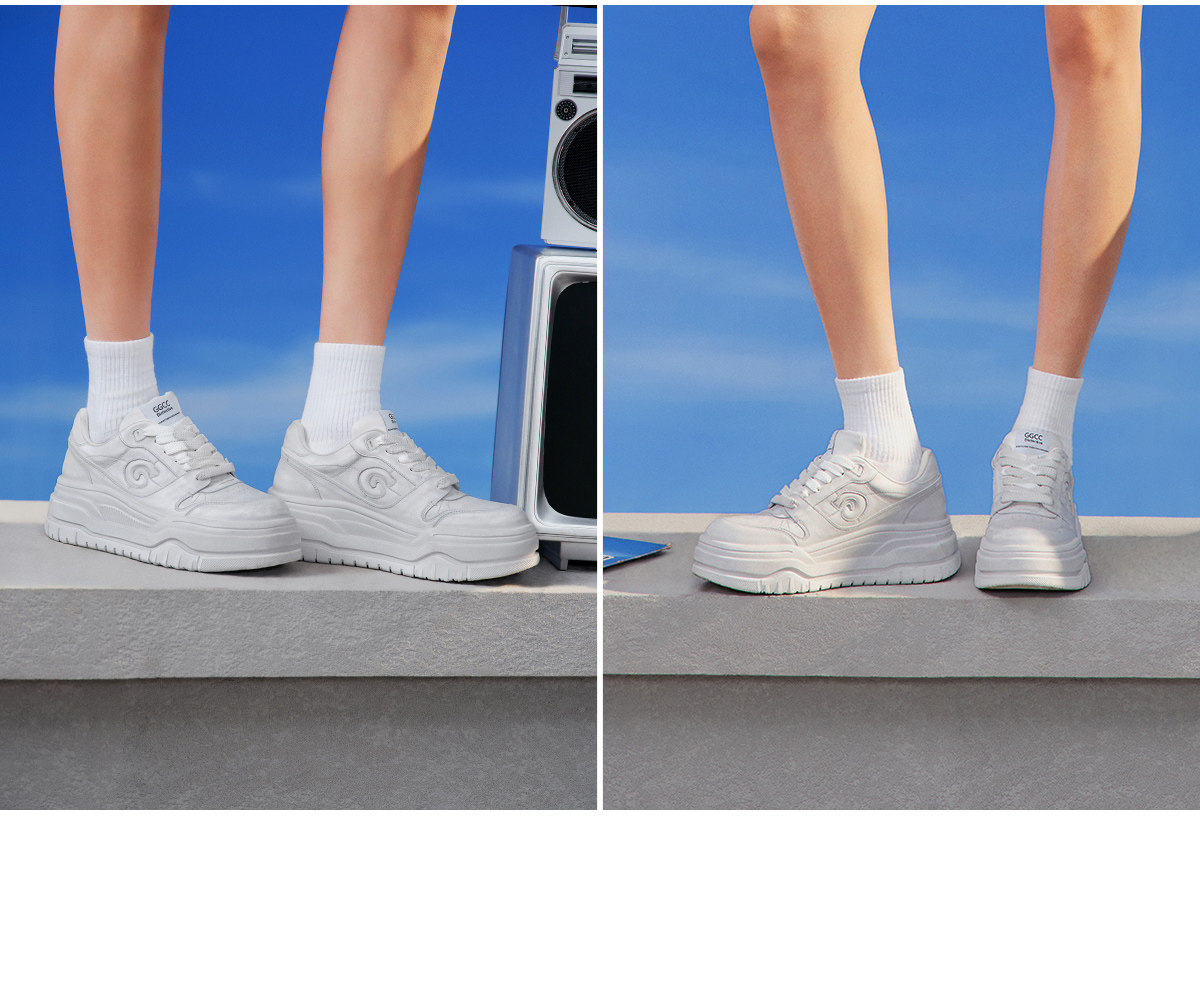 [Same Style as Ju Jingyi] Ggcc City Agent Spring New Thick-Soled Sneakers for Women, Vintage-Style Height-Increasing White Shoes