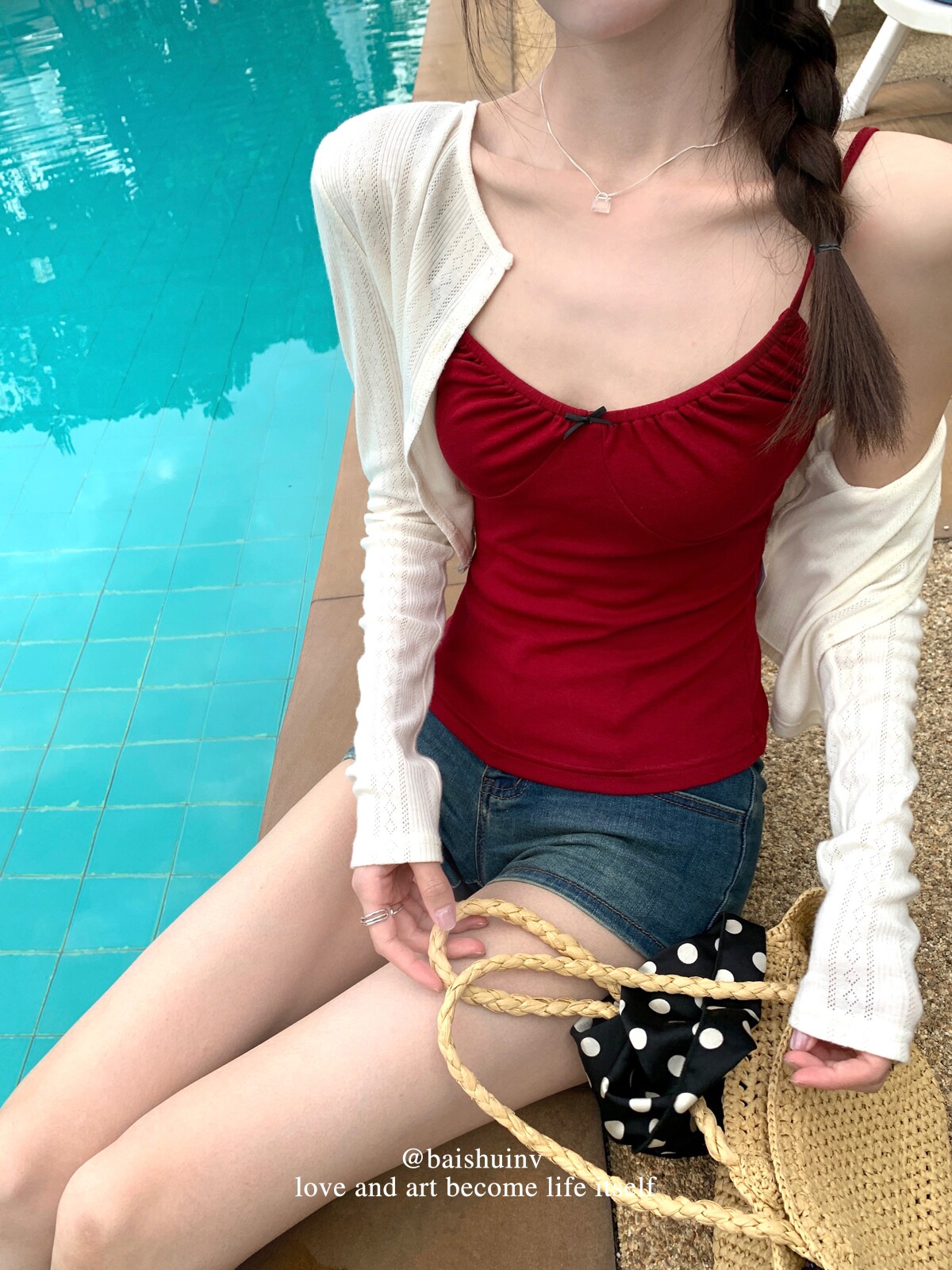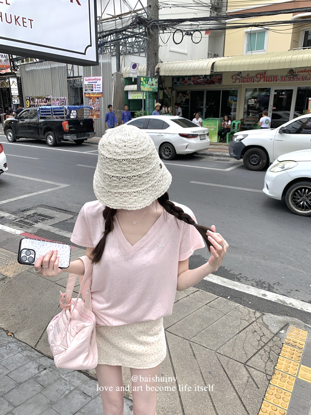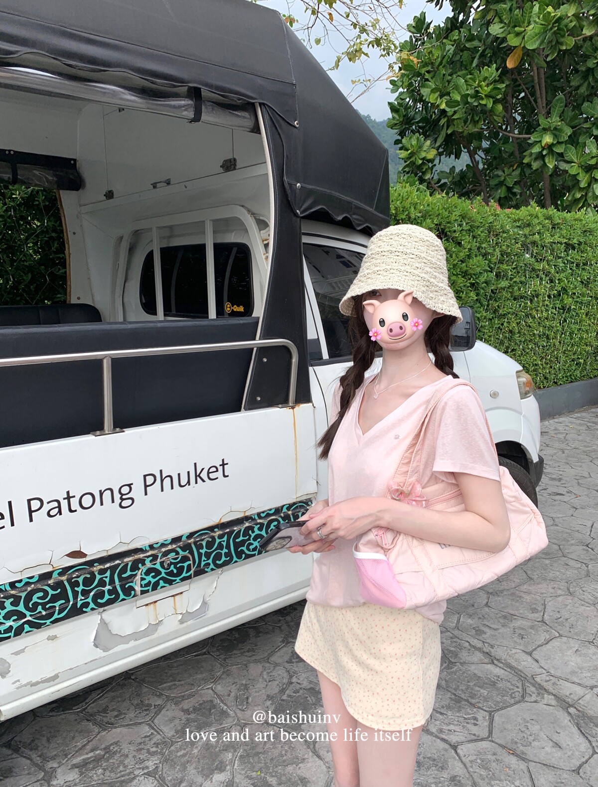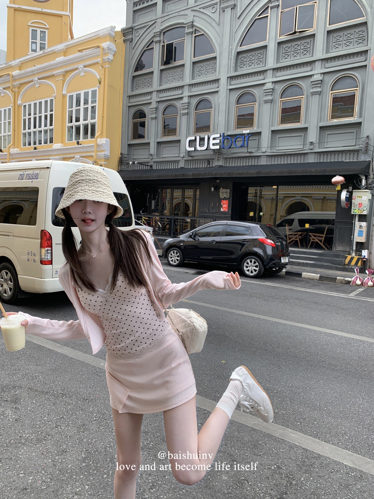 White Water Girl Pampering Style Round Neck T-Shirt V-Neck Camisole Women's Spring A-Line Skirt Slim Fit Pure Desire Set