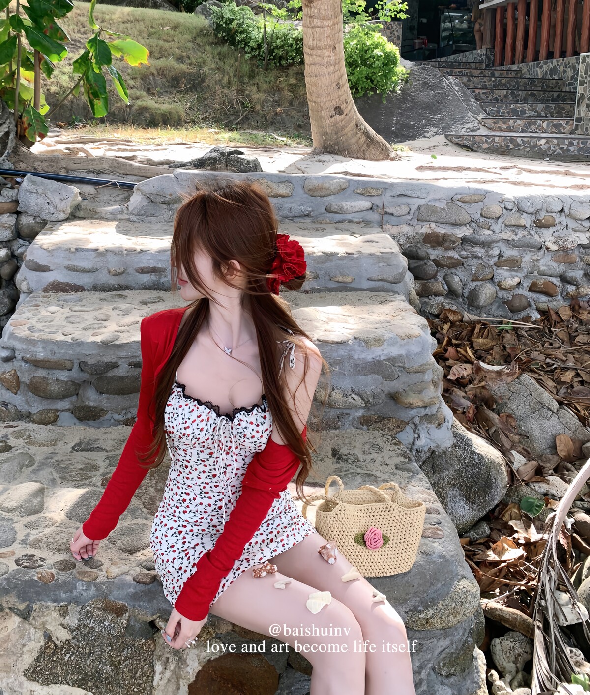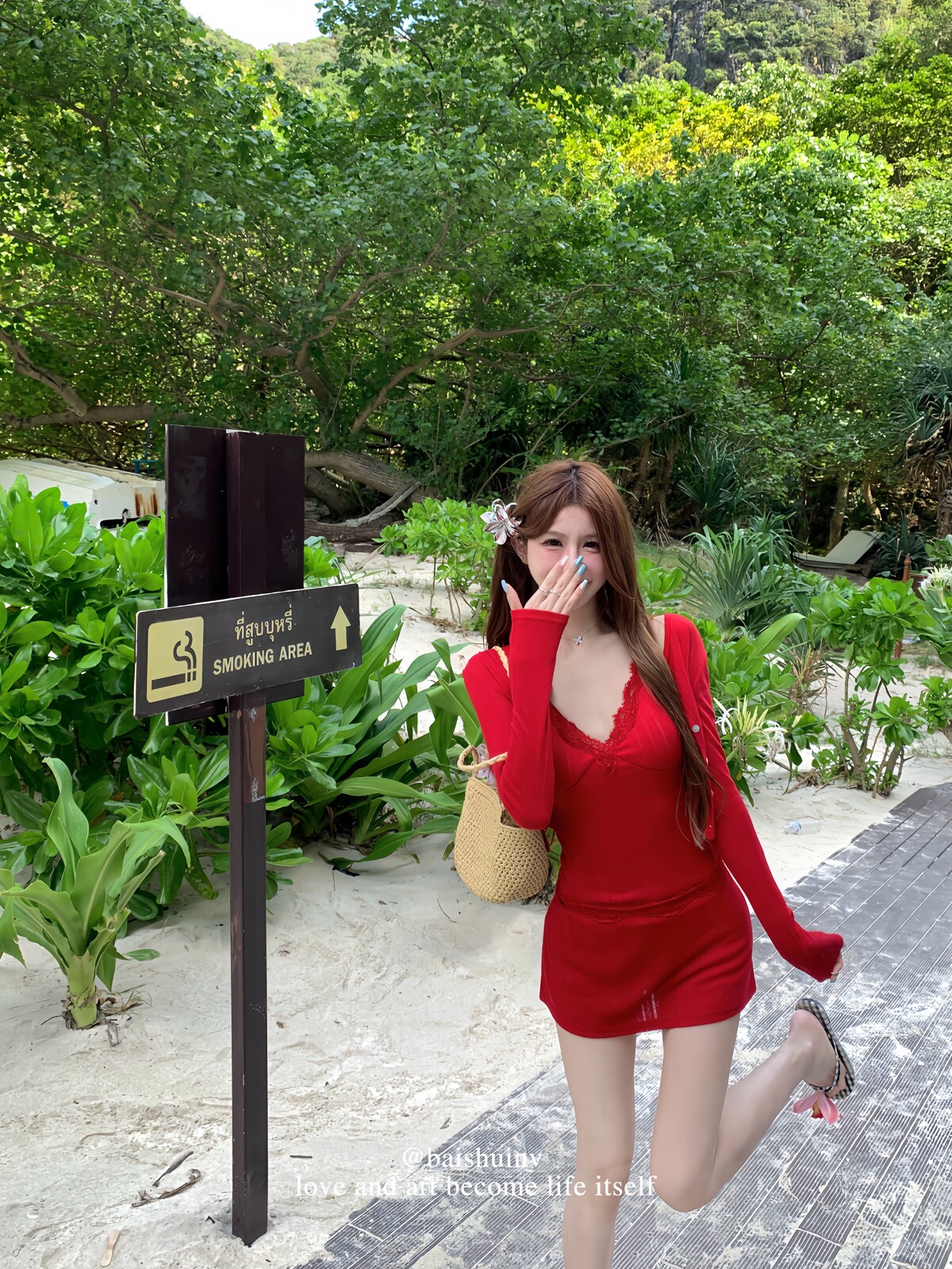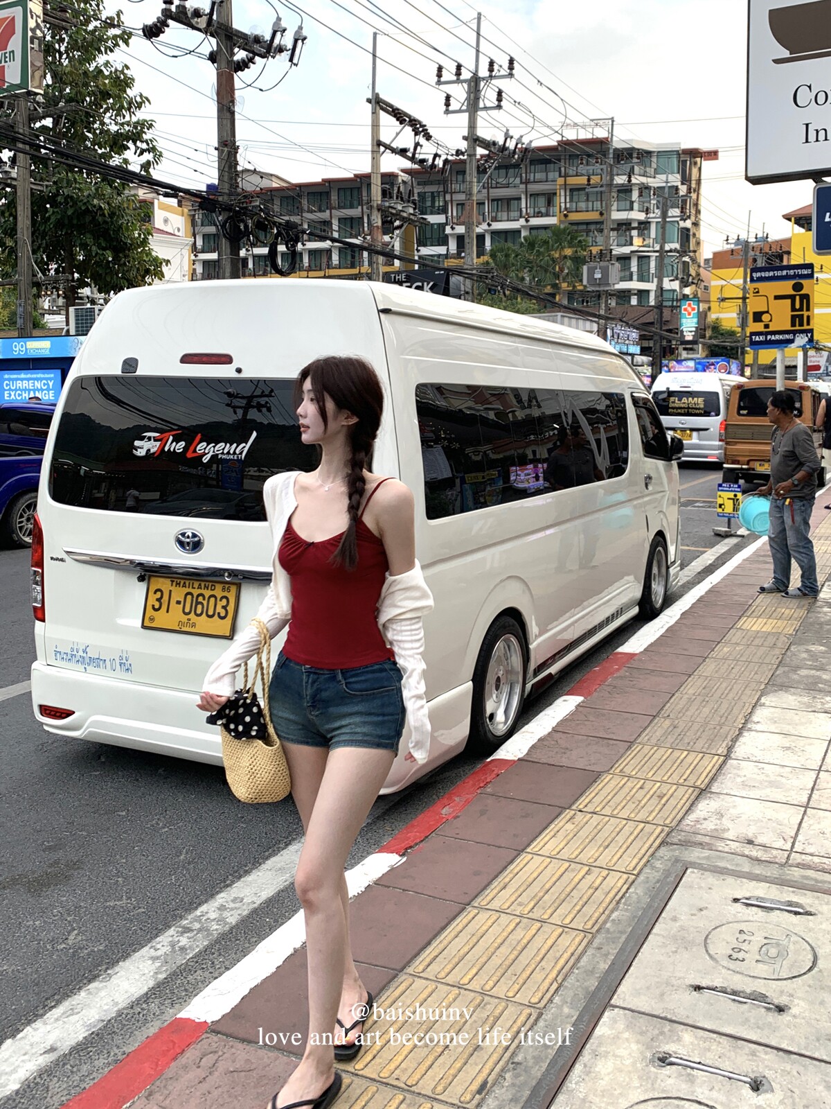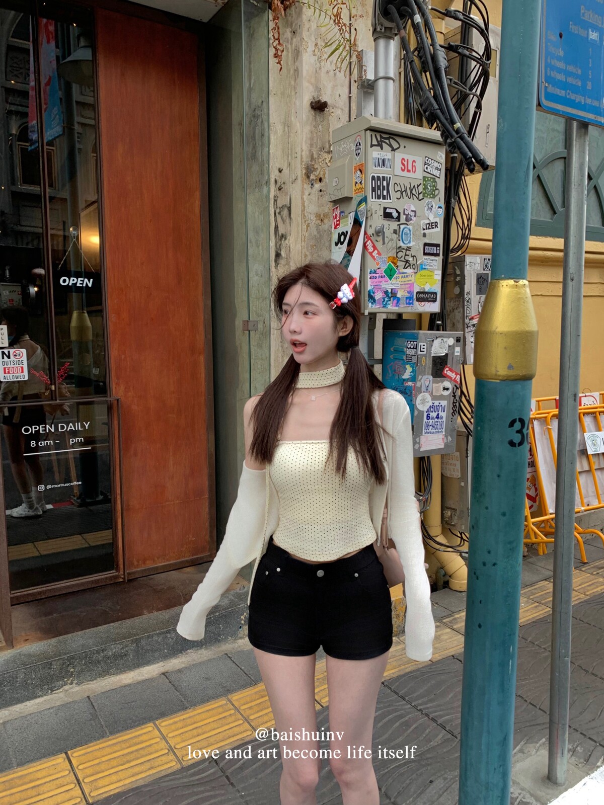 White Water Girl Pampering Style Round Neck T-Shirt V-Neck Camisole Women's Spring A-Line Skirt Slim Fit Pure Desire Set