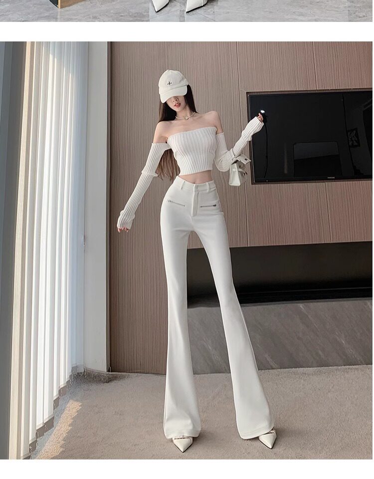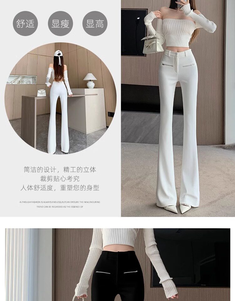 White Flared Pants for Women, Spring and Autumn 2026 New Style, High-Waisted, Slimming, Drapey, High-End, Elegant, Suit-Style Flared Pants, Casual Pants