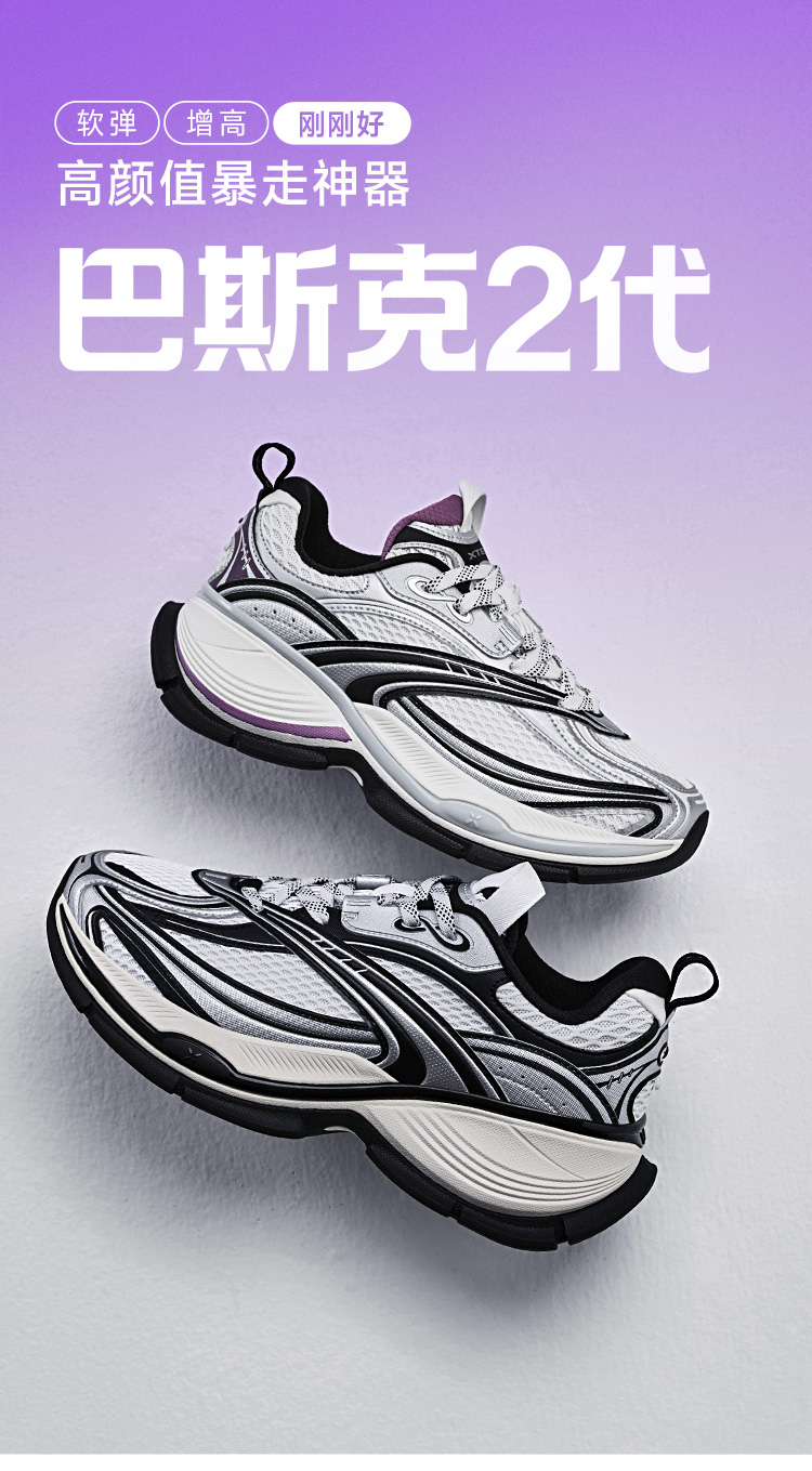 Wang Hedi's Same Style | Xtep Basque 2 Casual Shoes for Women, Retro Dad Shoes, Height-Increasing Sneakers, Men's Shoes, Cotton Shoes