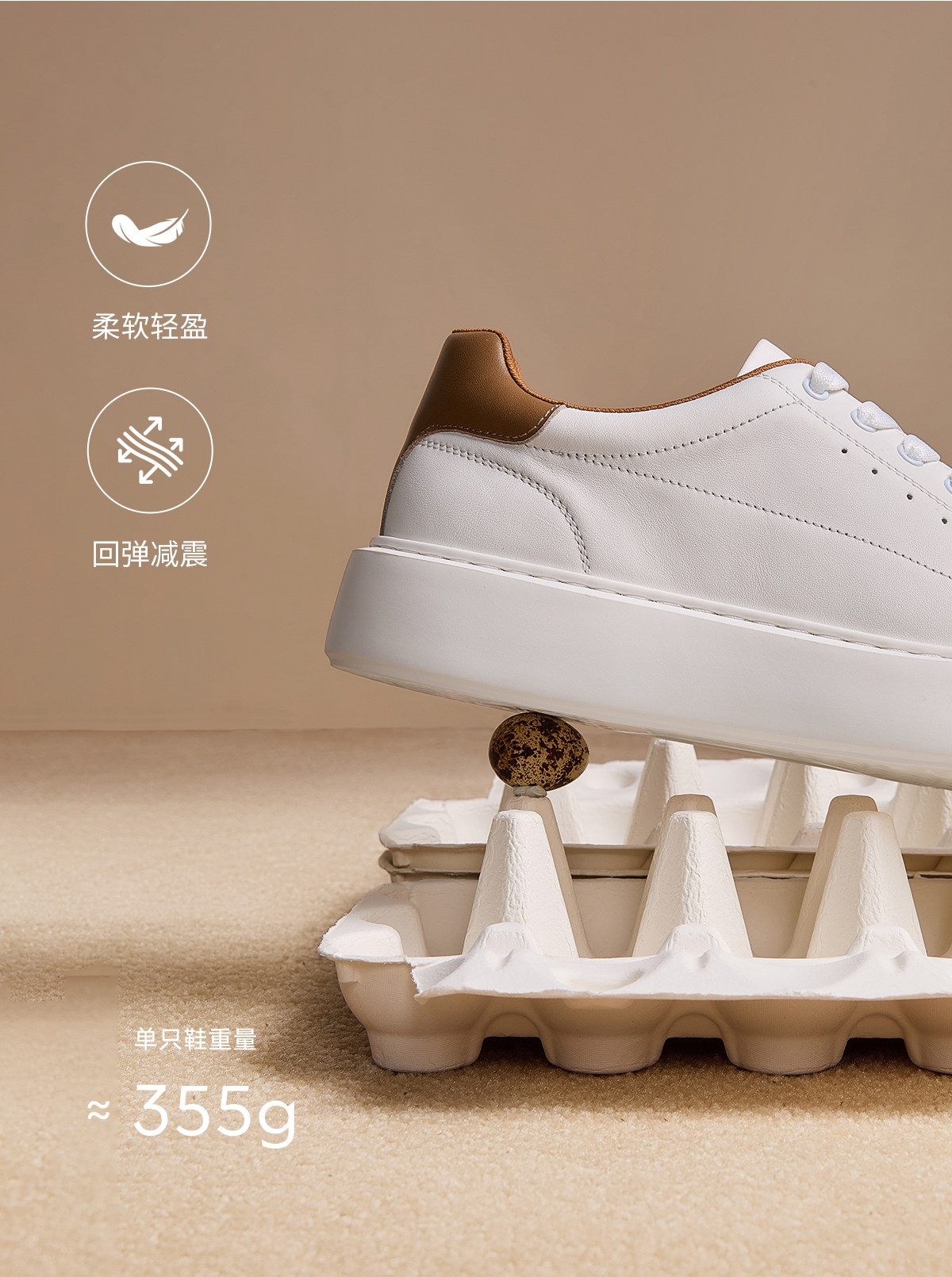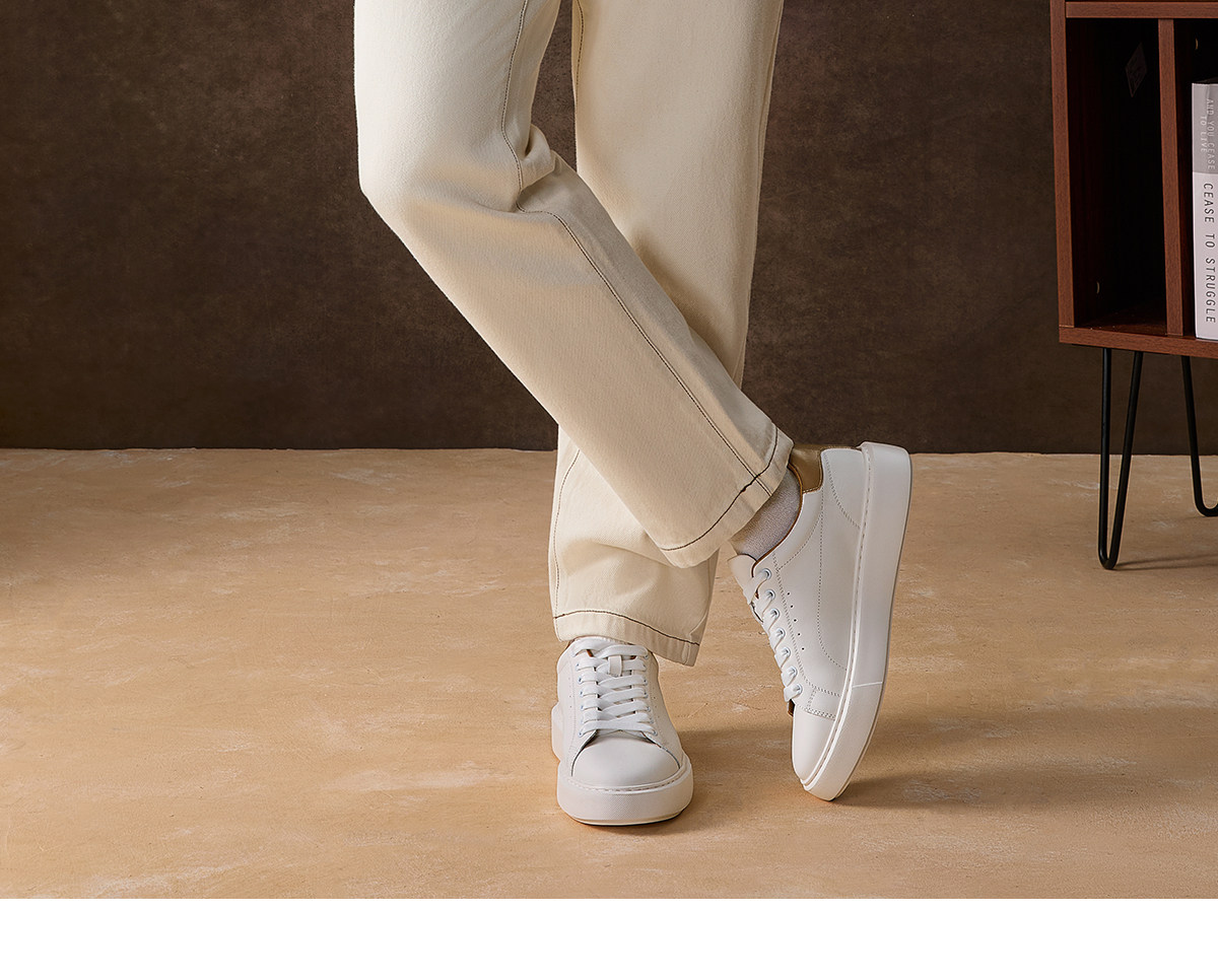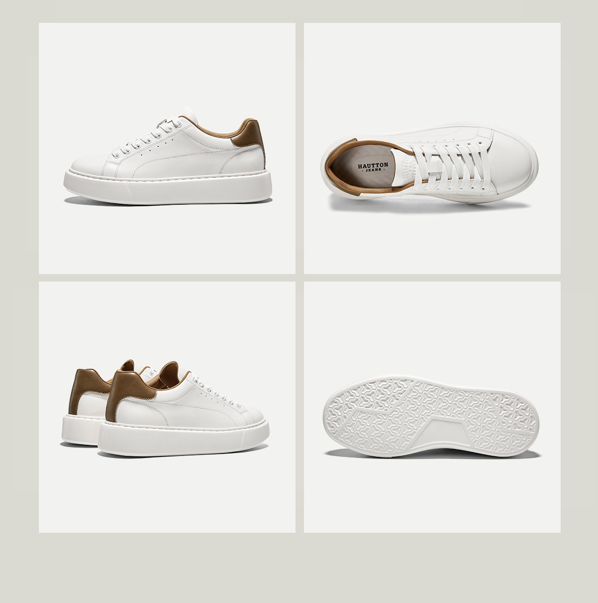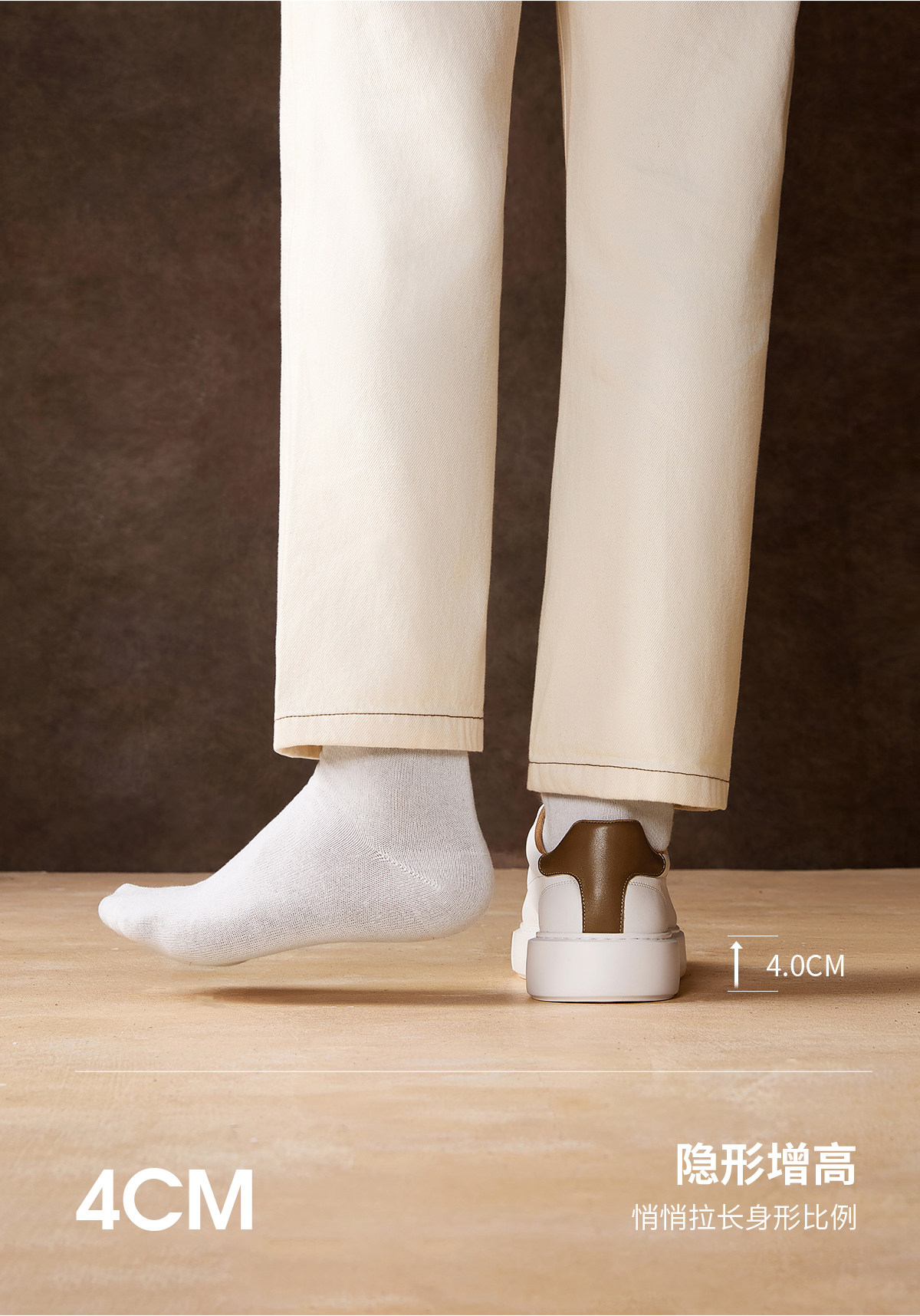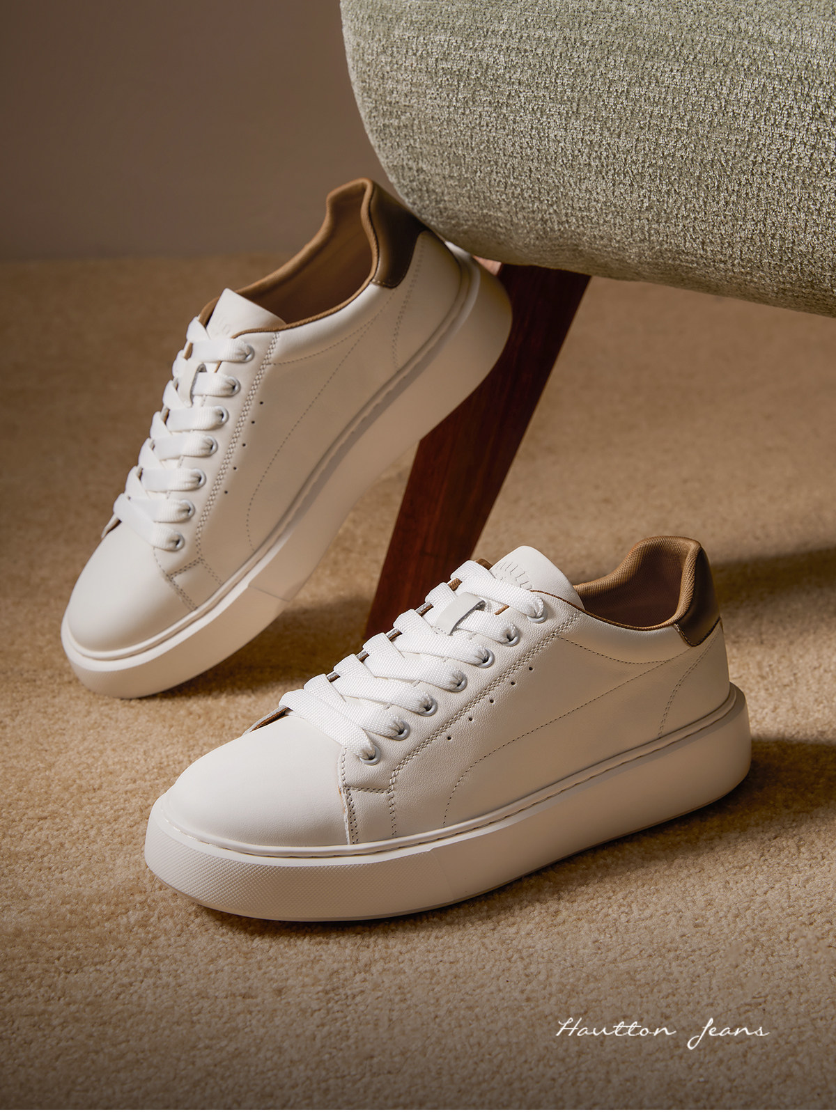 [Same Style as Jia Nailiang] Hauttonjeans Thick-Soled White Shoes for Men, Genuine Leather White Sneakers, Men's Casual Shoes