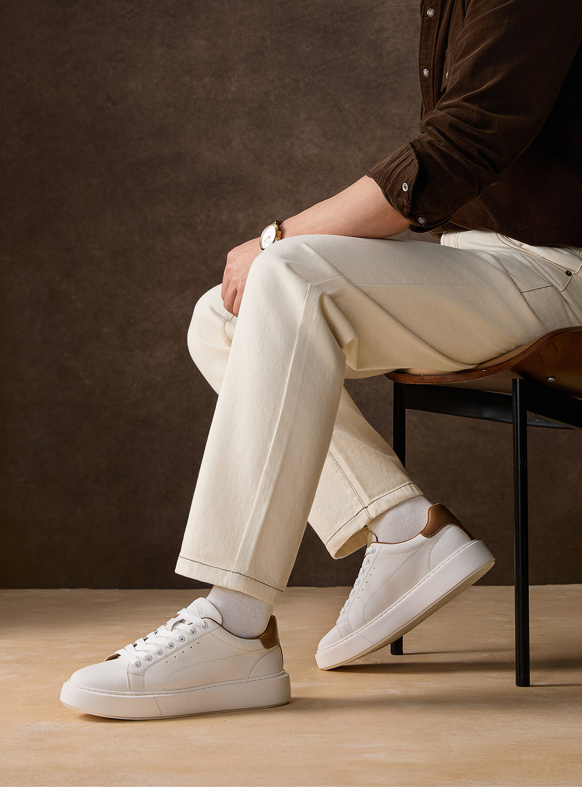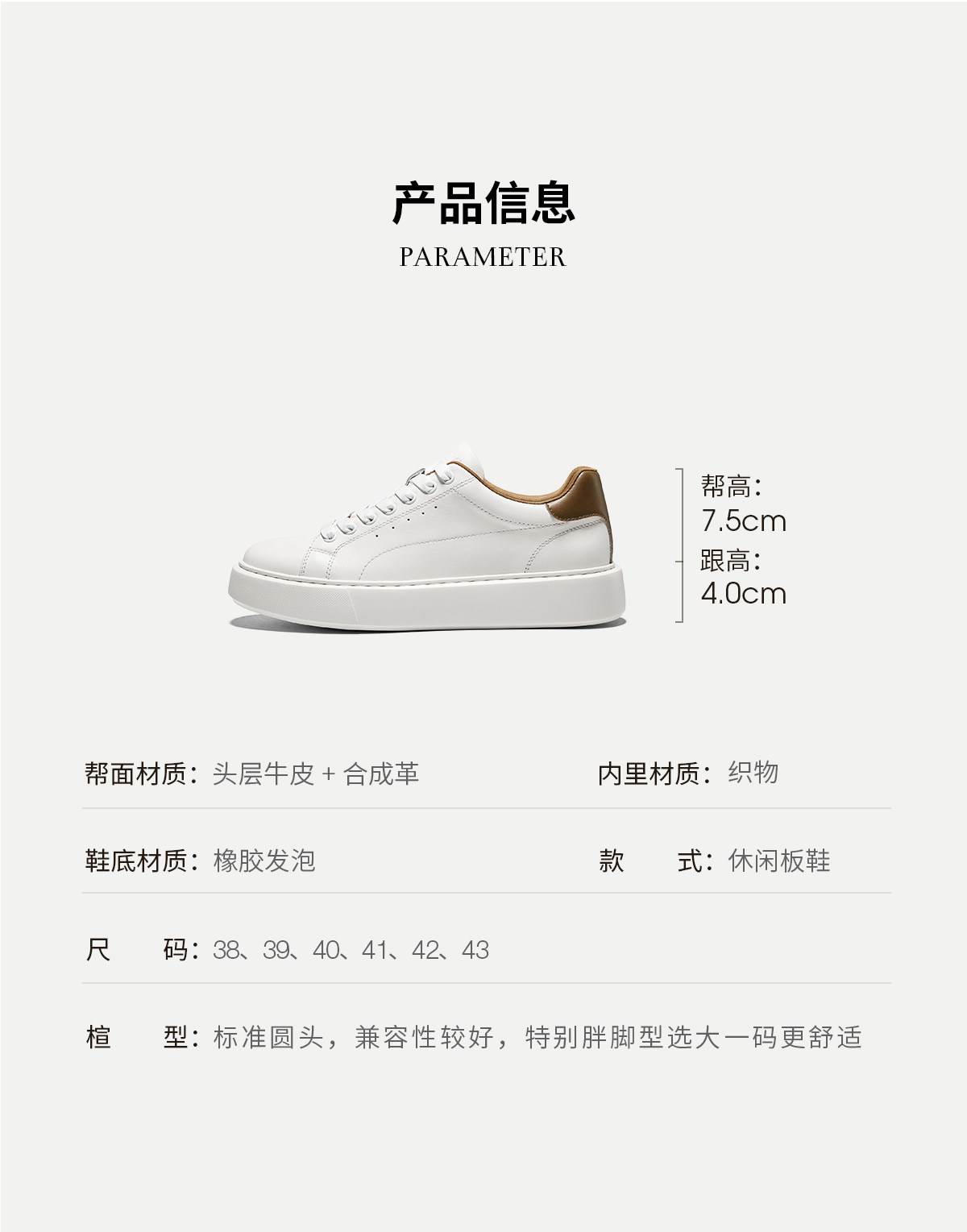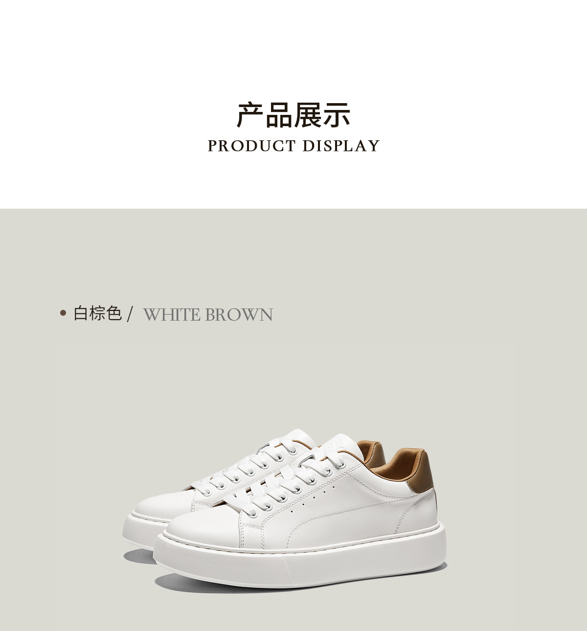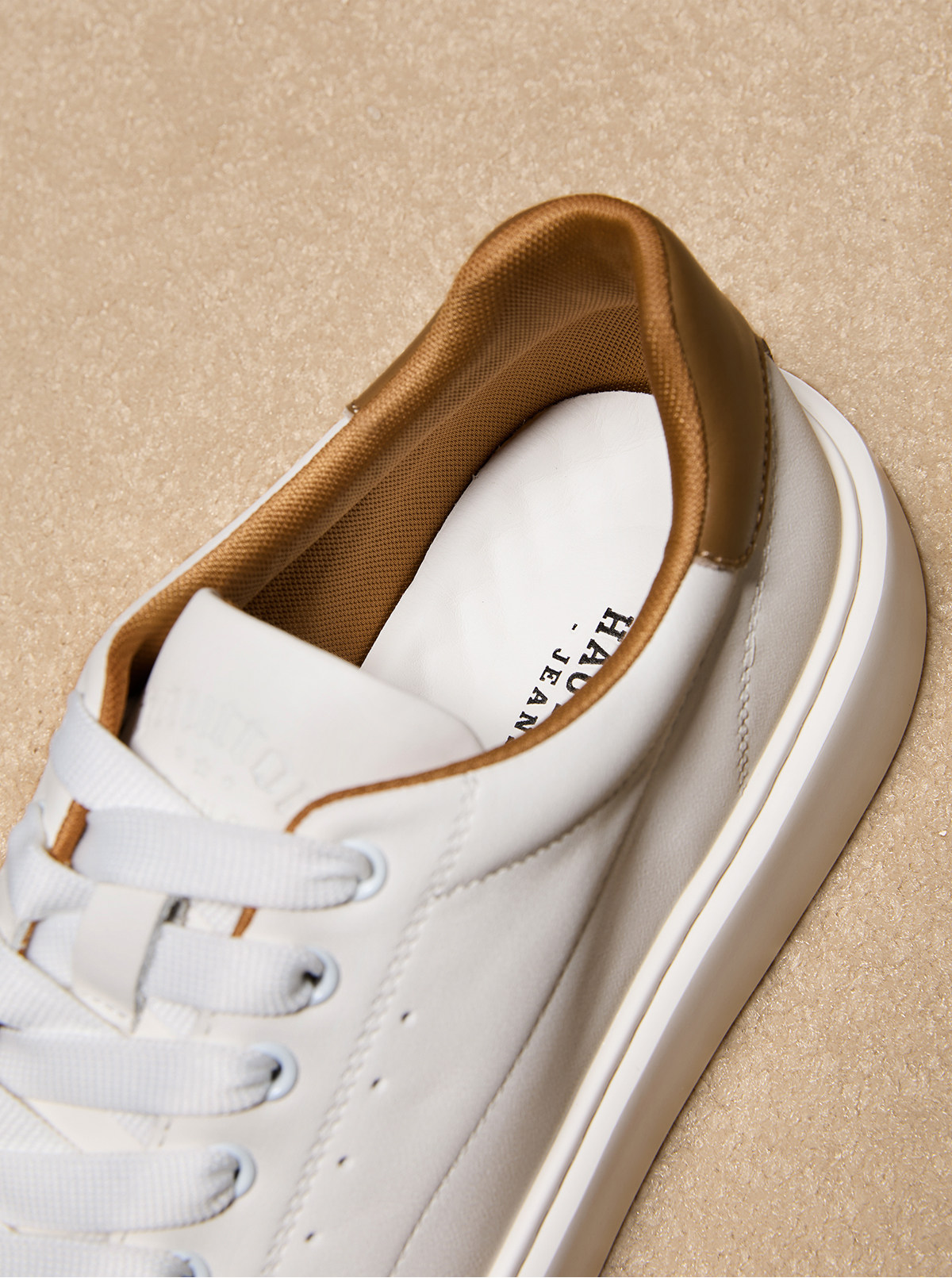 [Same Style as Jia Nailiang] Hauttonjeans Thick-Soled White Shoes for Men, Genuine Leather White Sneakers, Men's Casual Shoes