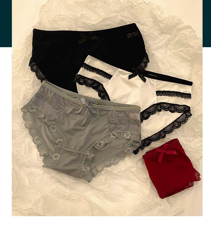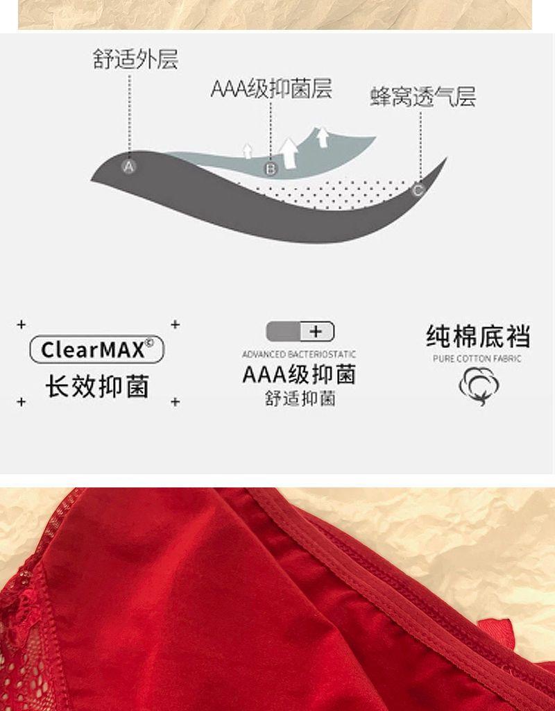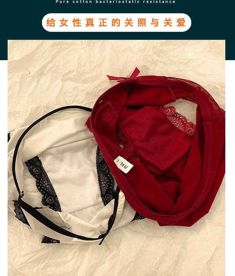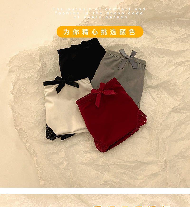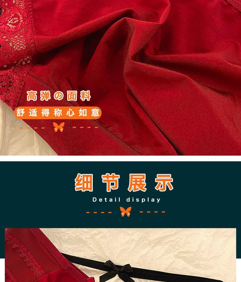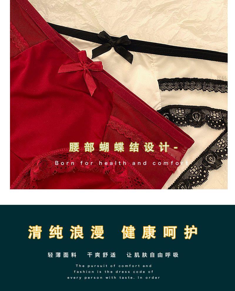 Pure Desire Seamless Red Ice Silk Sexy Lace Low-Waist Tempting Panties Triangle Briefs for Girls with Bow for Their Zodiac Year