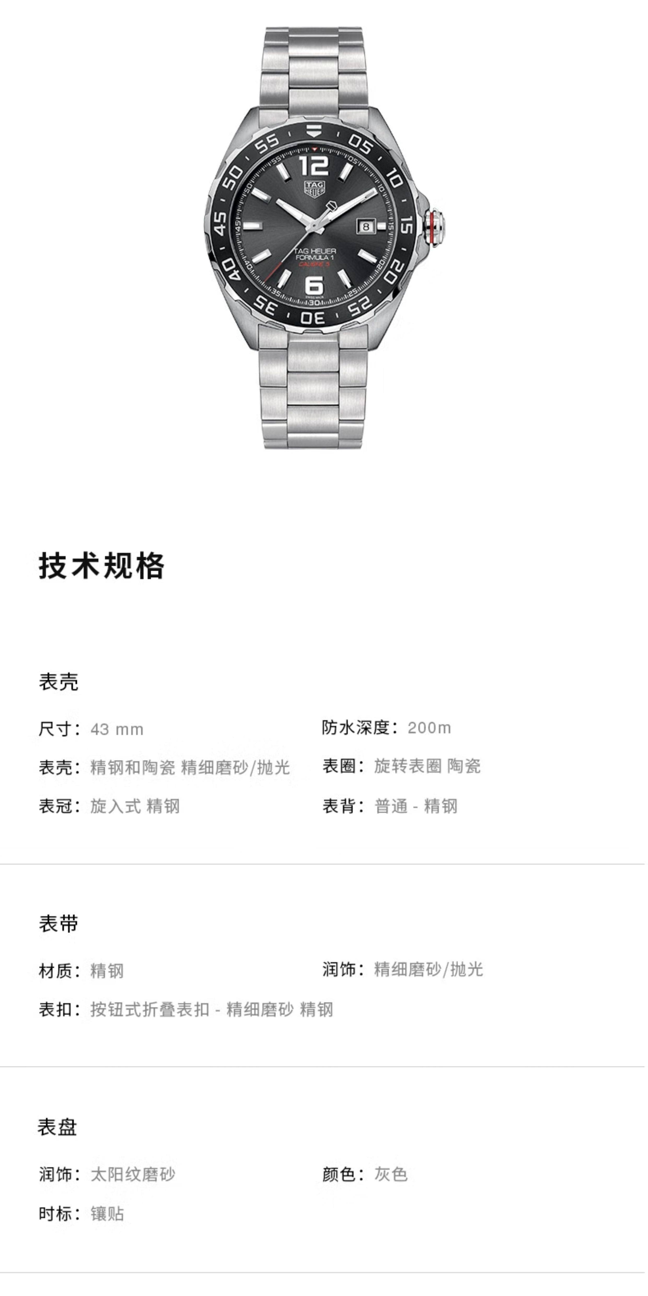 Tag Heuer Swiss Watch F1 Quartz Watch Steel Strap Men's Watch