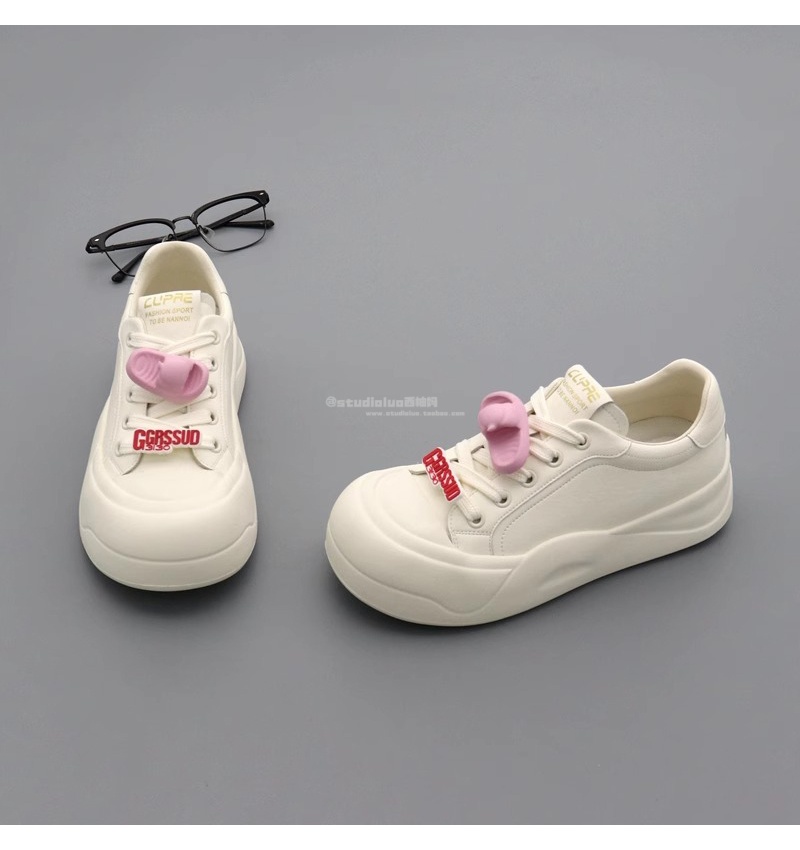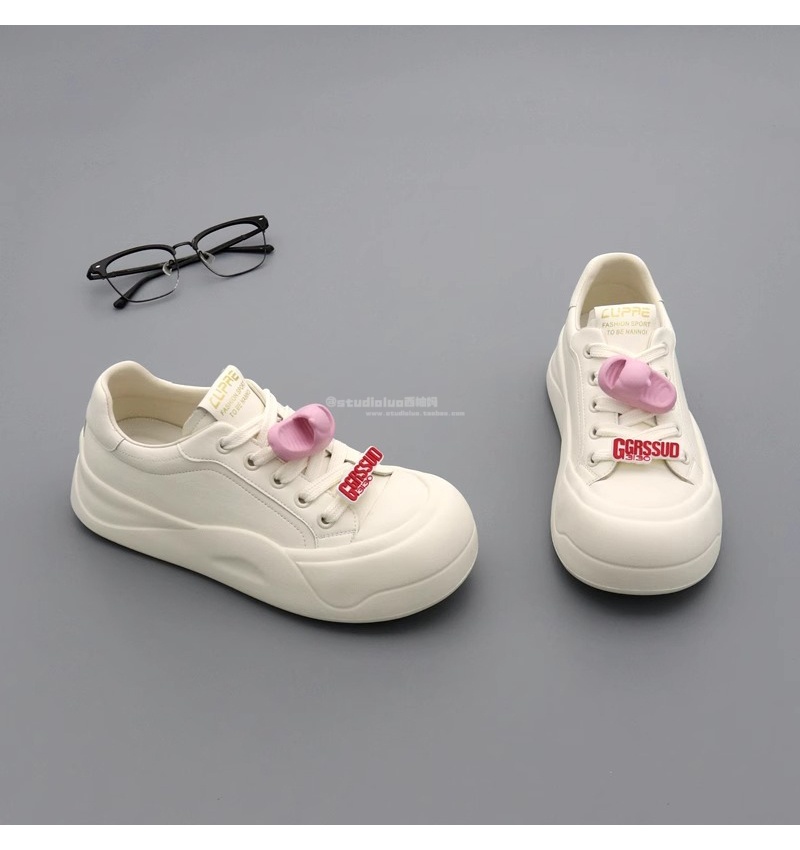 Hong Kong Thick-Soled White Sneakers for Women 2025 Spring and Autumn New Style Petite Versatile Casual Sports Shoes Ugly-Cute Platform Shoes