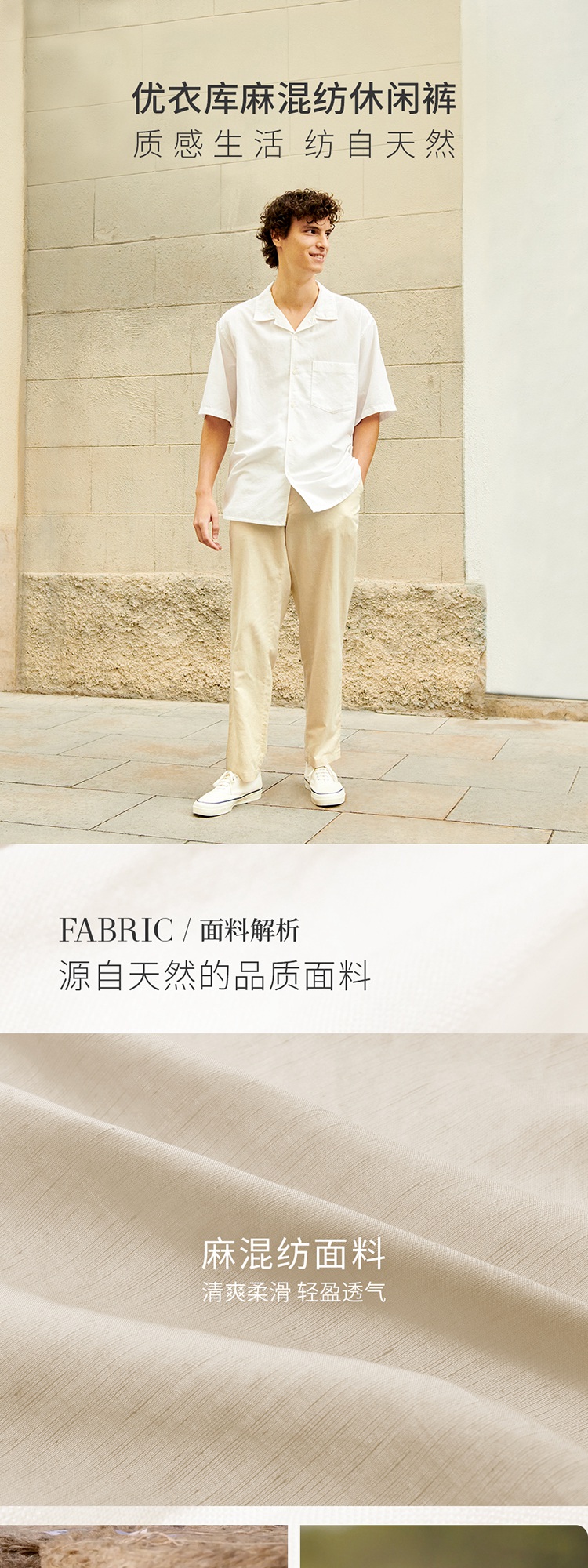 UNIQLO men and women cotton and linen blend casual pants/pants Loose Straight-leg pants 470598