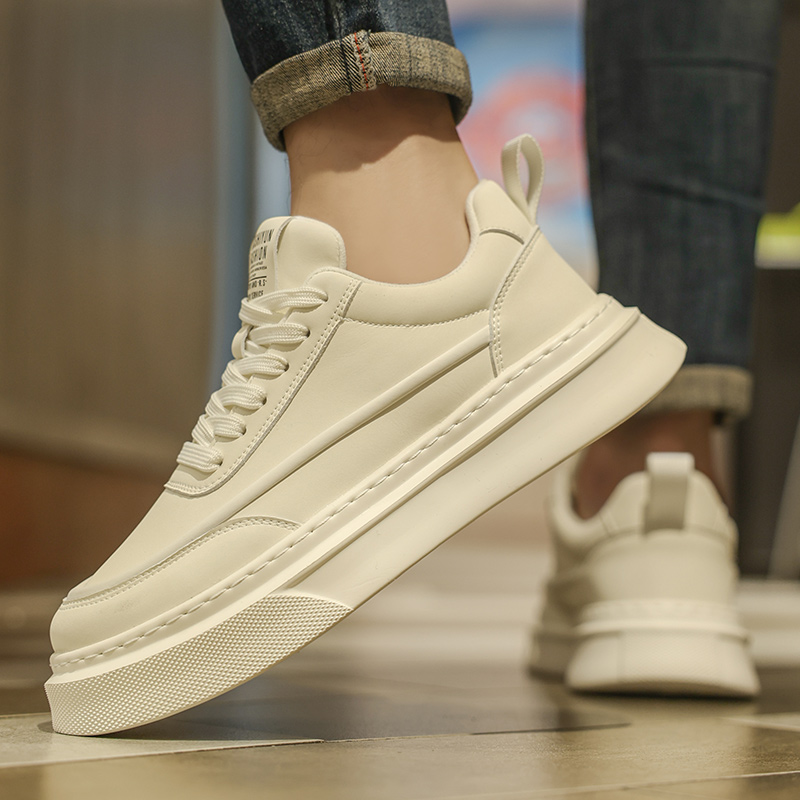 European Men's Shoes, Winter Casual Thick-Soled Young Men's Leather Shoes, Sneakers, High-End Trendy Brand Genuine Leather White Sneakers