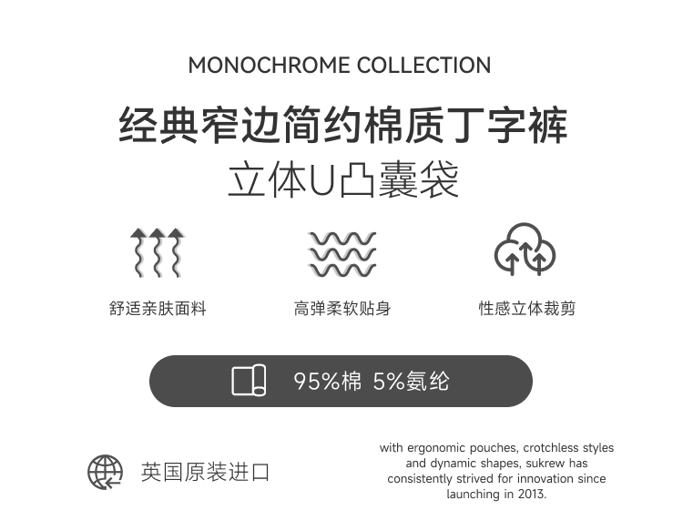 Sukrew Sexy Men's Thong Cotton Narrow Edge High Elastic Breathable Stereo U Convex Large Pouch Low Waist Fbh