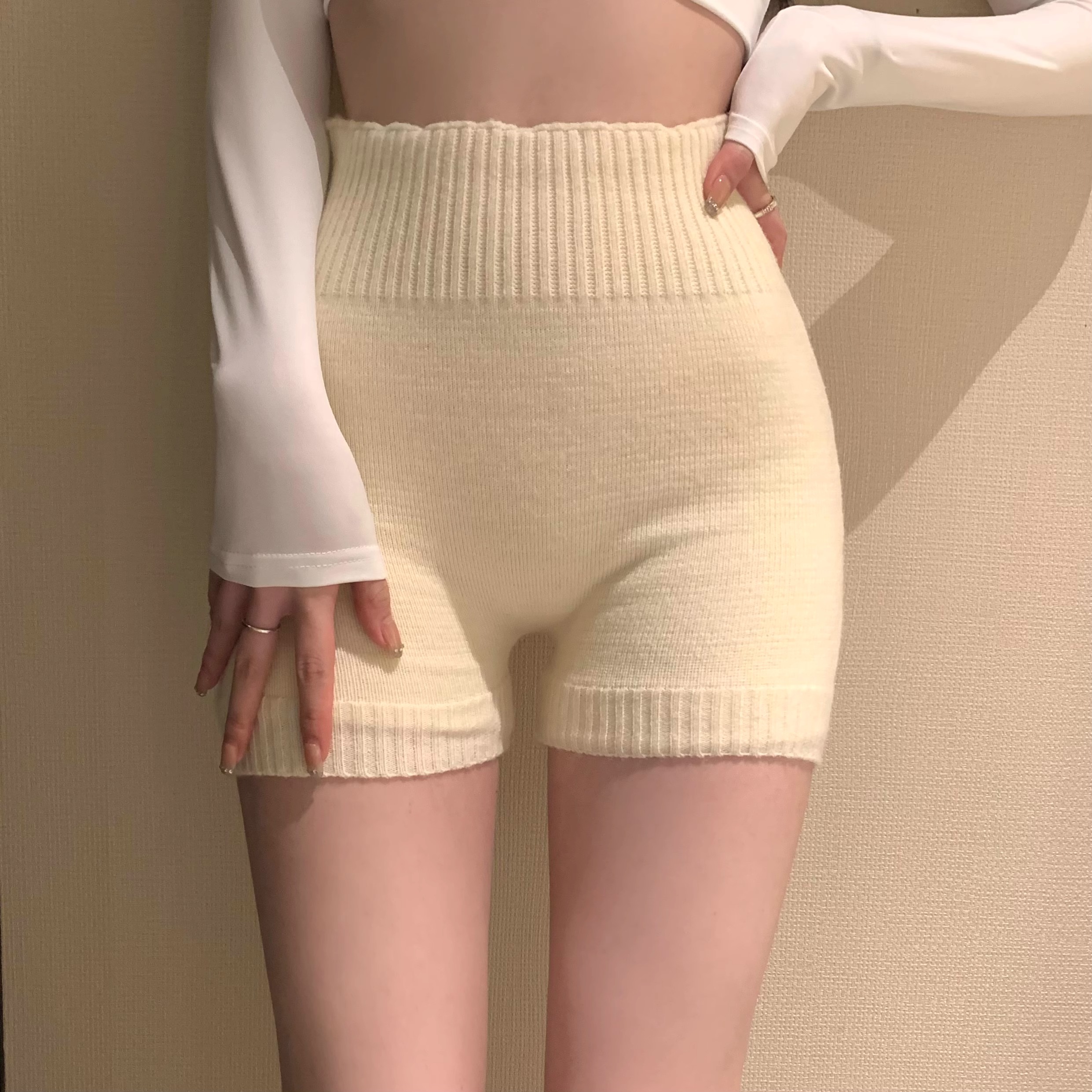 2025 Winter New Korean Style Anti-Exposure Versatile Safety Shorts Warm Knitted High-Waisted Leggings Women's Clothing