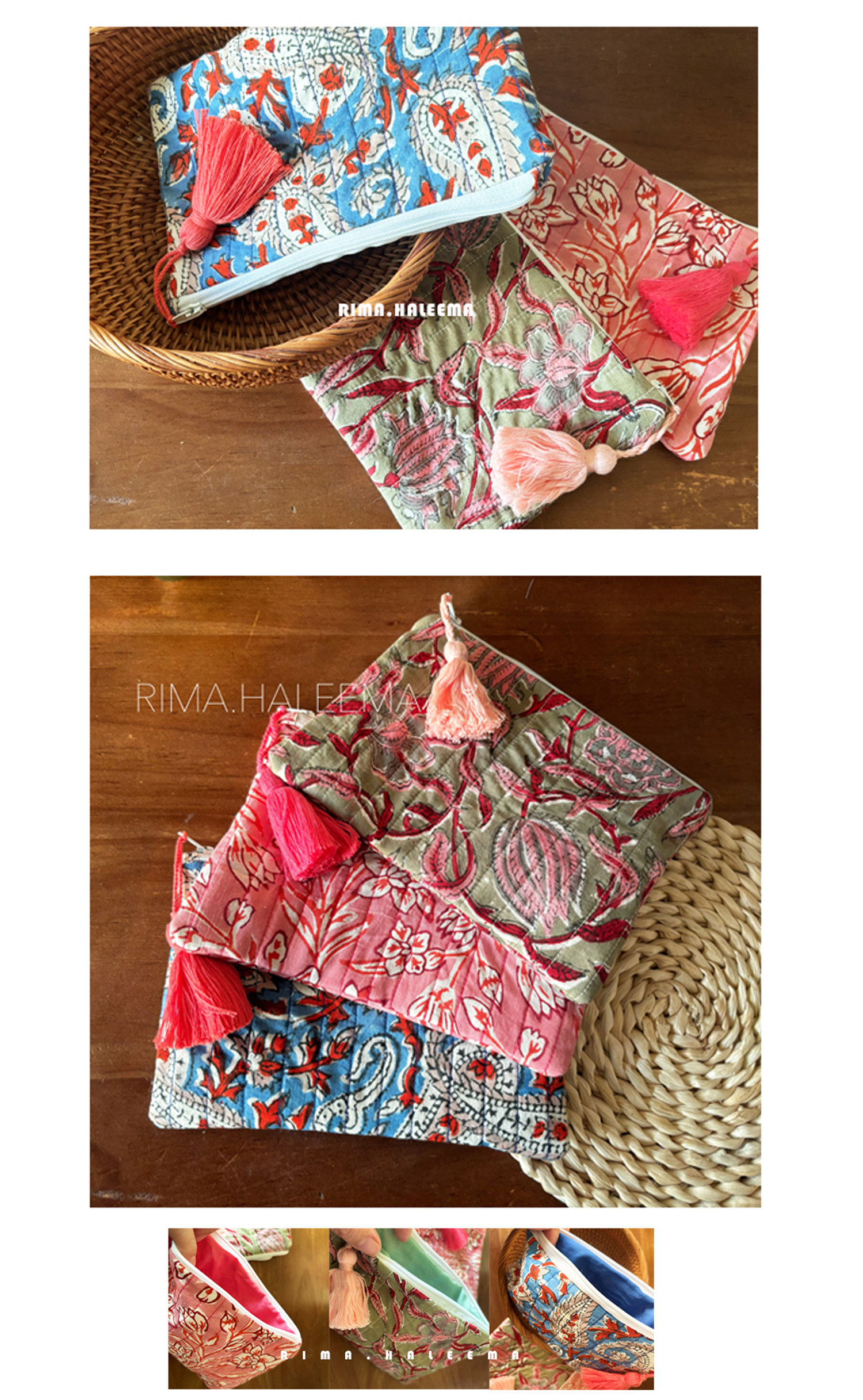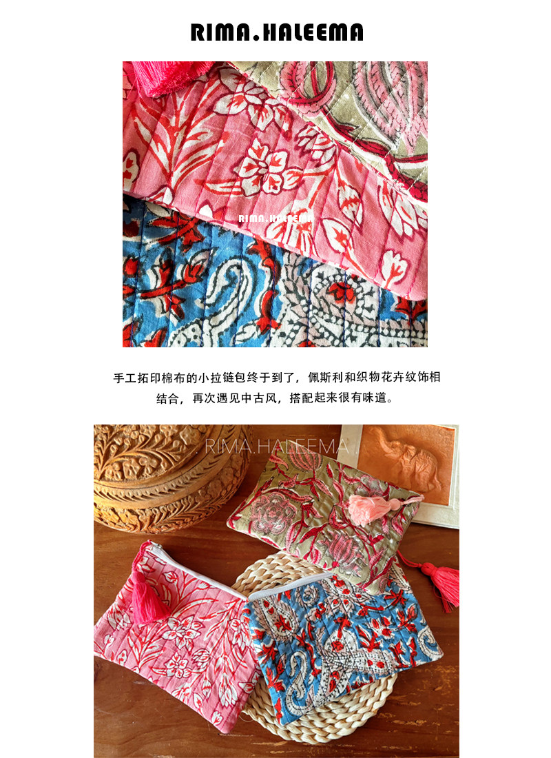 Imported Hand-Printed and Dyed Patterned Cotton Fabric Mini Bag Coin Purse Makeup Bag Card Holder Storage Bag Clutch Bag