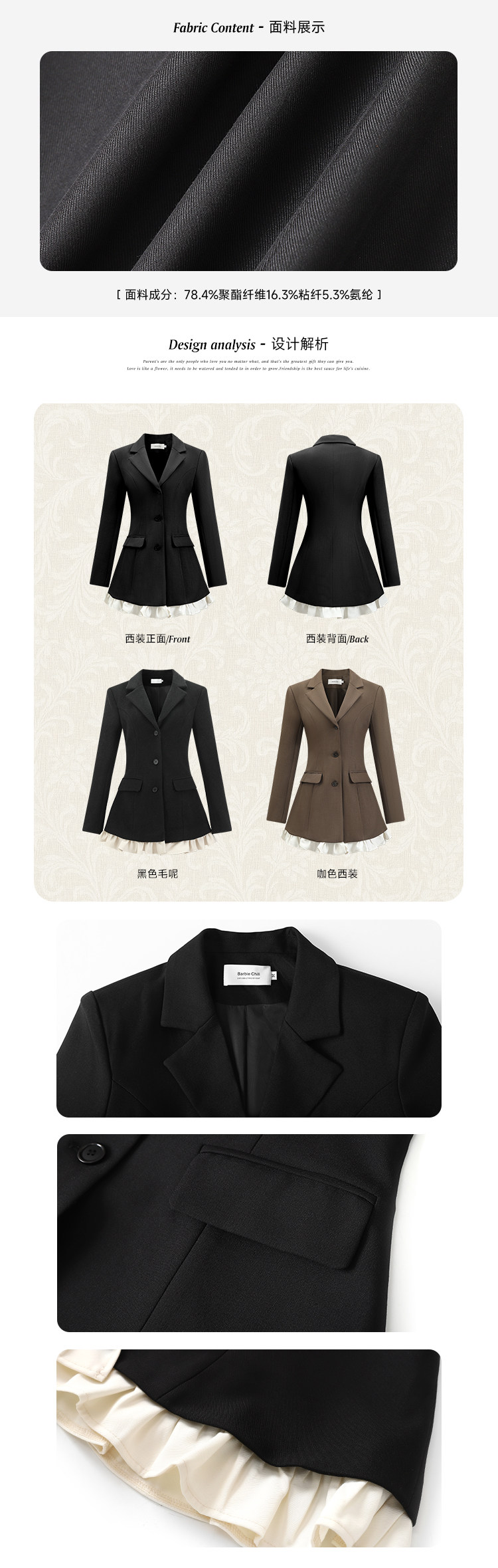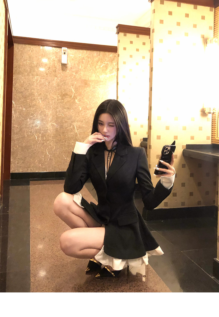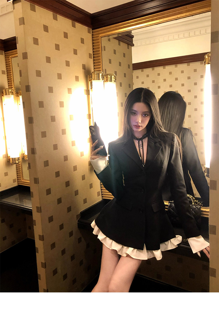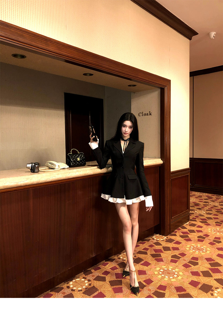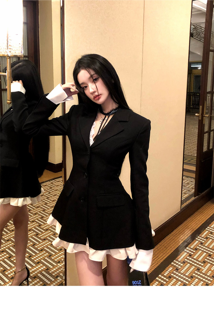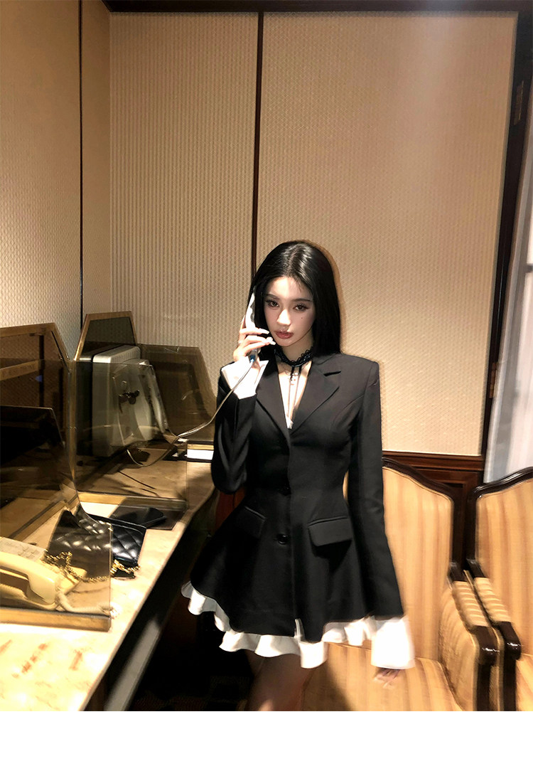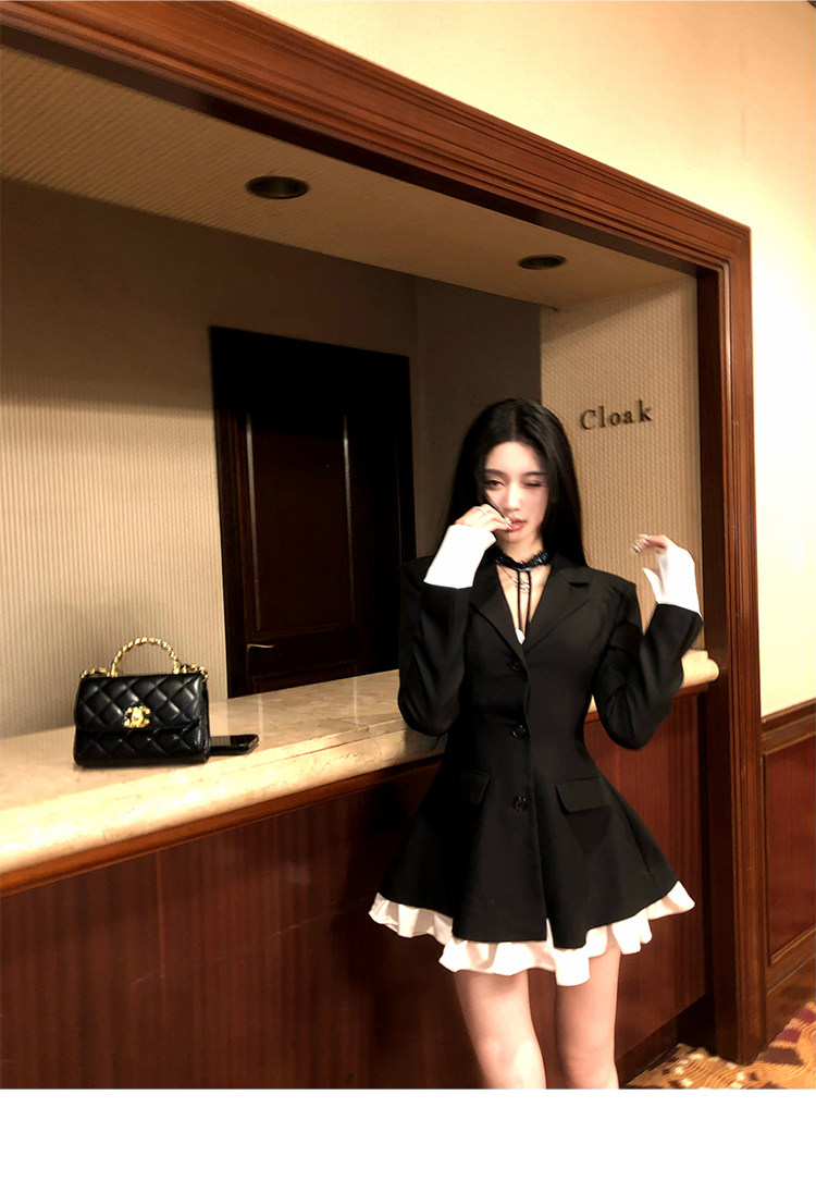 Barb Chill Socialite Style Suit Dress Women's Autumn and Winter Woolen Faux Two-Piece Waist-Cinching Blazer