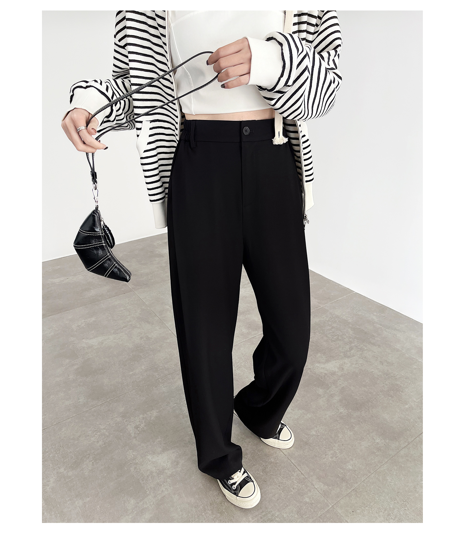 Gray Wide-Leg Pants for Women, Spring and Autumn 2025 New Style, High-Waisted, Drapey, Summer Casual, Stylish Straight-Leg Slim-Fit Suit Pants