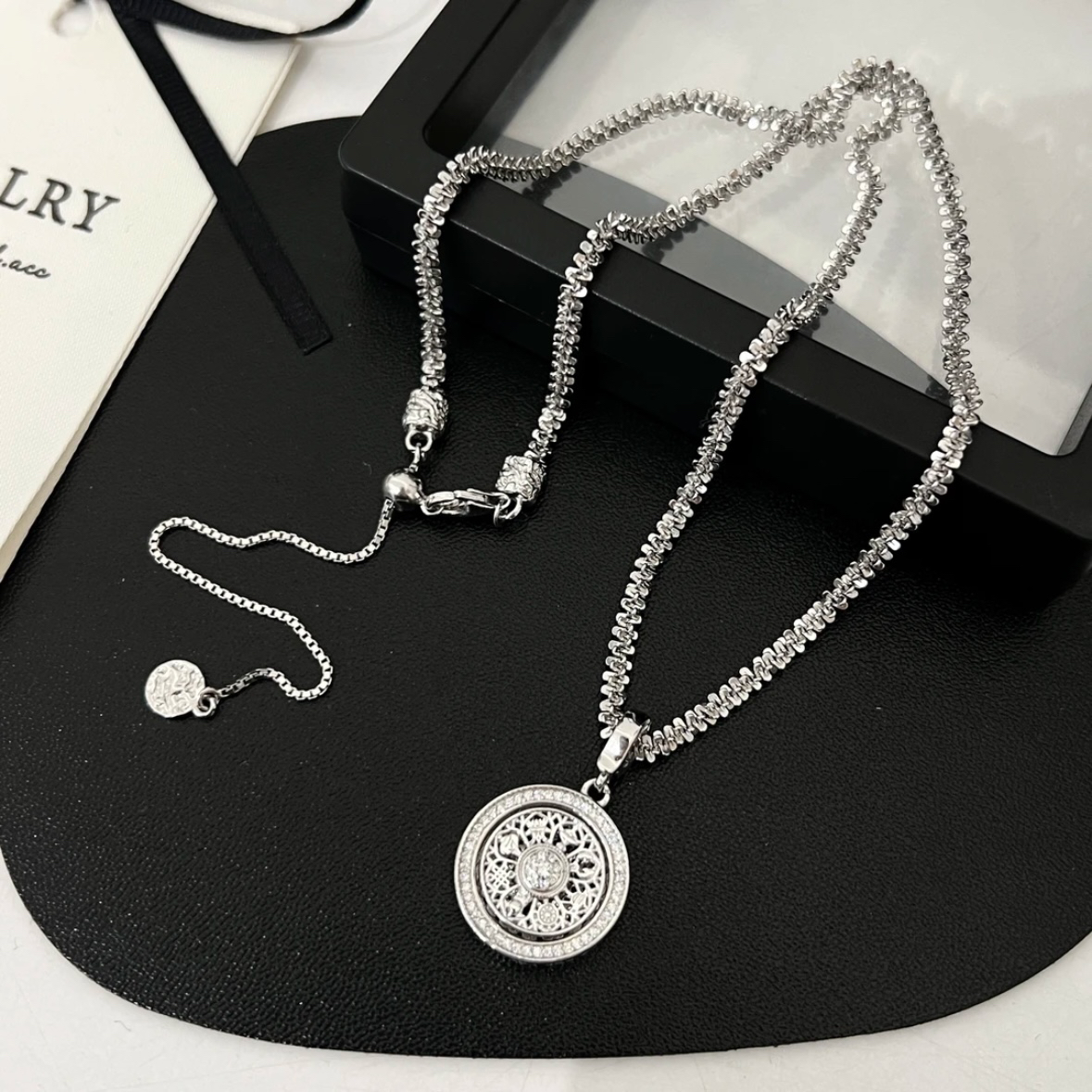 925 Silver Necklace, the Compass of Fortune, Accessible Luxury Zircon Eight-Treasure Compass Necklace, Starry Sky Silver Necklace, 43+8cm