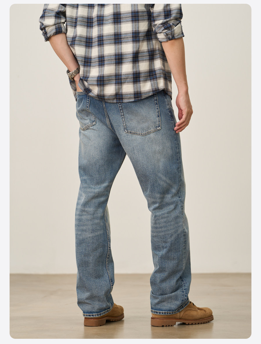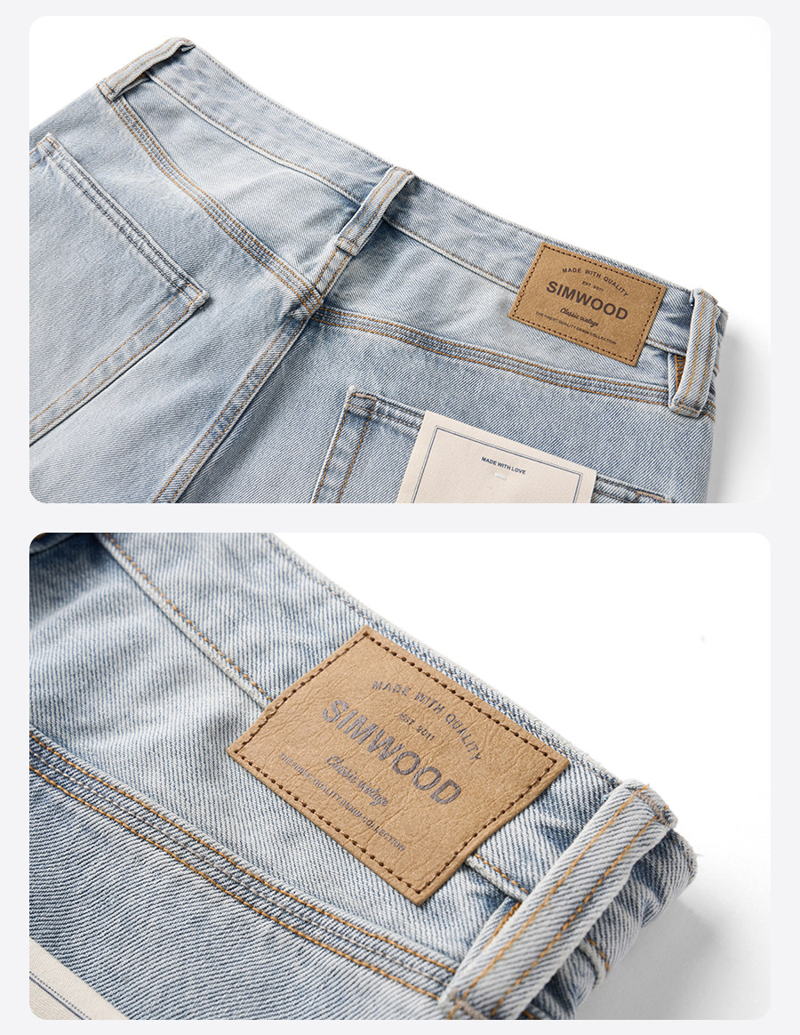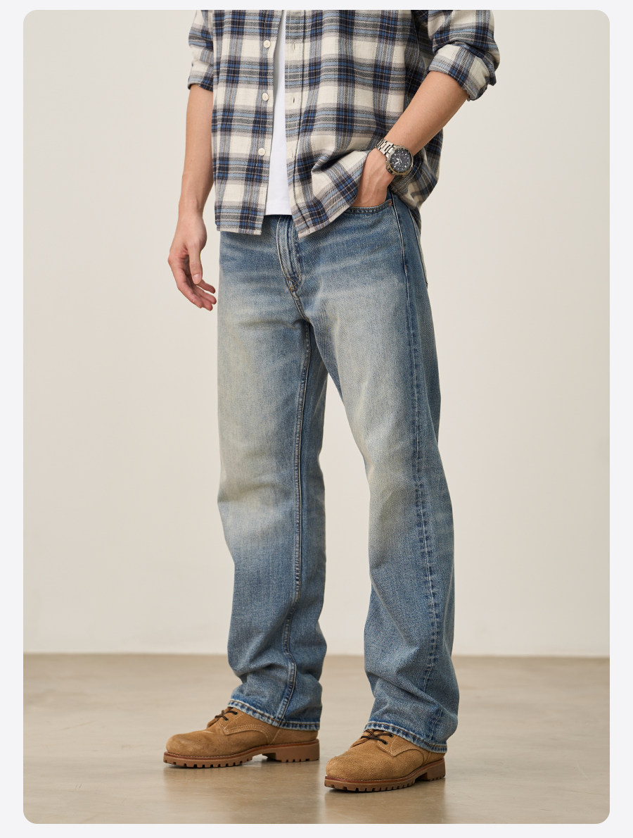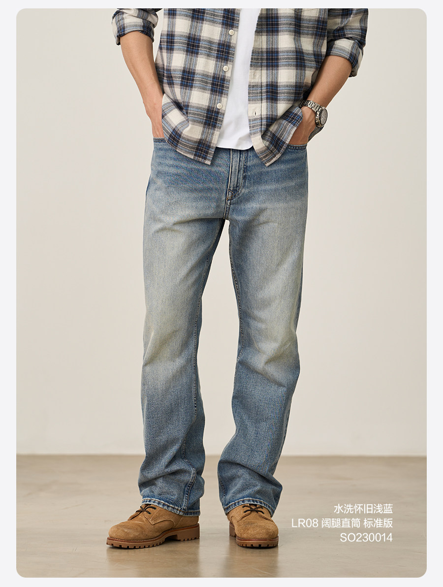 Simwood/Jianmu【Lr08 Wide Leg Straight】13.5 oz Washed Distressed Jeans for Men