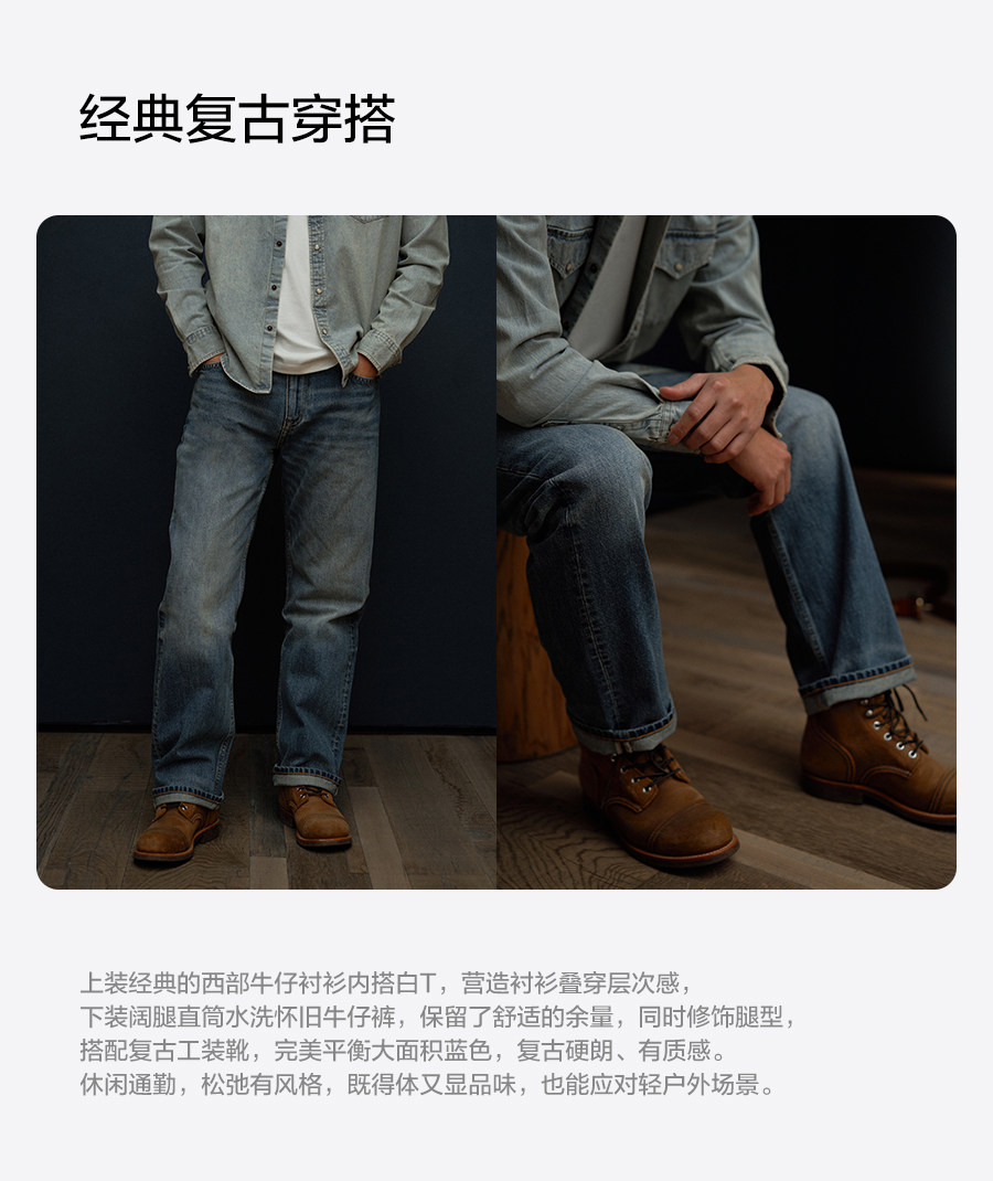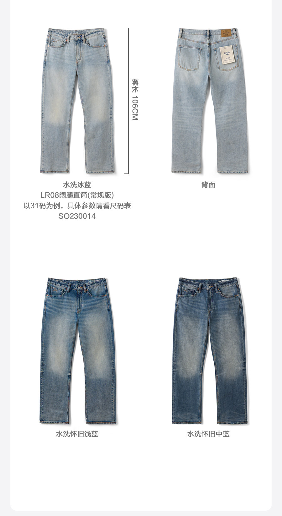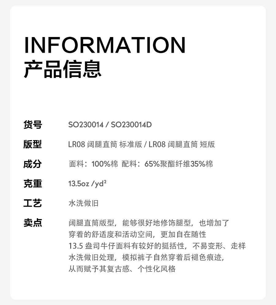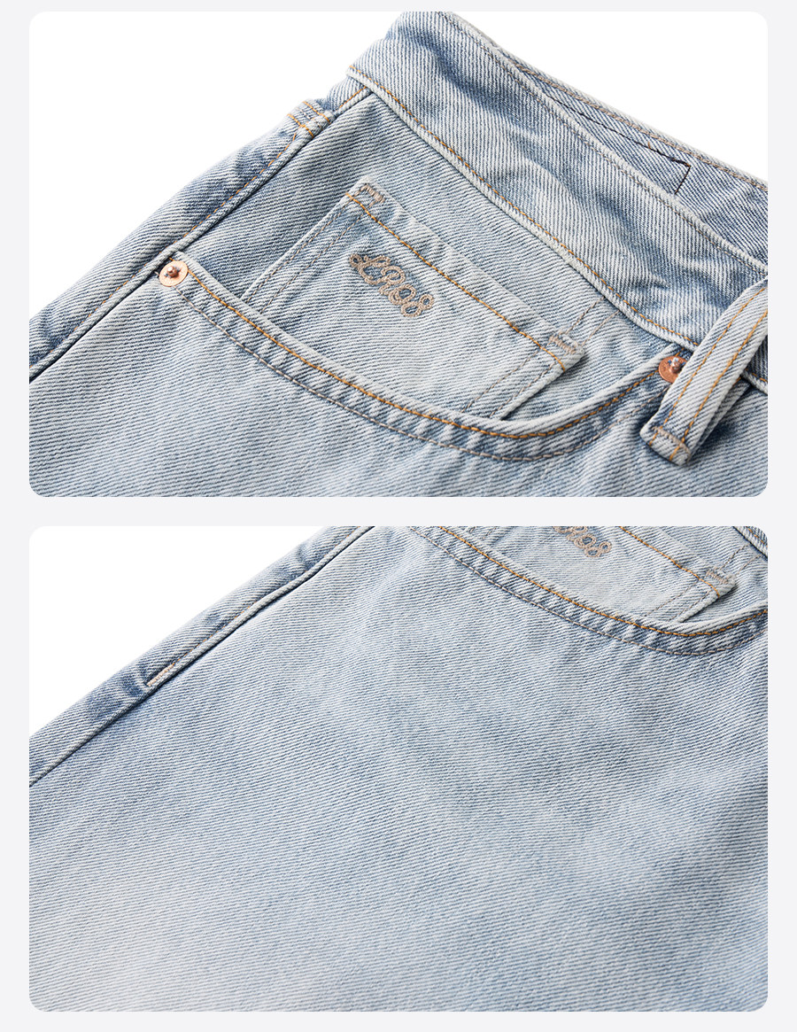 Simwood/Jianmu【Lr08 Wide Leg Straight】13.5 oz Washed Distressed Jeans for Men