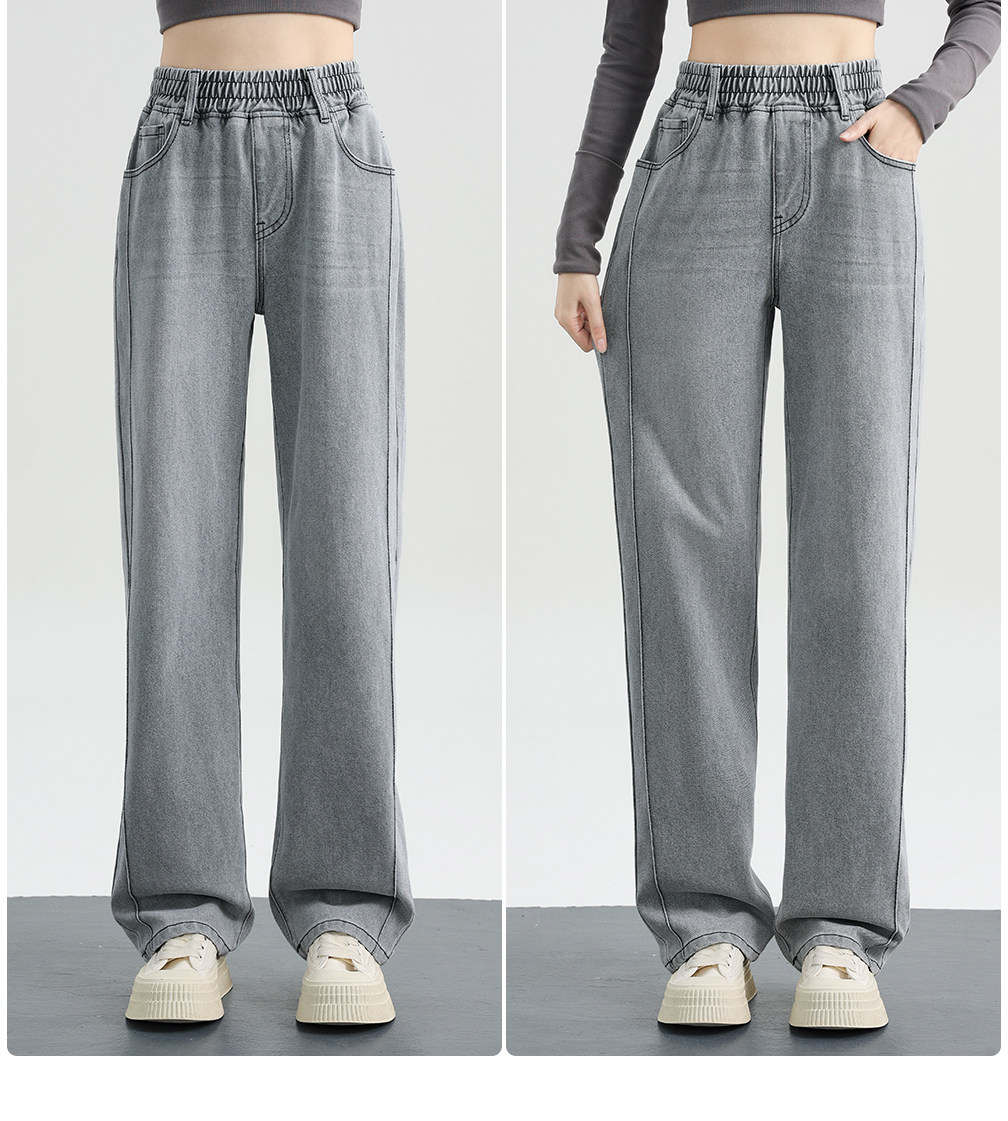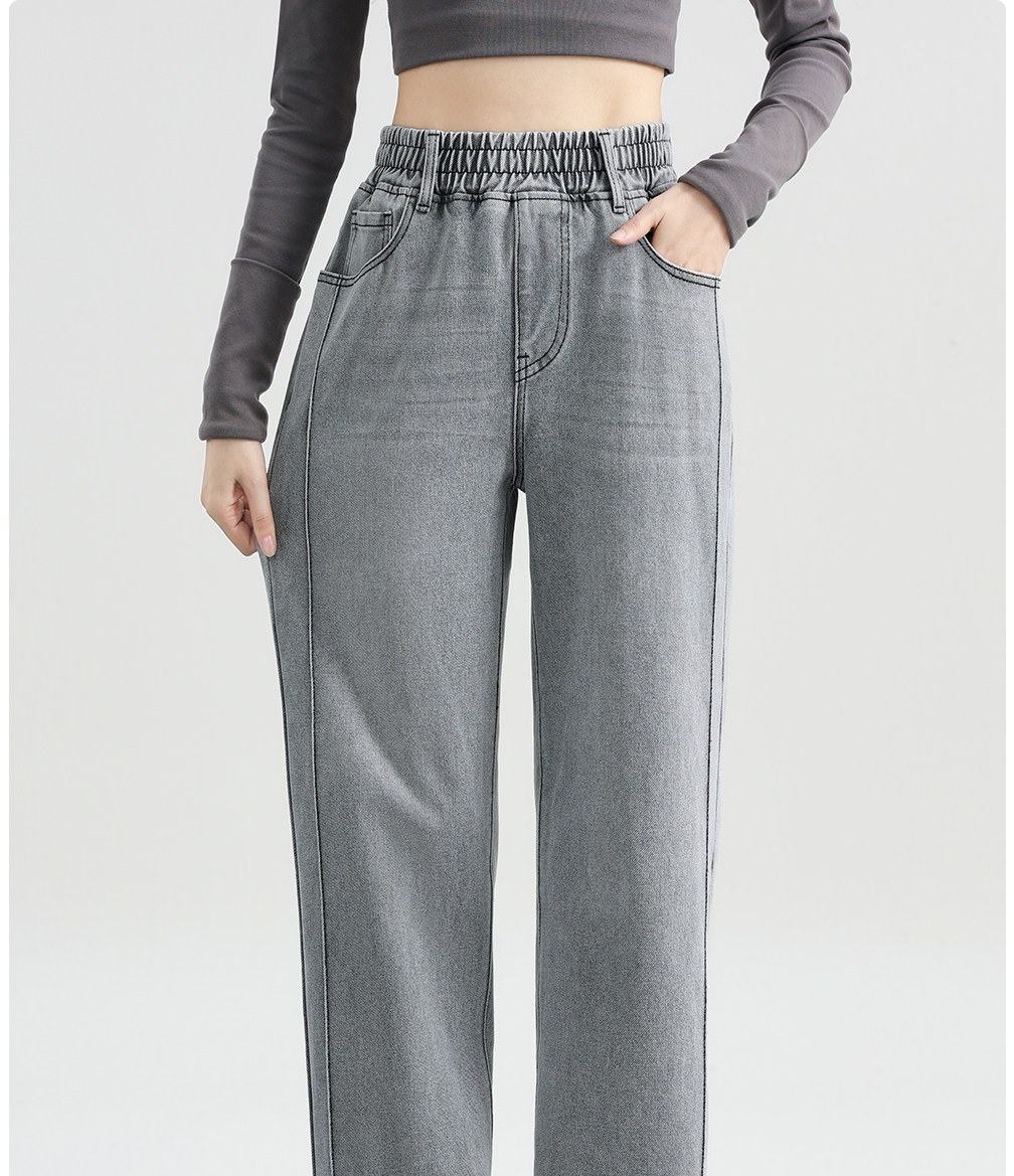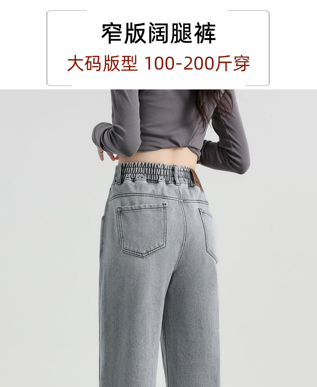Elastic Waist Narrow Wide-Leg Jeans for Women, Plus Size, Autumn and Winter Style, Loose Straight-Leg, Elastic High-Waisted Fleece-Lined Pants for Plus-Size Women